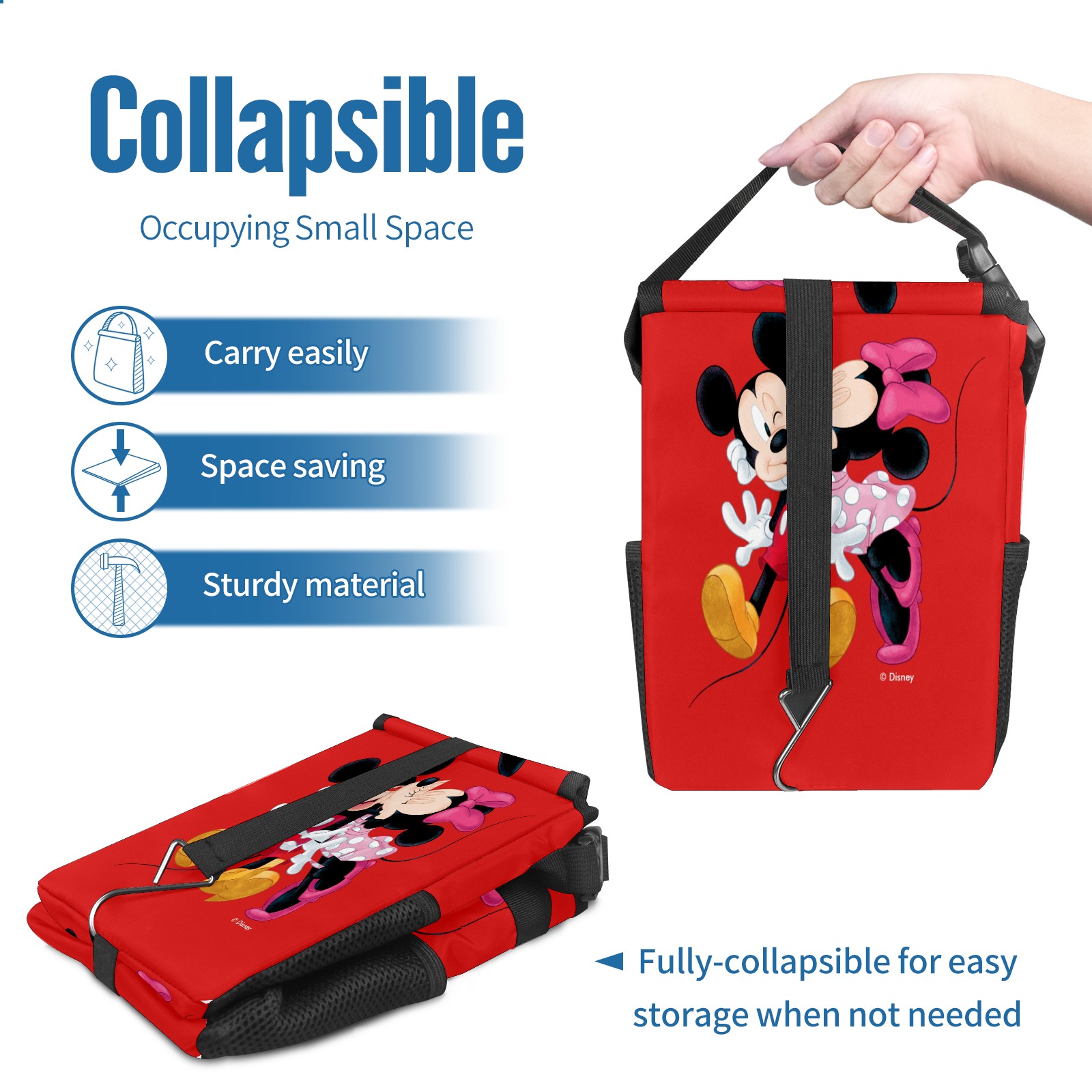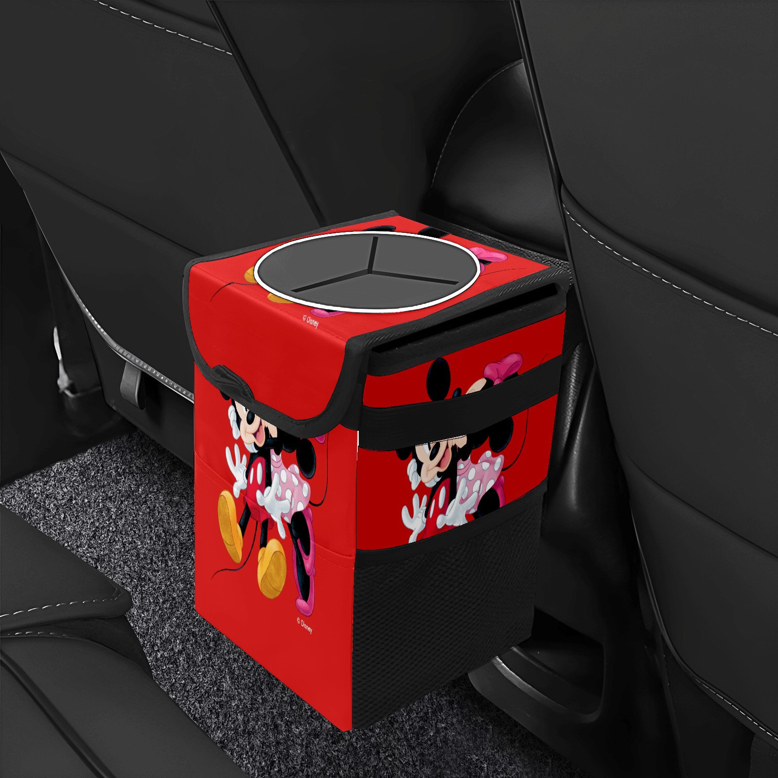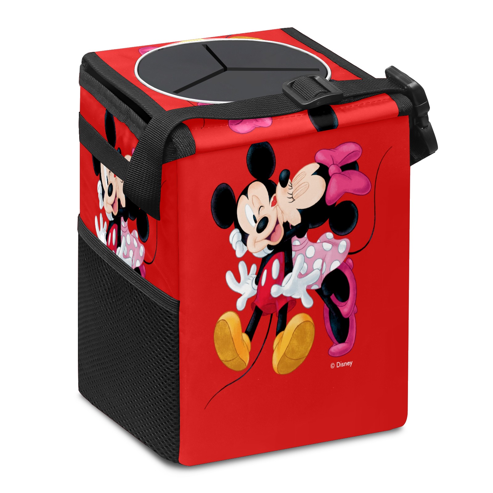 Car Trash Can with Lid, Small Portable Hanging Automotive Garbage Bin for Vehicles, Leakproof Waste Bag Container for SUV Truck Van Interior Auto Travel Road Trips(Mickey And Minnie Valentine's Day Red)