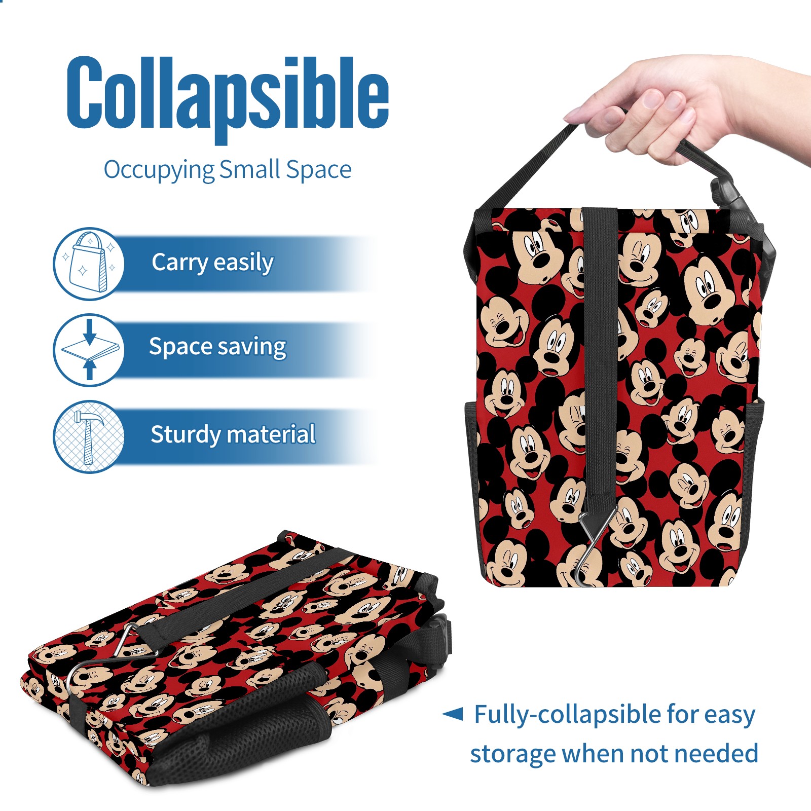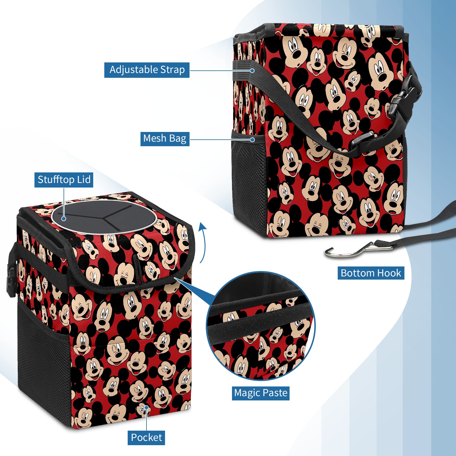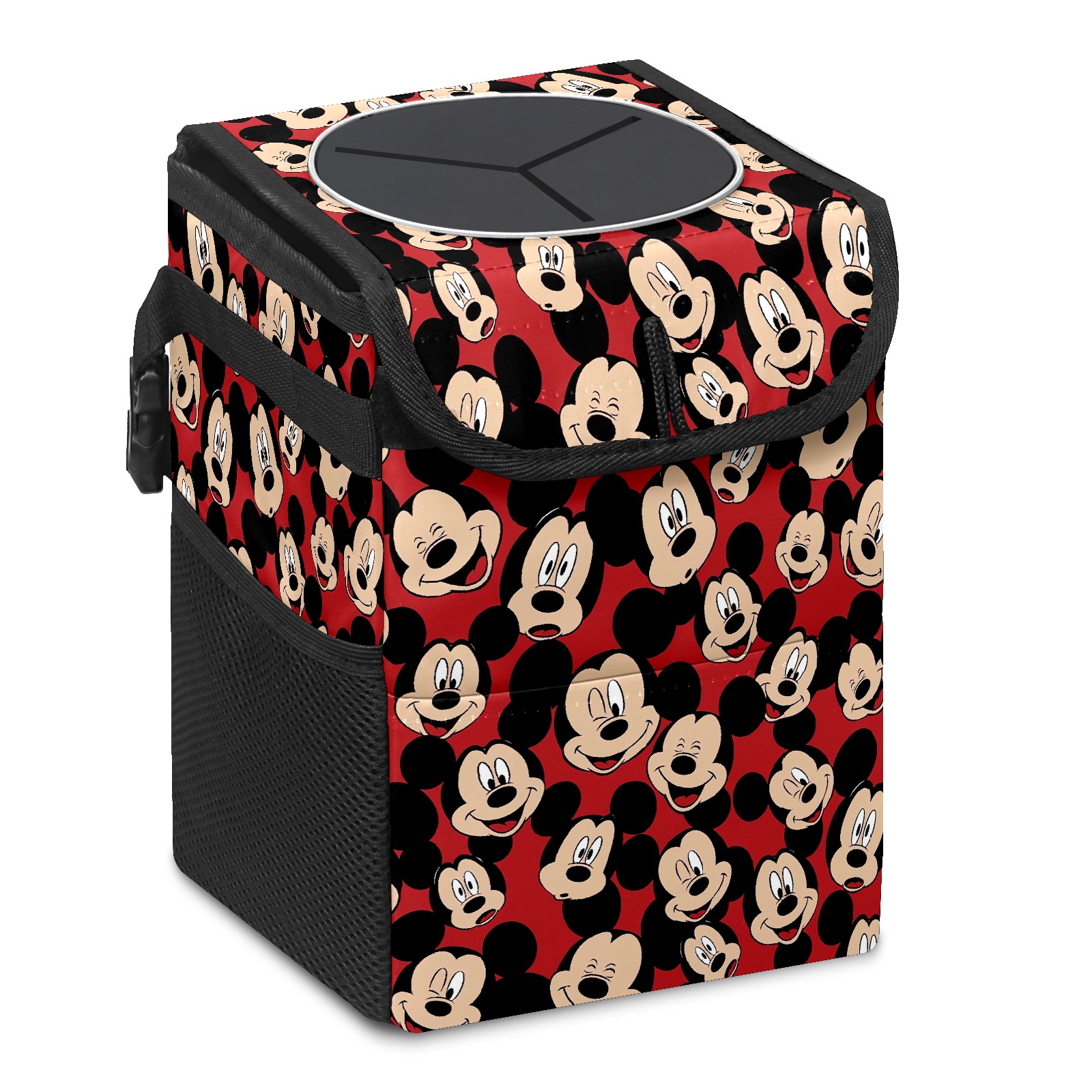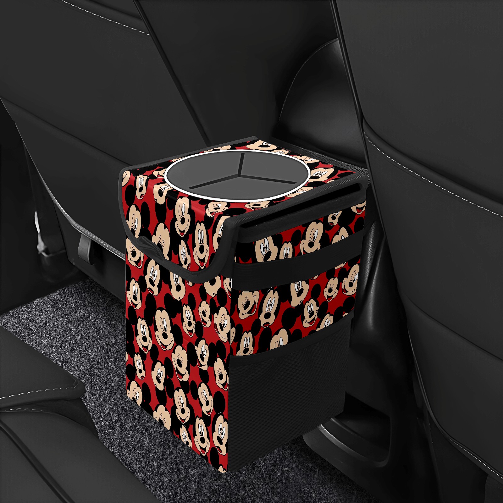 Car Trash Can with Lid, Small Portable Hanging Automotive Garbage Bin for Vehicles, Leakproof Waste Bag Container for SUV Truck Van Interior Auto Travel Road Trips(Cute Mickey Mouse)