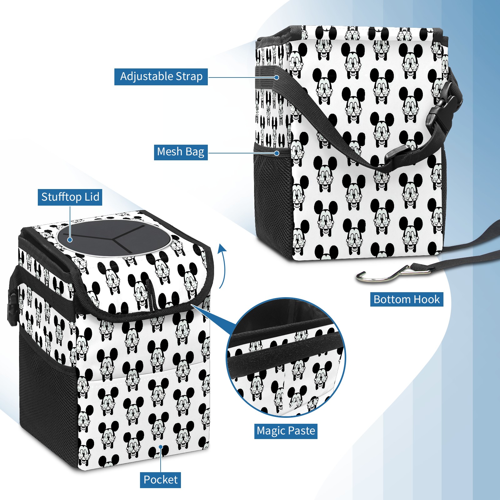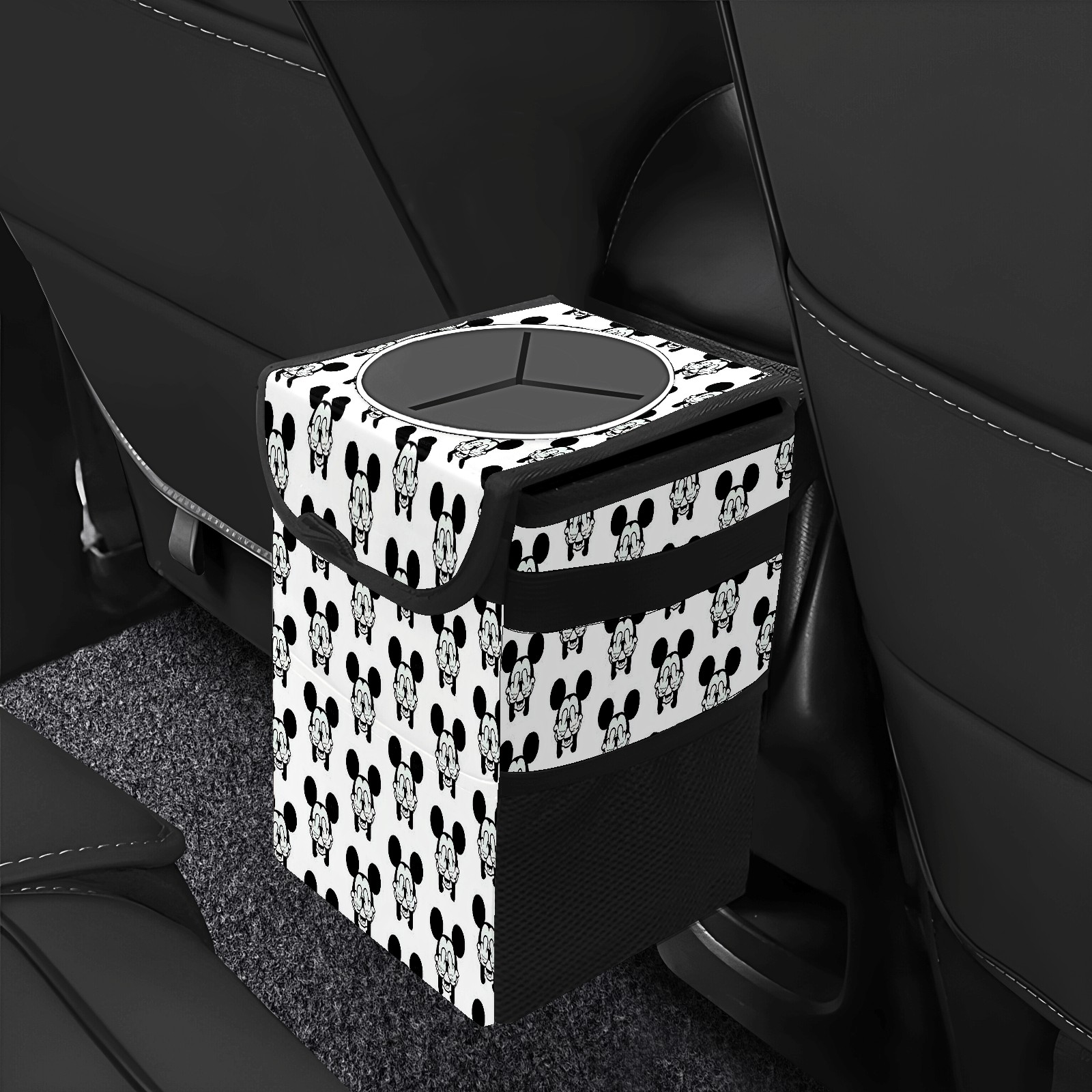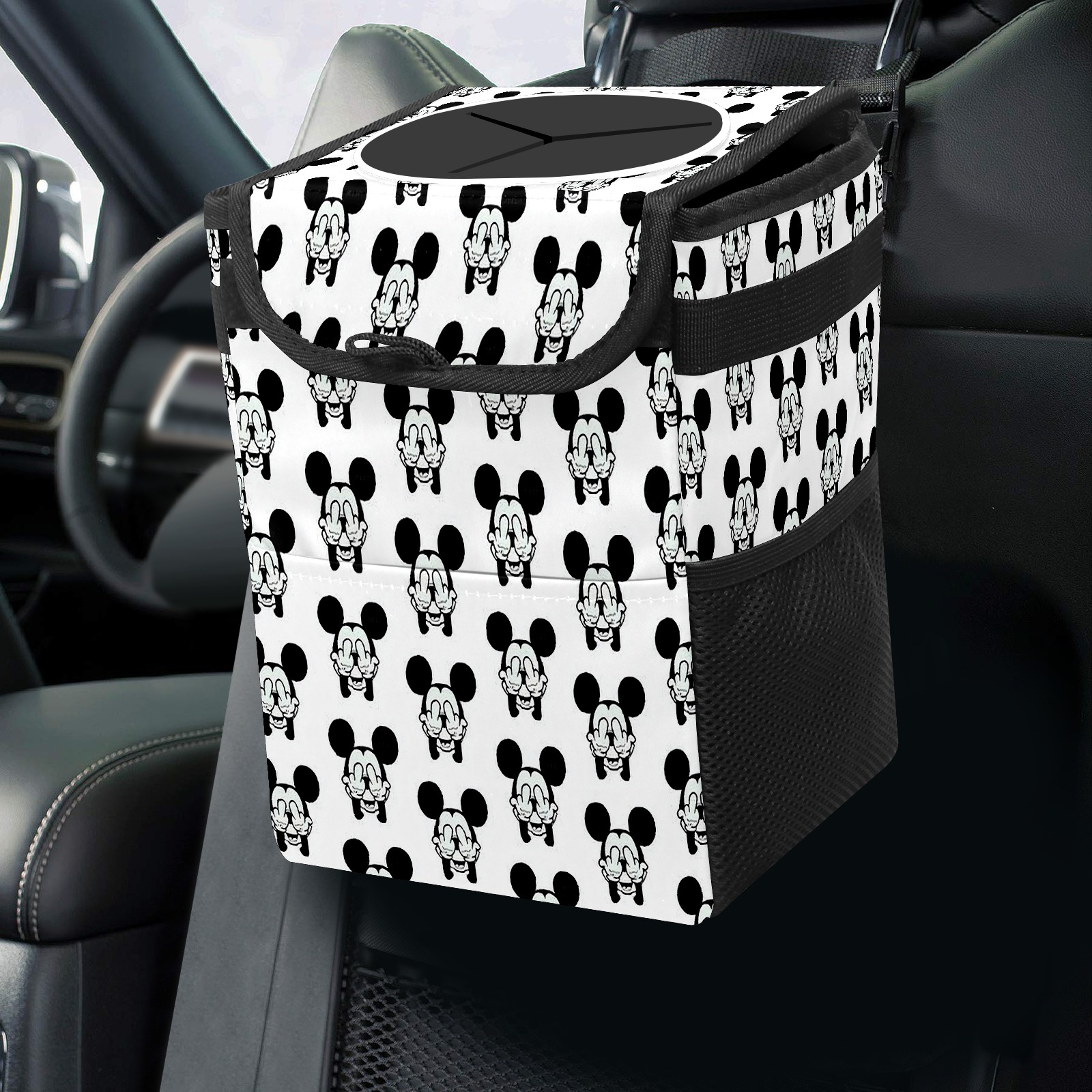 Car Trash Can with Lid, Small Portable Hanging Automotive Garbage Bin for Vehicles, Leakproof Waste Bag Container for SUV Truck Van Interior Auto Travel Road Trips(Mickey Mouse (1))