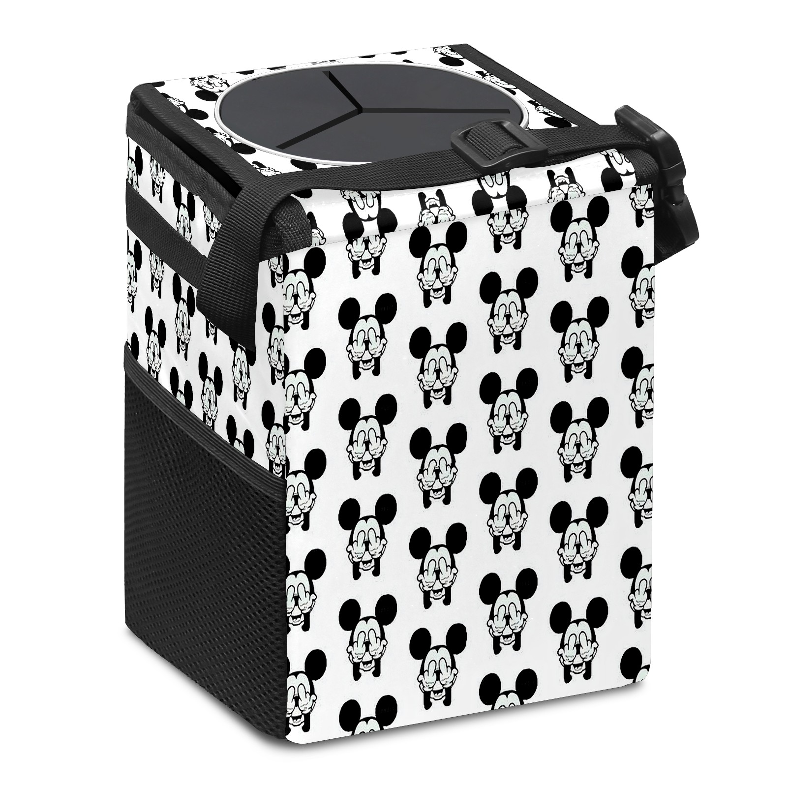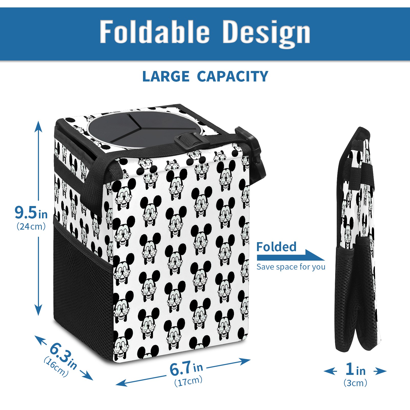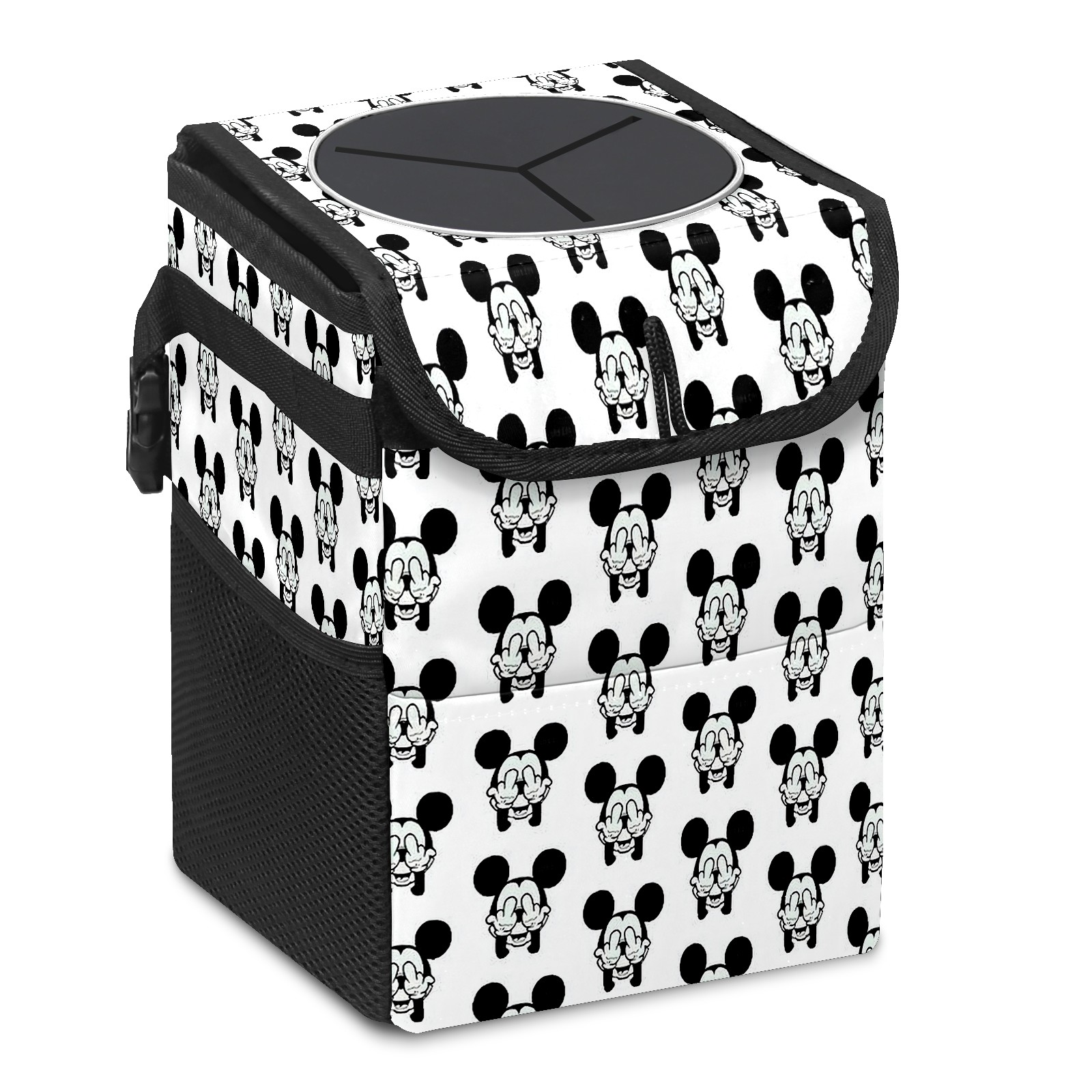 Car Trash Can with Lid, Small Portable Hanging Automotive Garbage Bin for Vehicles, Leakproof Waste Bag Container for SUV Truck Van Interior Auto Travel Road Trips(Mickey Mouse (1))