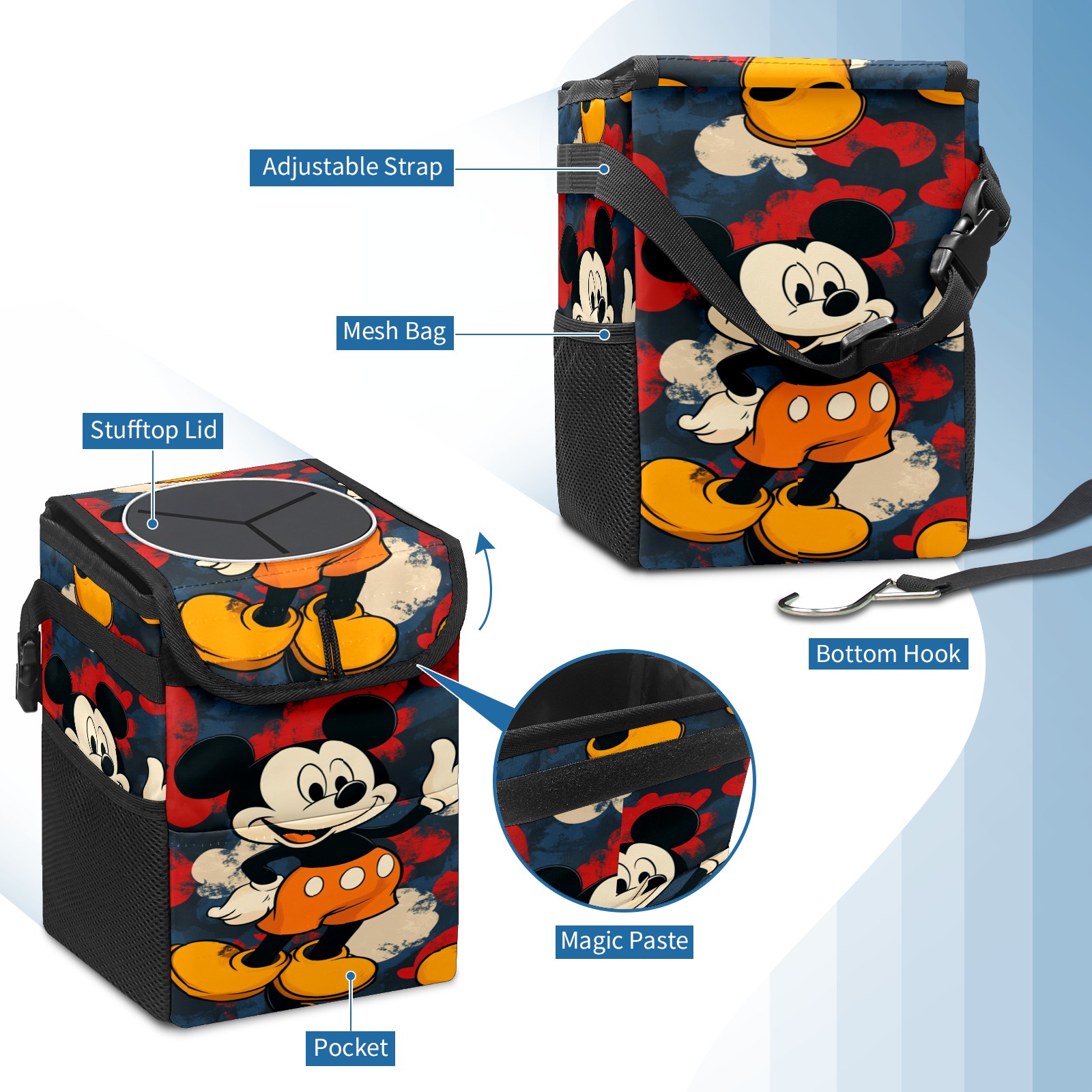 • <p>Keep your car neat with this practical car trash can—built for durability, versatility, and on-the-go convenience! Crafted from quality twill fabric with a waterproof lining, it prevents leaks, keeping seats/floors clean. Clean easily: empty directly or secure a disposable bag with side clips. Adjustable pull cord fits floor, seat, or headrest. 9.5x6.3x6.7 inches, ample space for daily trash, folds flat for storage. More than a trash can, it doubles as a storage bag for cups, toys, docs, and small gadgets—must-have car interior accessory. Installs in seconds on seats, console, or gear shift; adjustable straps keep it stable, no slipping on bumpy roads. Perfect gift for new car owners!</p>