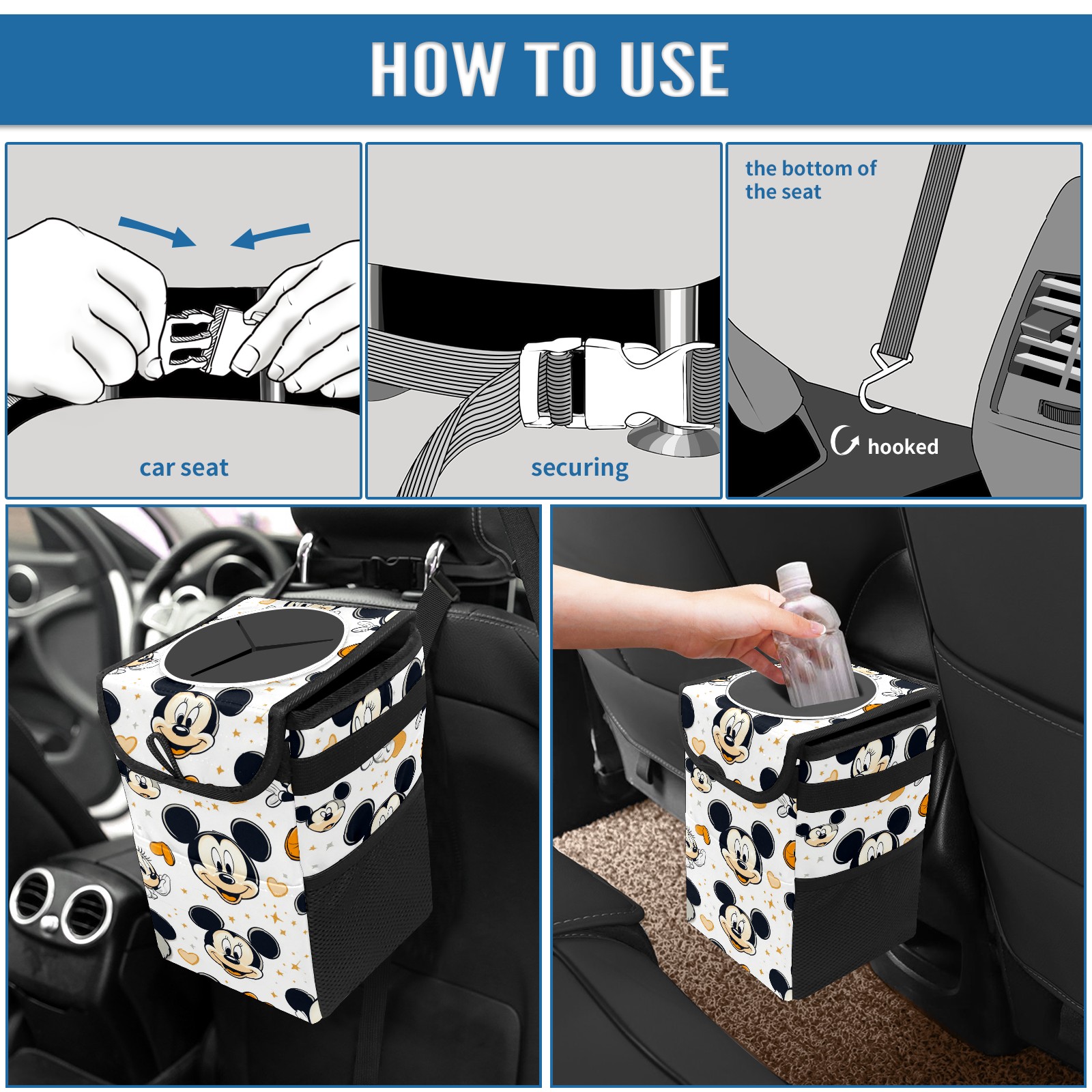 • <p>Keep your car neat with this practical car trash can—built for durability, versatility, and on-the-go convenience! Crafted from quality twill fabric with a waterproof lining, it prevents leaks, keeping seats/floors clean. Clean easily: empty directly or secure a disposable bag with side clips. Adjustable pull cord fits floor, seat, or headrest. 9.5x6.3x6.7 inches, ample space for daily trash, folds flat for storage. More than a trash can, it doubles as a storage bag for cups, toys, docs, and small gadgets—must-have car interior accessory. Installs in seconds on seats, console, or gear shift; adjustable straps keep it stable, no slipping on bumpy roads. Perfect gift for new car owners!</p>