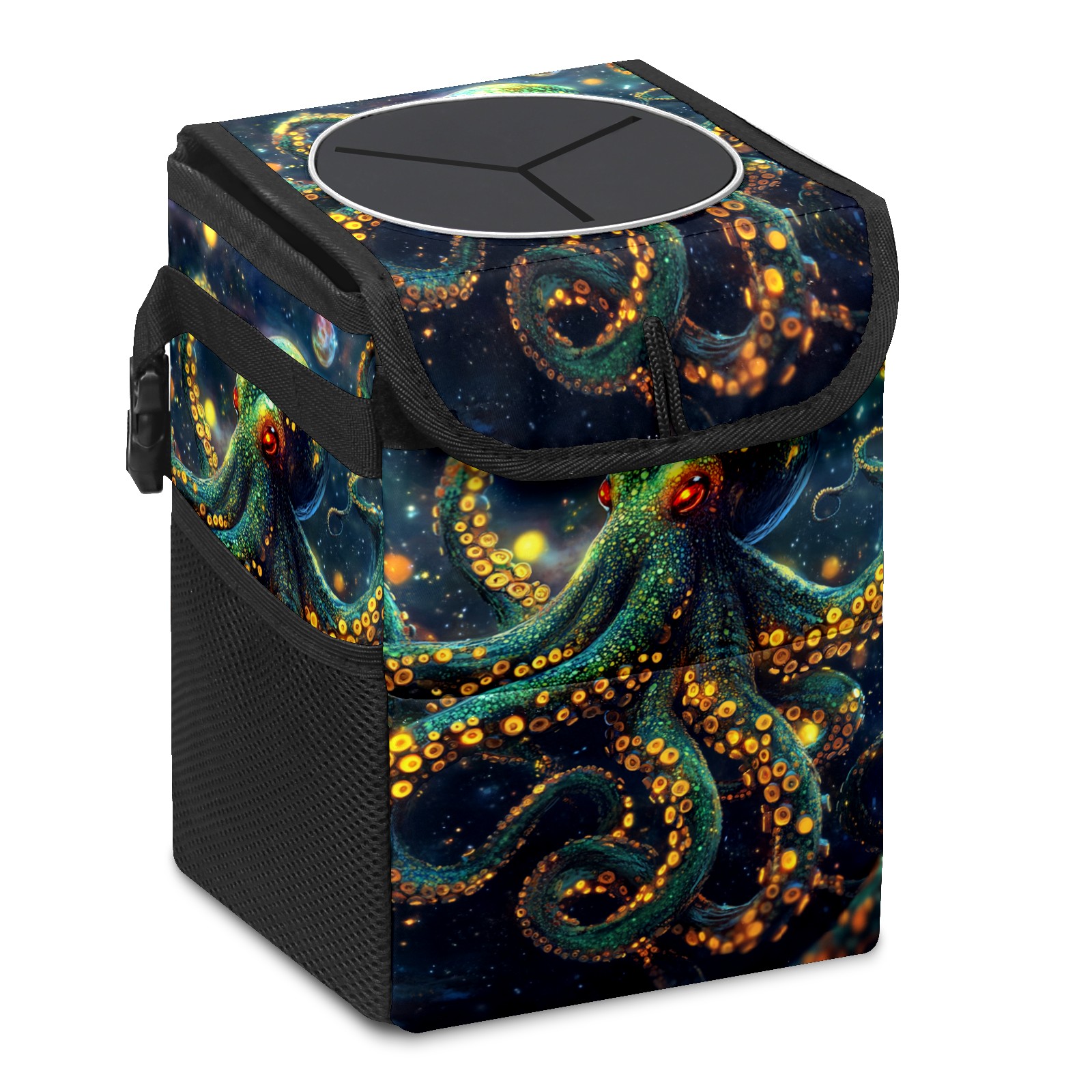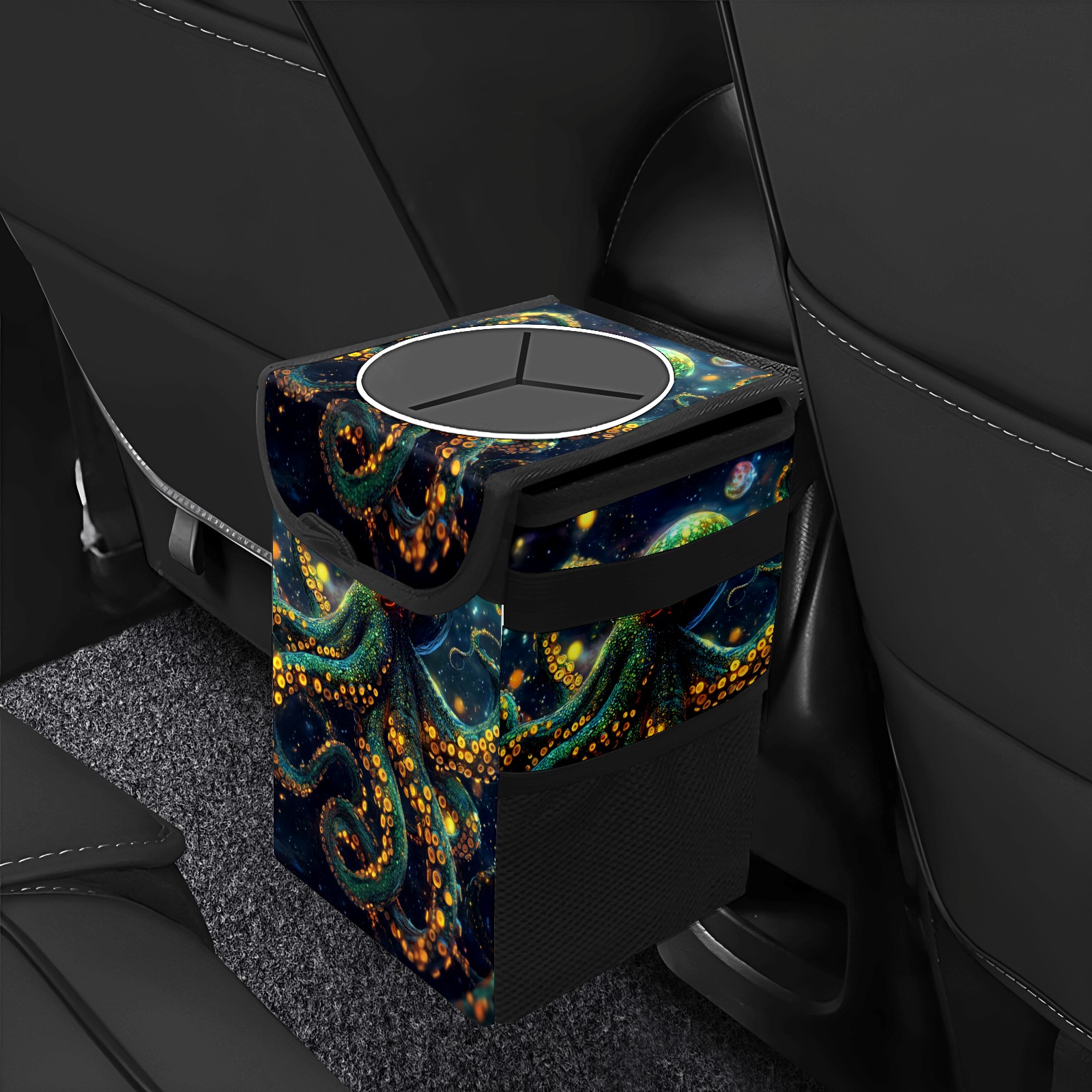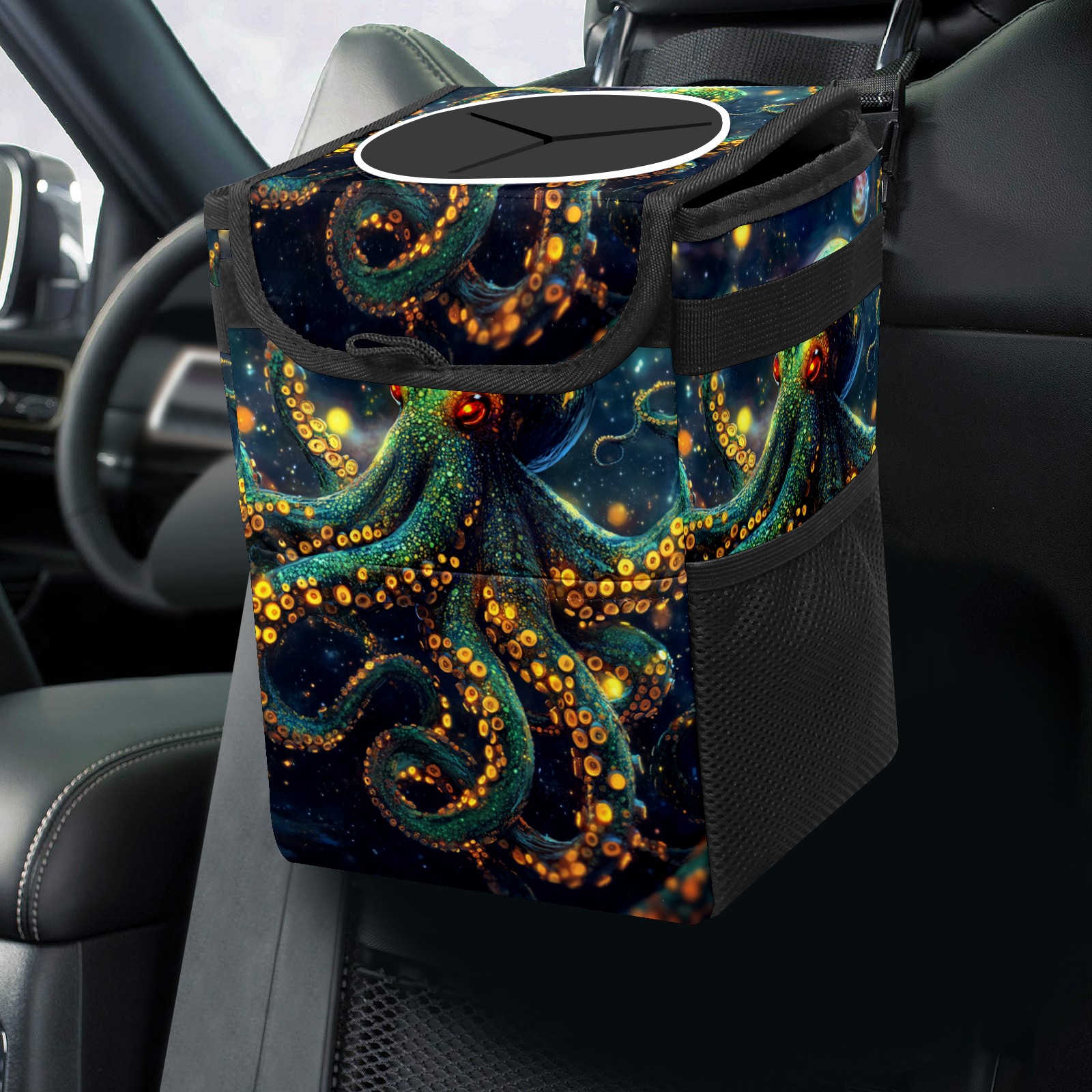 Car Garbage Can — Multi-functional, Lightweight Portable, Reusable Vehicle Trash Can, Waterproof with Sufficient Storage Capacity Neon Octopus