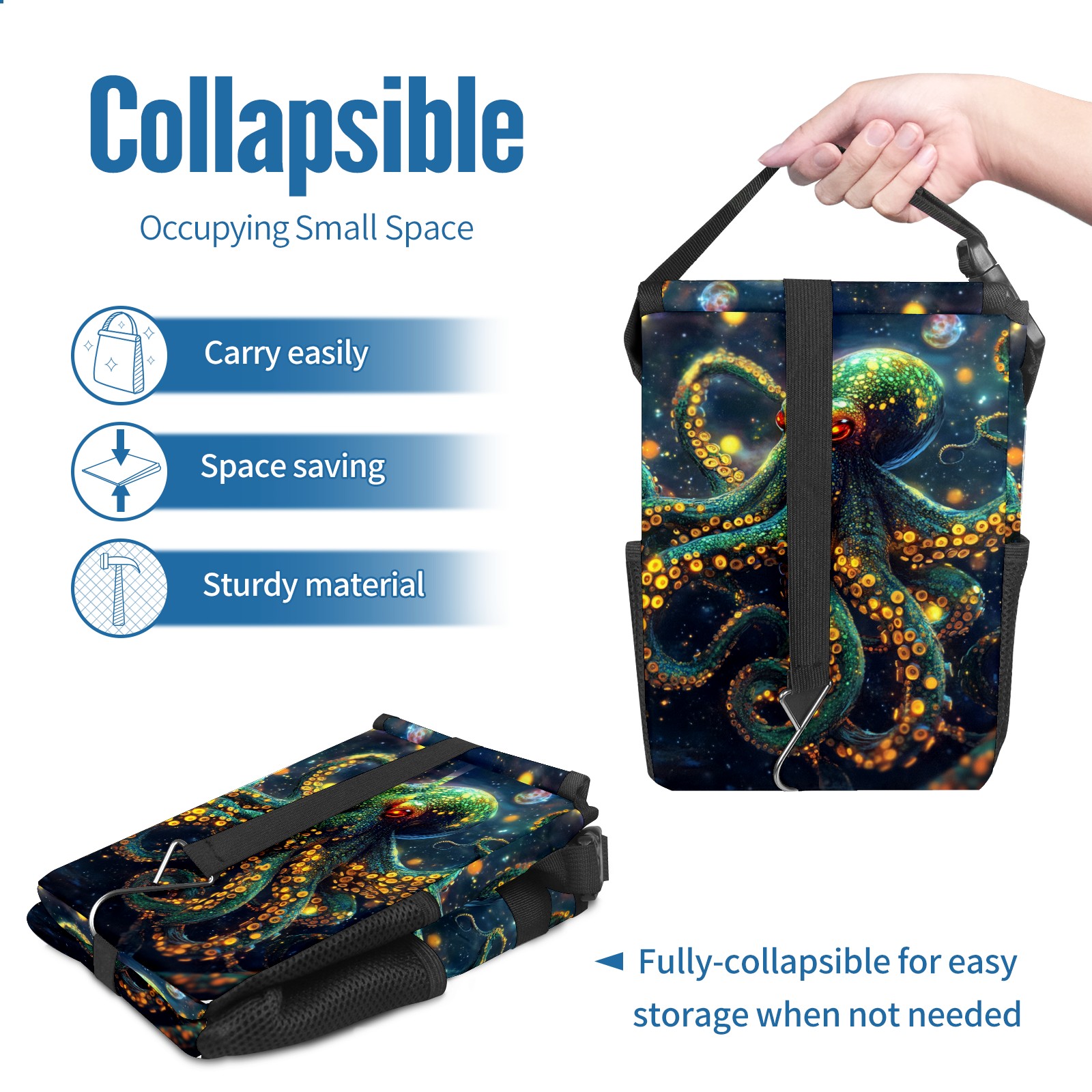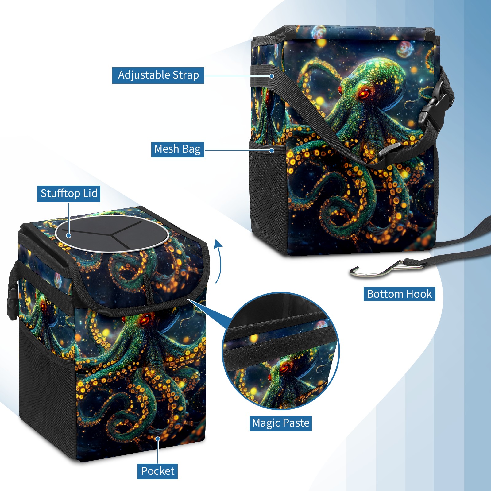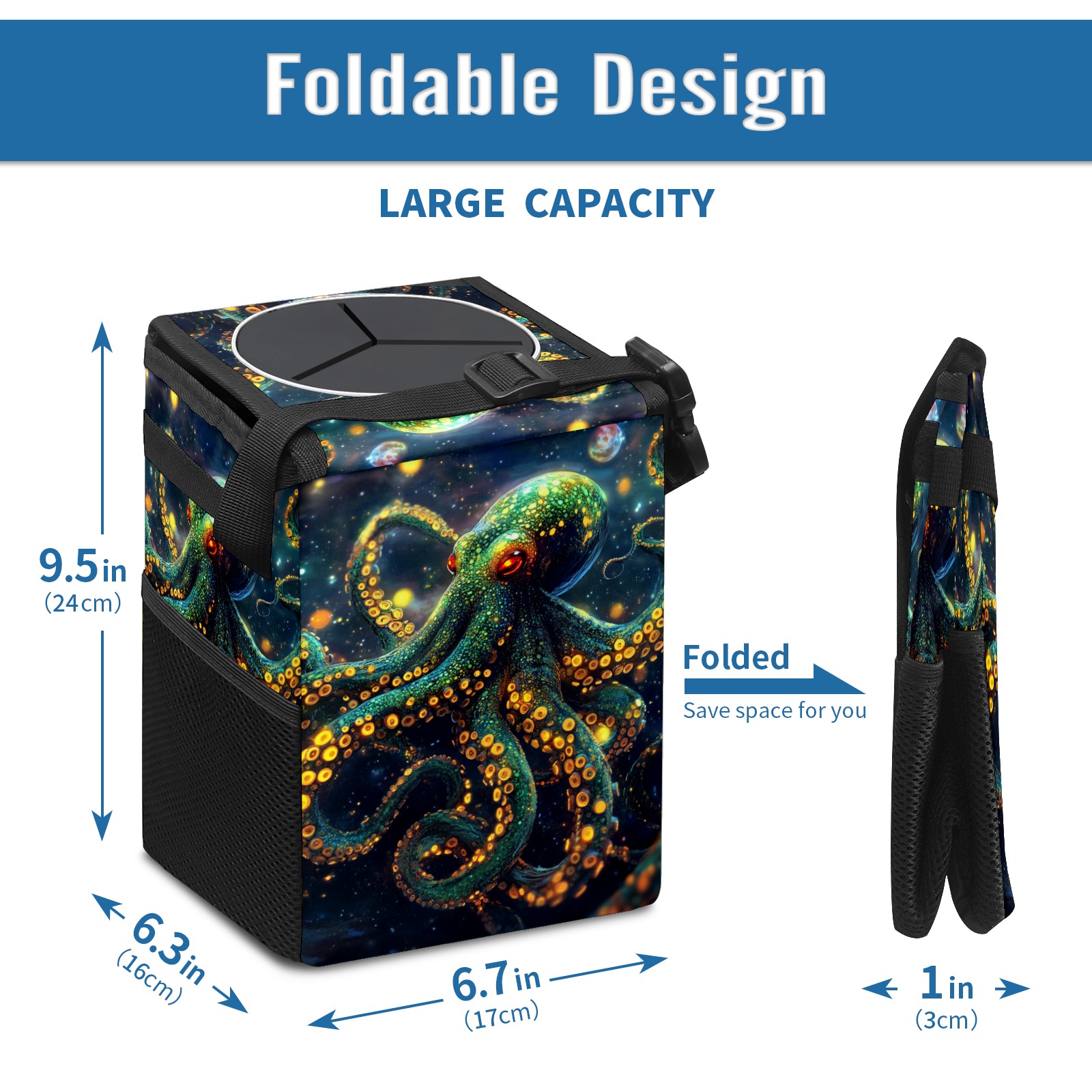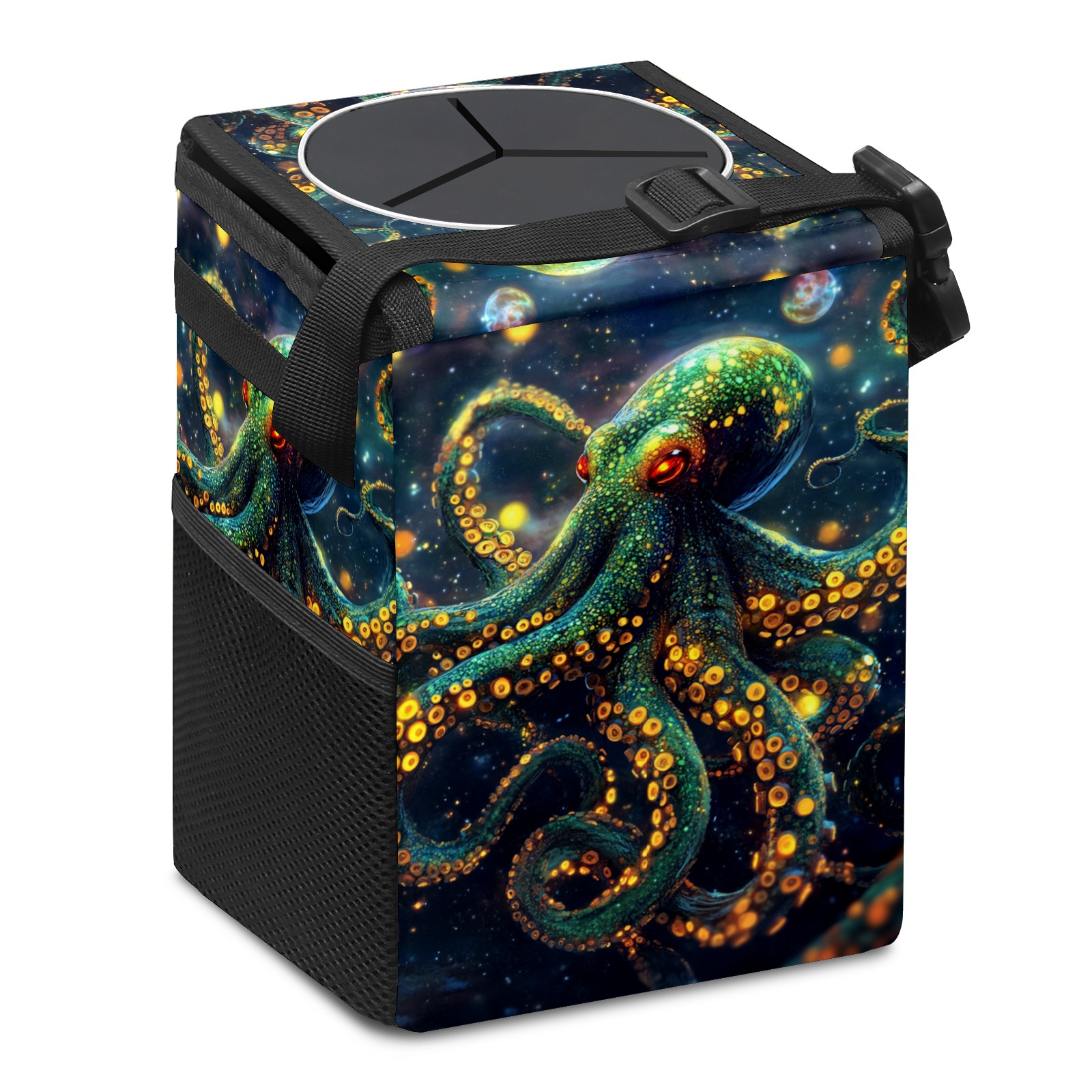 Car Garbage Can — Multi-functional, Lightweight Portable, Reusable Vehicle Trash Can, Waterproof with Sufficient Storage Capacity Neon Octopus
