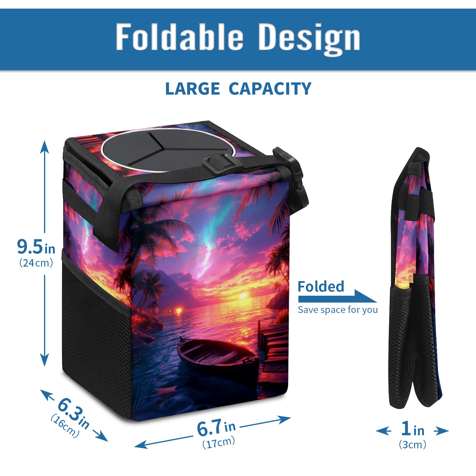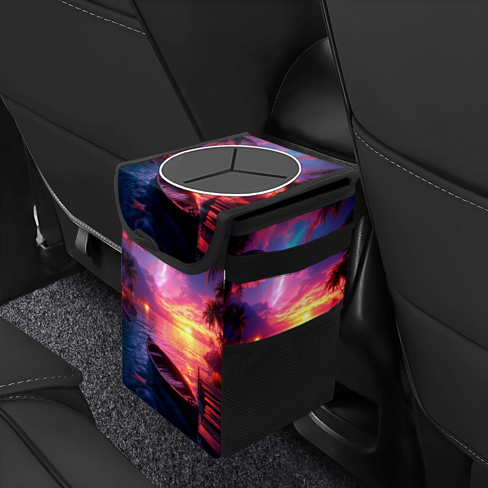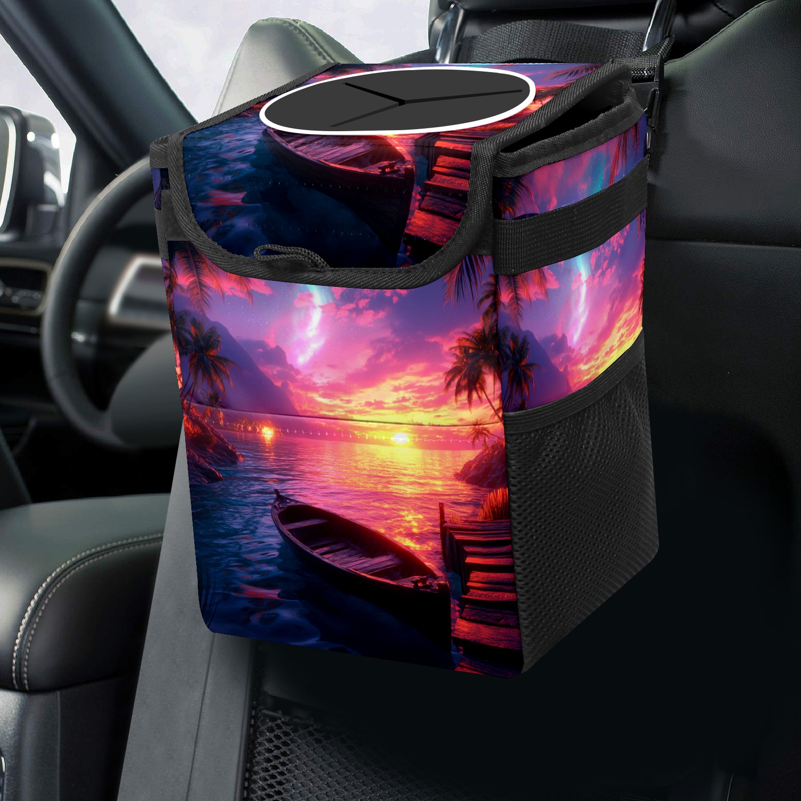 Car Garbage Can — Multi-functional, Lightweight Portable, Reusable Vehicle Trash Can, Waterproof with Sufficient Storage Capacity Sunset Coast