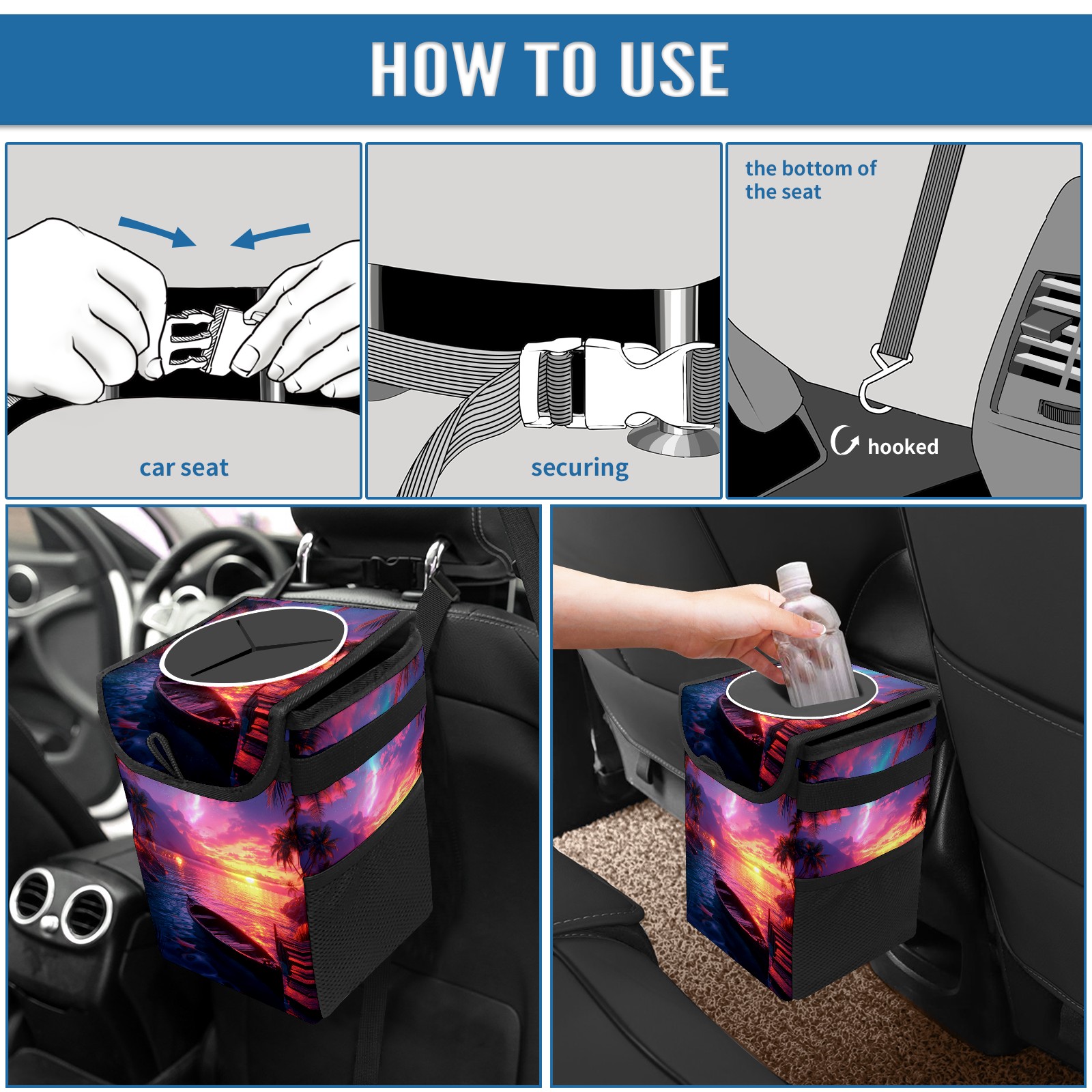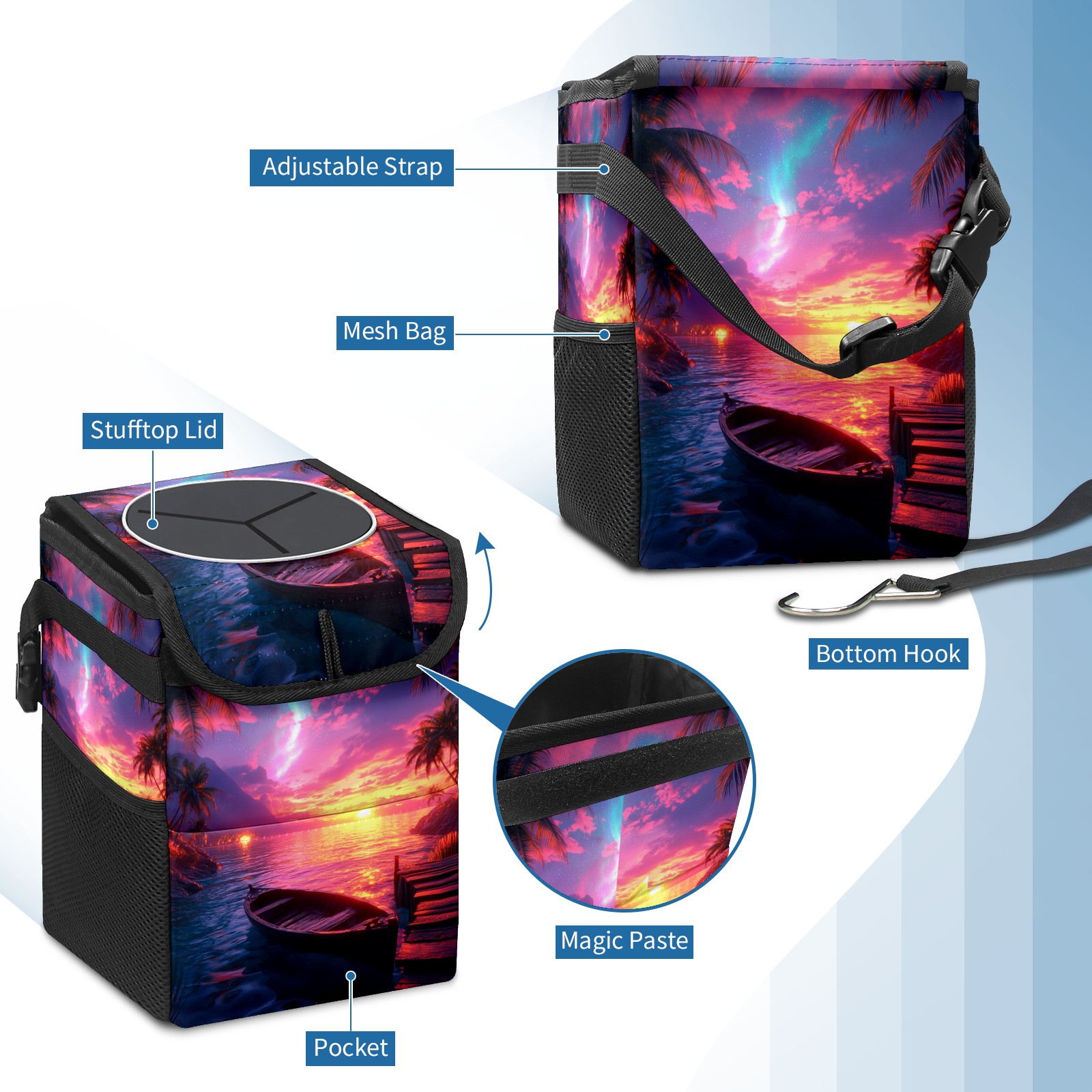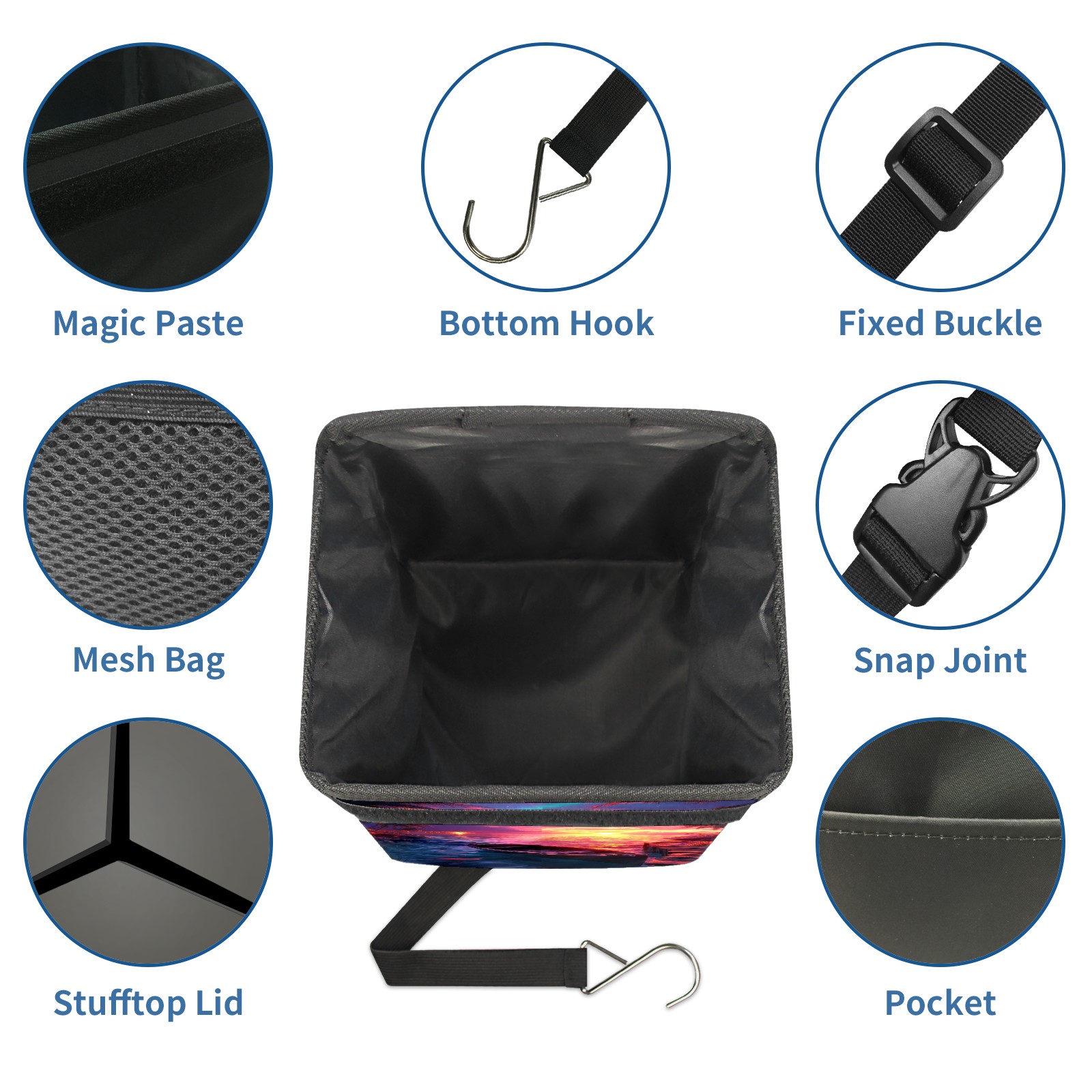 Car Garbage Can — Multi-functional, Lightweight Portable, Reusable Vehicle Trash Can, Waterproof with Sufficient Storage Capacity Sunset Coast