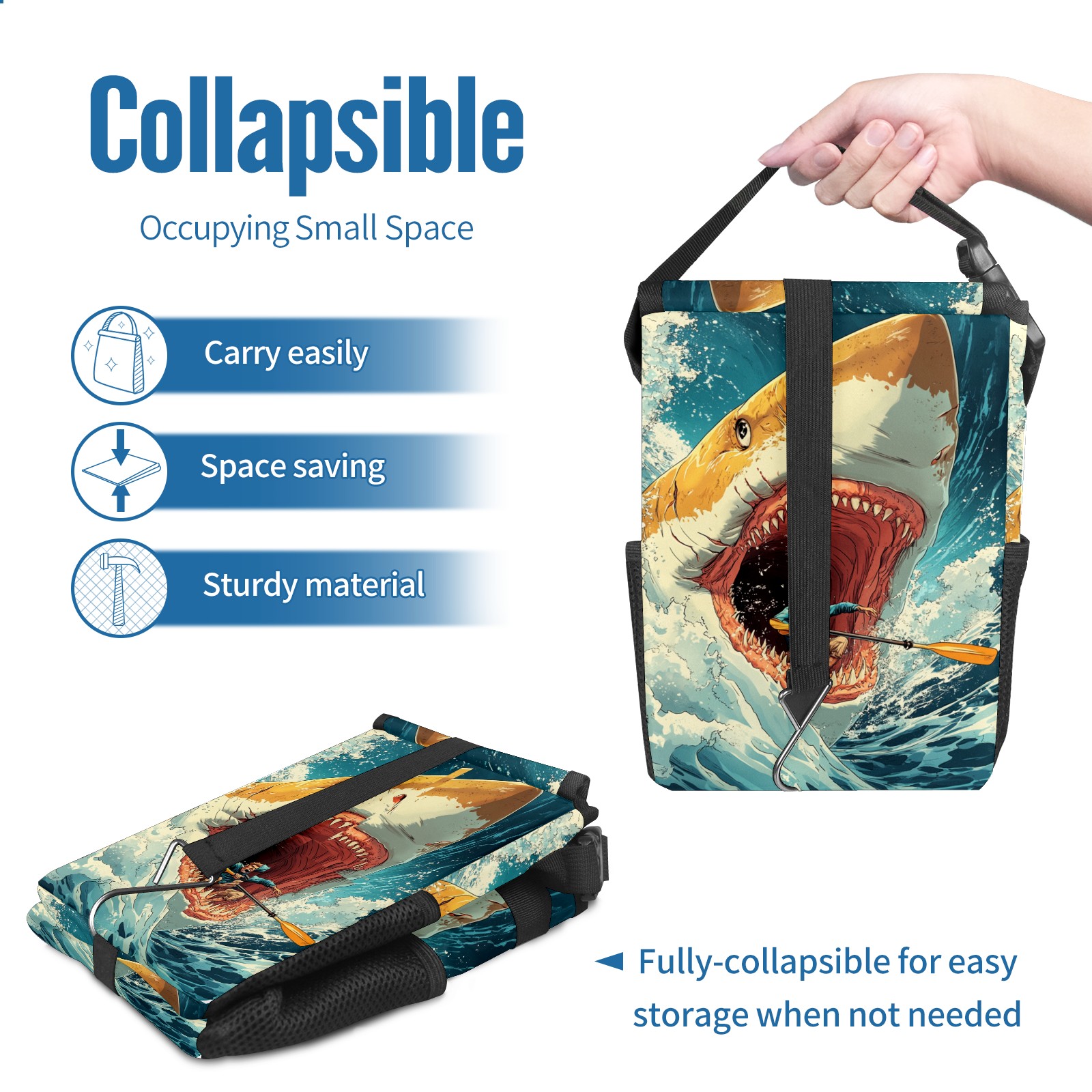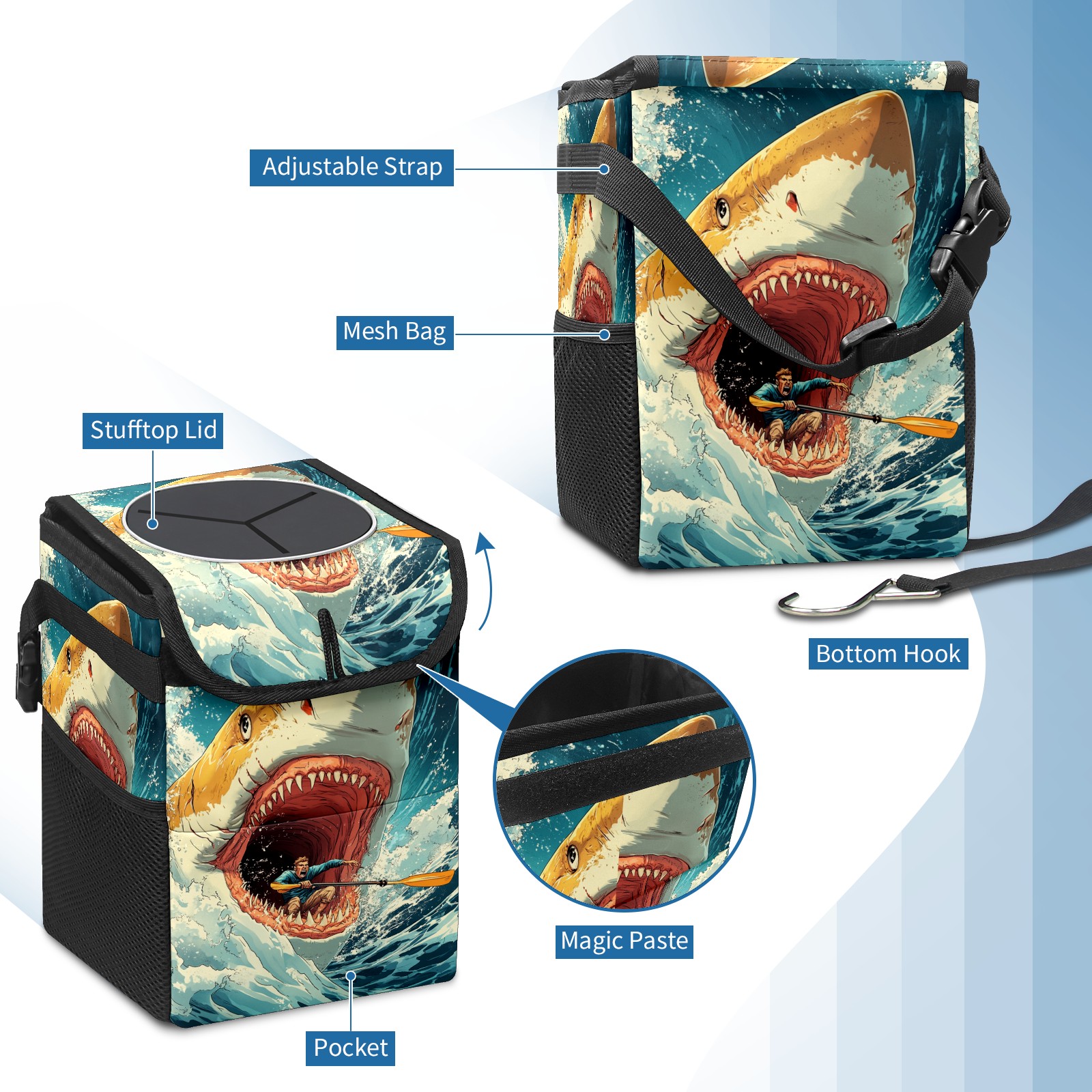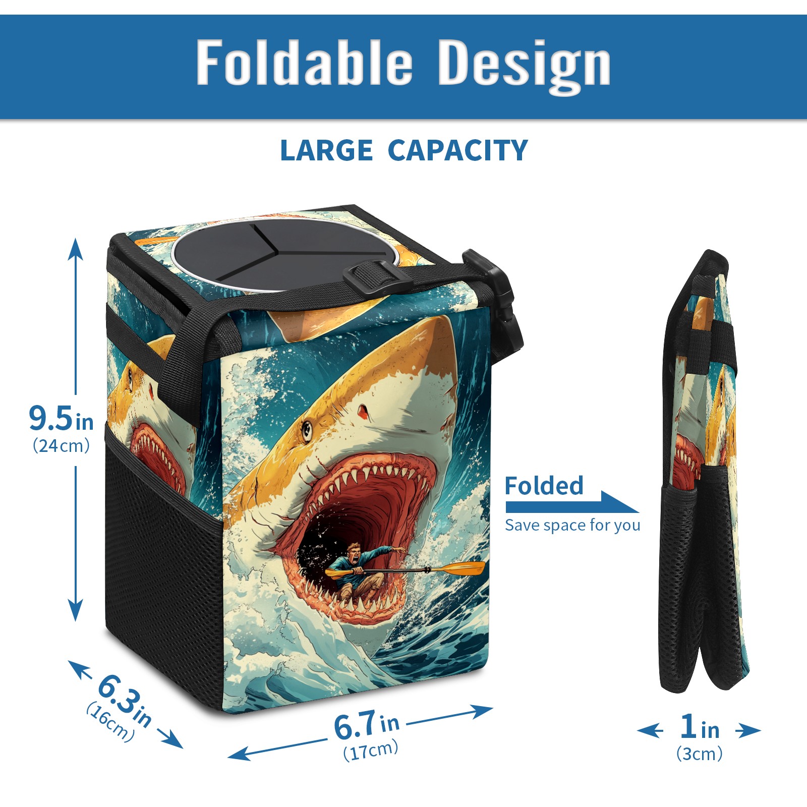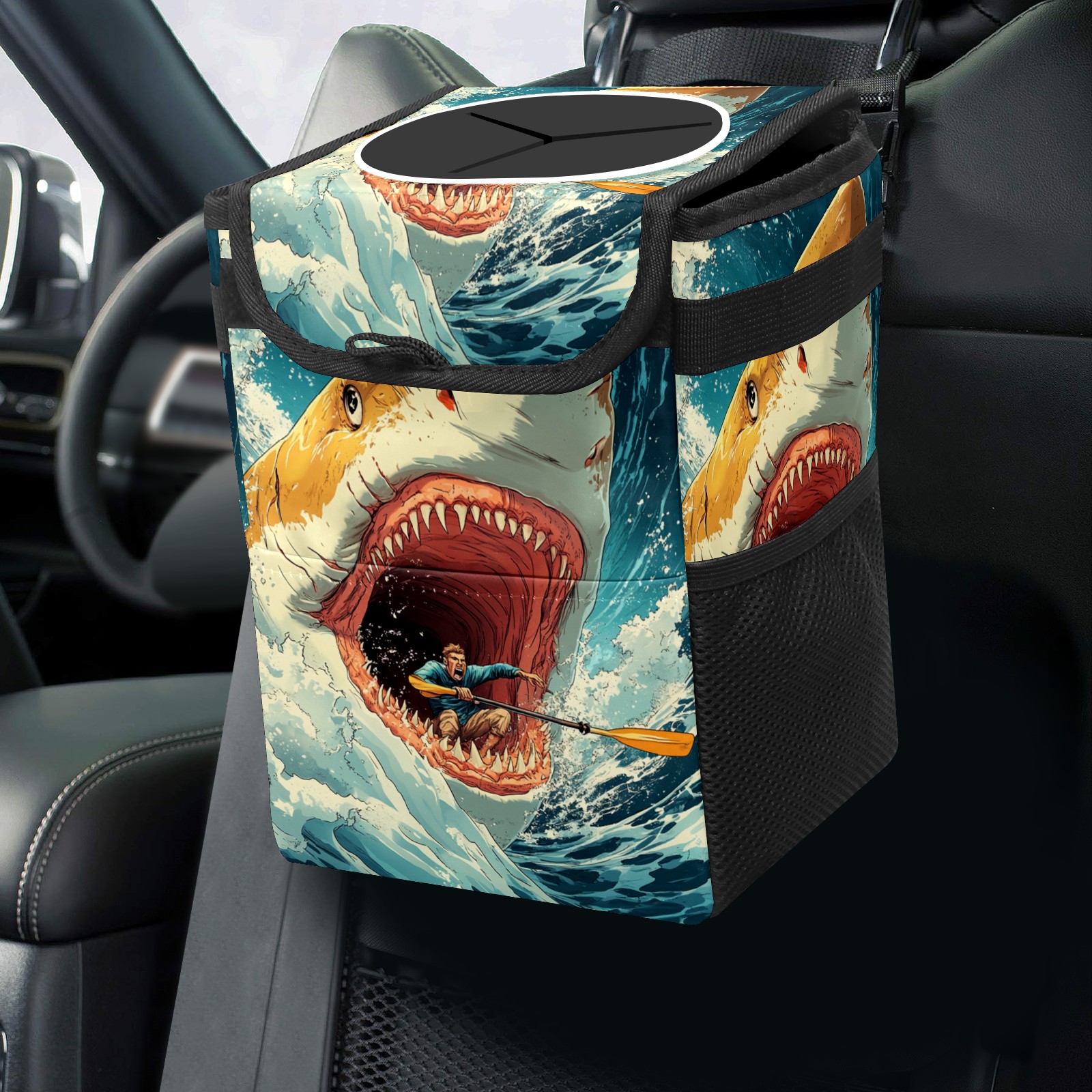 Car Garbage Can — Multi-functional, Lightweight Portable, Reusable Vehicle Trash Can, Waterproof with Sufficient Storage Capacity Deep-sea Giant Shark