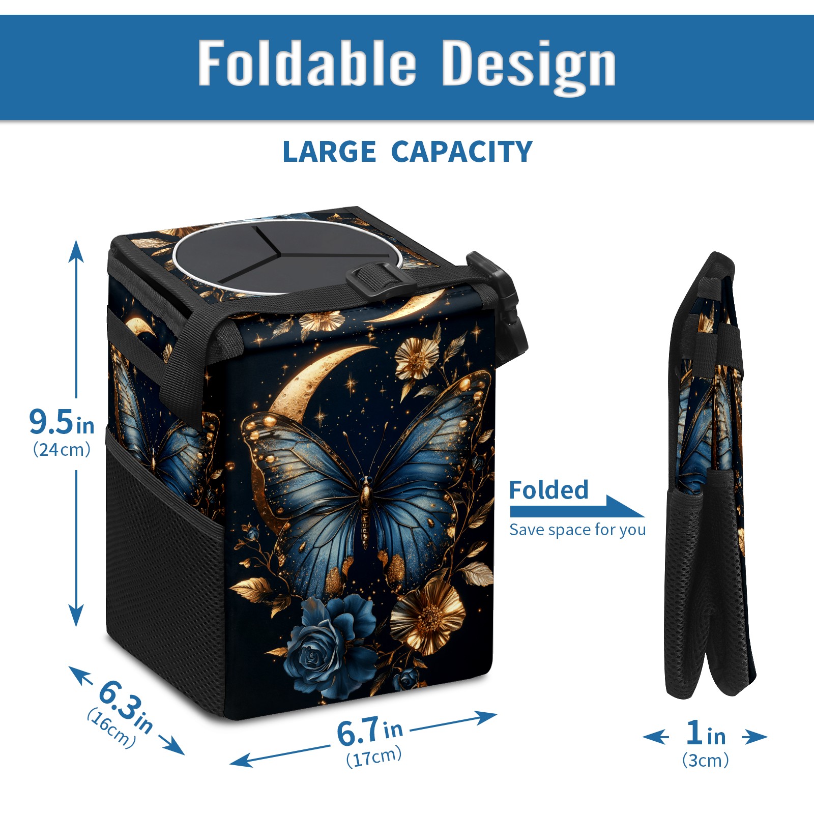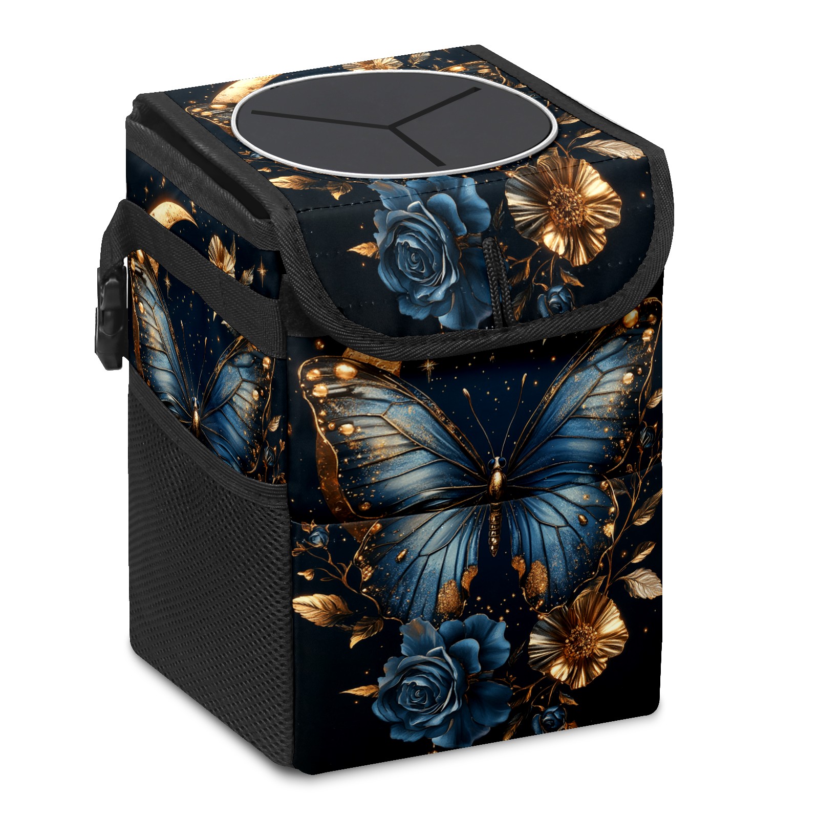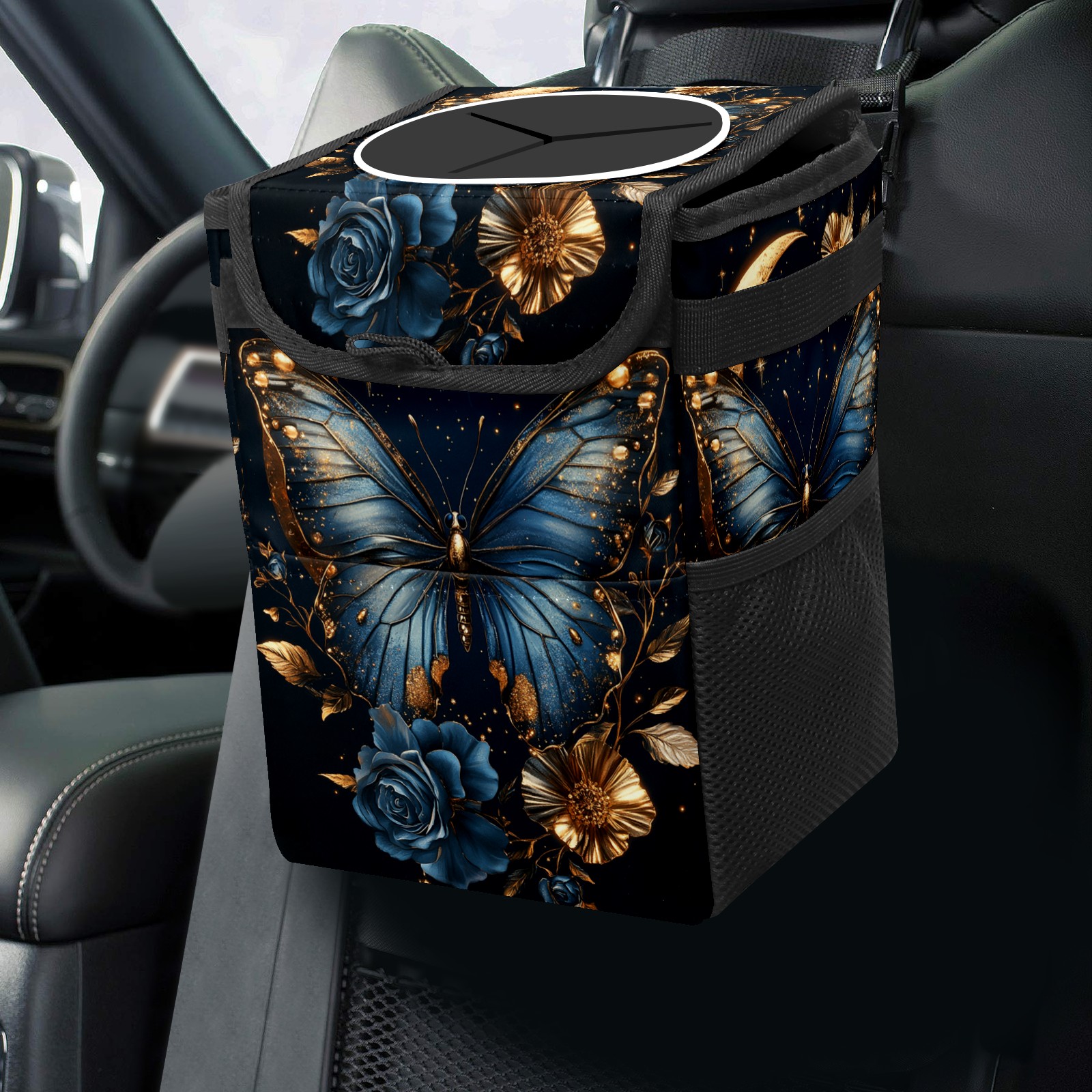 Car Garbage Can — Multi-functional, Lightweight Portable, Reusable Vehicle Trash Can, Waterproof with Sufficient Storage Capacity Black Gold Butterfly