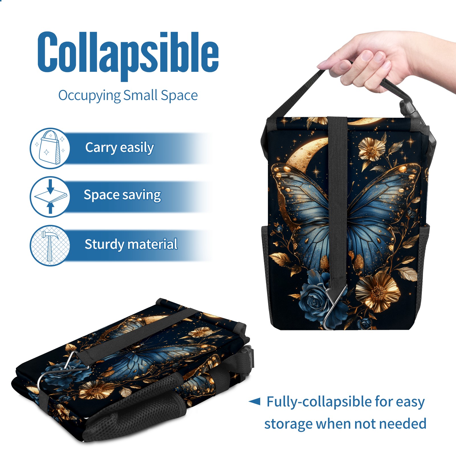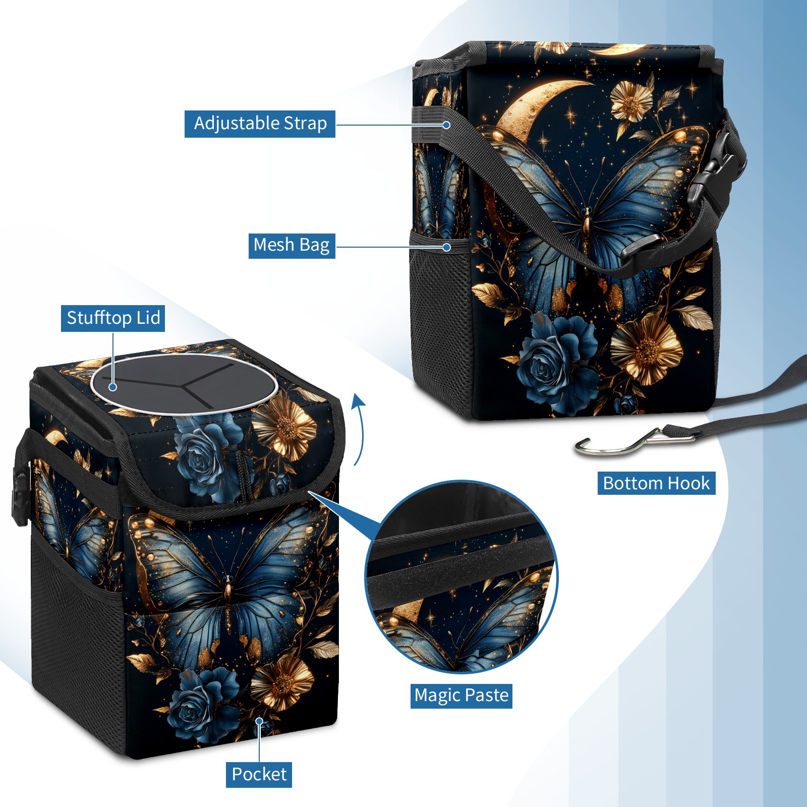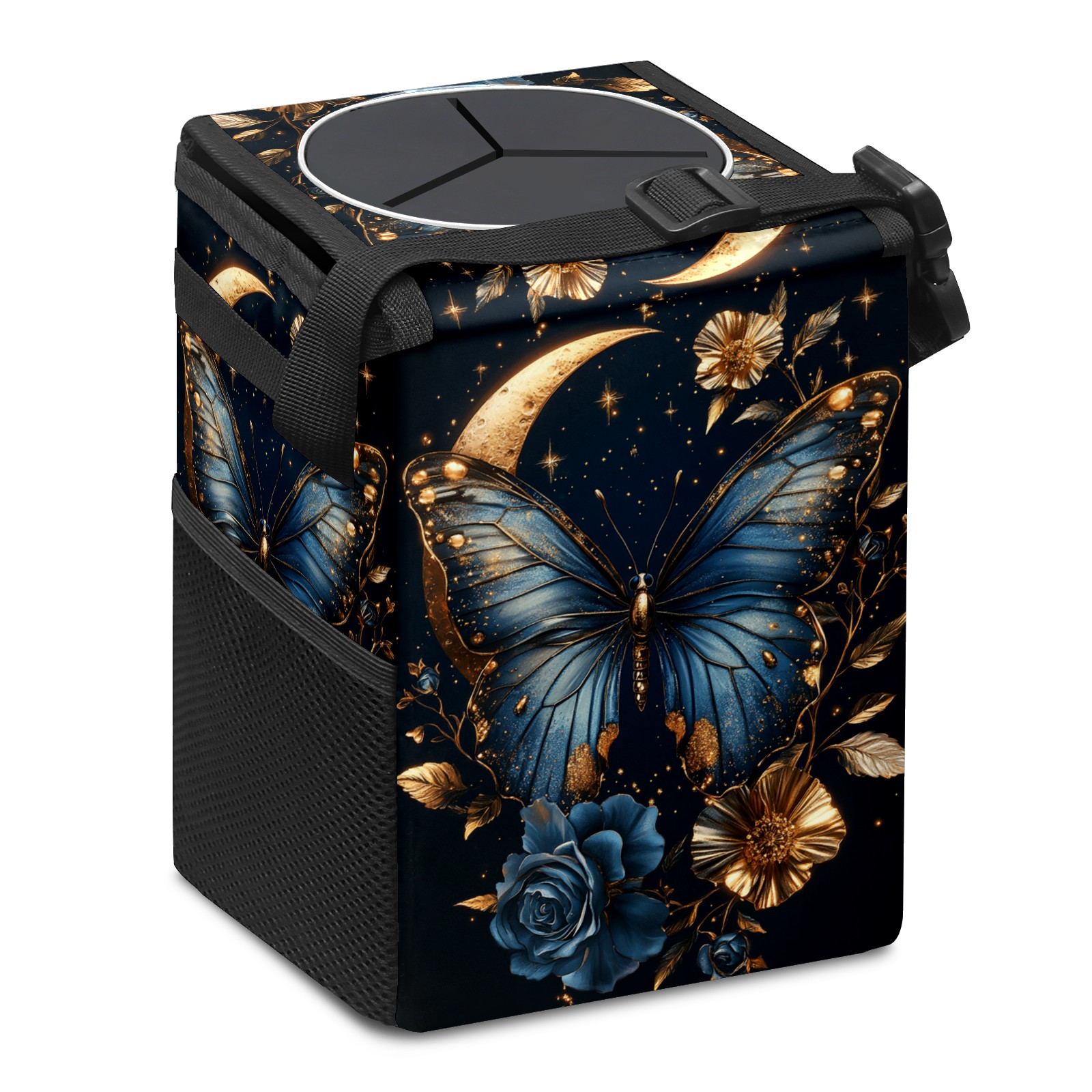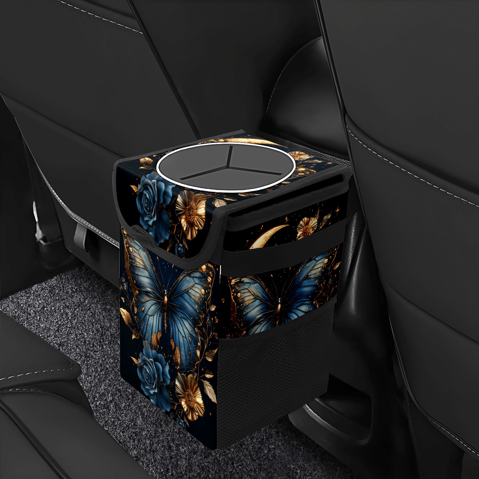 Car Garbage Can — Multi-functional, Lightweight Portable, Reusable Vehicle Trash Can, Waterproof with Sufficient Storage Capacity Black Gold Butterfly