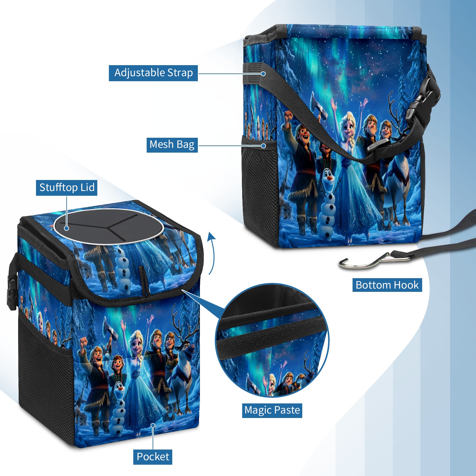 • <p>Keep your car neat with this practical car trash can—built for durability, versatility, and on-the-go convenience! Crafted from quality twill fabric with a waterproof lining, it prevents leaks, keeping seats/floors clean. Clean easily: empty directly or secure a disposable bag with side clips. Adjustable pull cord fits floor, seat, or headrest. 9.5x6.3x6.7 inches, ample space for daily trash, folds flat for storage. More than a trash can, it doubles as a storage bag for cups, toys, docs, and small gadgets—must-have car interior accessory. Installs in seconds on seats, console, or gear shift; adjustable straps keep it stable, no slipping on bumpy roads. Perfect gift for new car owners!</p>