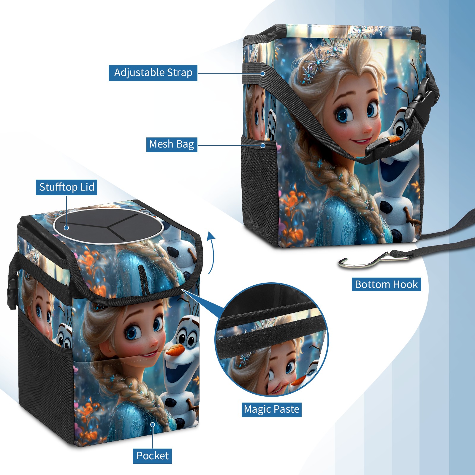 • <p>Keep your car neat with this practical car trash can—built for durability, versatility, and on-the-go convenience! Crafted from quality twill fabric with a waterproof lining, it prevents leaks, keeping seats/floors clean. Clean easily: empty directly or secure a disposable bag with side clips. Adjustable pull cord fits floor, seat, or headrest. 9.5x6.3x6.7 inches, ample space for daily trash, folds flat for storage. More than a trash can, it doubles as a storage bag for cups, toys, docs, and small gadgets—must-have car interior accessory. Installs in seconds on seats, console, or gear shift; adjustable straps keep it stable, no slipping on bumpy roads. Perfect gift for new car owners!</p>
