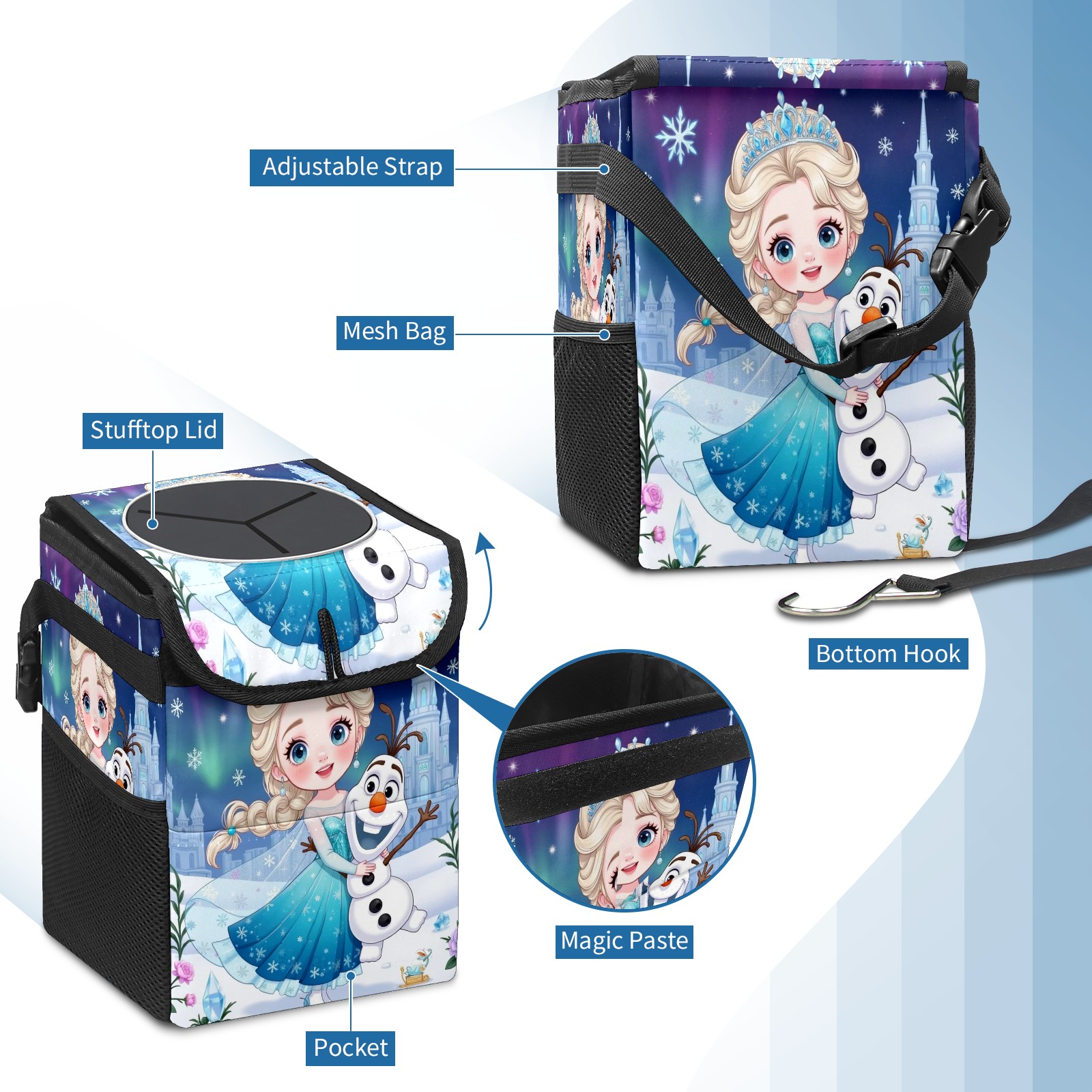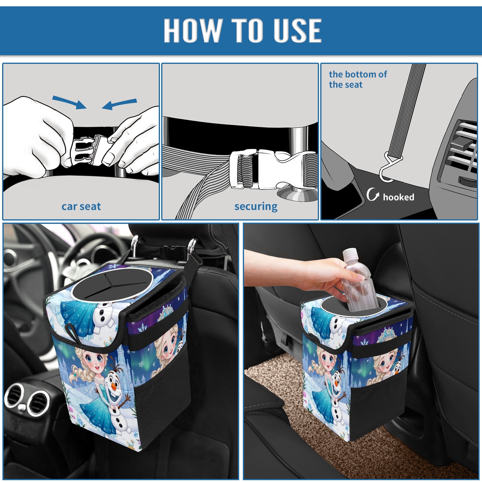 • <p>Keep your car neat with this practical car trash can—built for durability, versatility, and on-the-go convenience! Crafted from quality twill fabric with a waterproof lining, it prevents leaks, keeping seats/floors clean. Clean easily: empty directly or secure a disposable bag with side clips. Adjustable pull cord fits floor, seat, or headrest. 9.5x6.3x6.7 inches, ample space for daily trash, folds flat for storage. More than a trash can, it doubles as a storage bag for cups, toys, docs, and small gadgets—must-have car interior accessory. Installs in seconds on seats, console, or gear shift; adjustable straps keep it stable, no slipping on bumpy roads. Perfect gift for new car owners!</p>