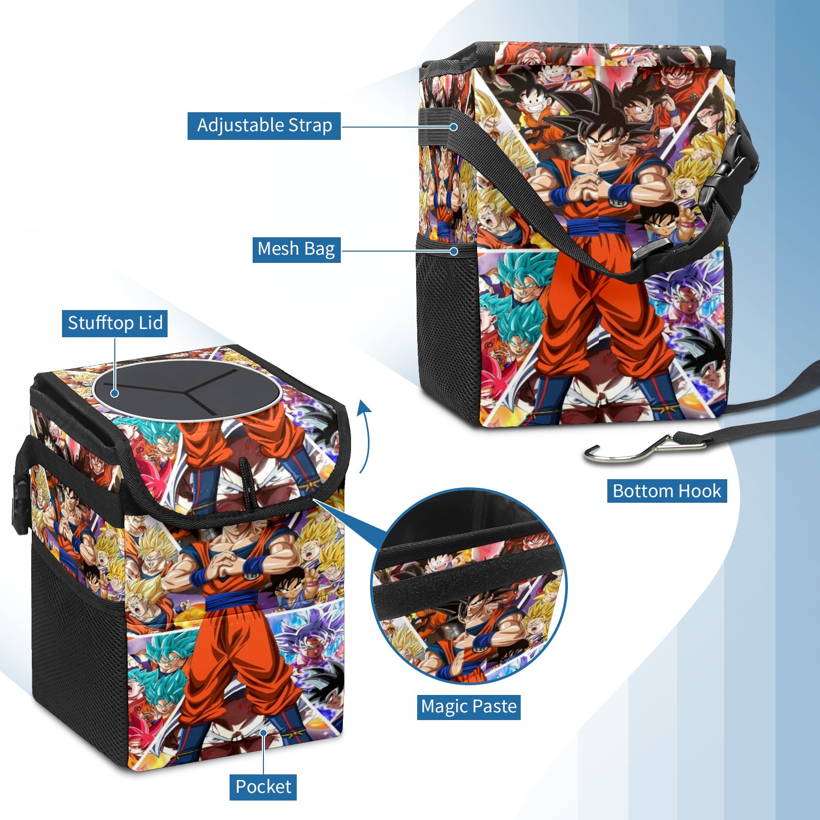 • <p>Keep your car neat with this practical car trash can—built for durability, versatility, and on-the-go convenience! Crafted from quality twill fabric with a waterproof lining, it prevents leaks, keeping seats/floors clean. Clean easily: empty directly or secure a disposable bag with side clips. Adjustable pull cord fits floor, seat, or headrest. 9.5x6.3x6.7 inches, ample space for daily trash, folds flat for storage. More than a trash can, it doubles as a storage bag for cups, toys, docs, and small gadgets—must-have car interior accessory. Installs in seconds on seats, console, or gear shift; adjustable straps keep it stable, no slipping on bumpy roads. Perfect gift for new car owners!</p>