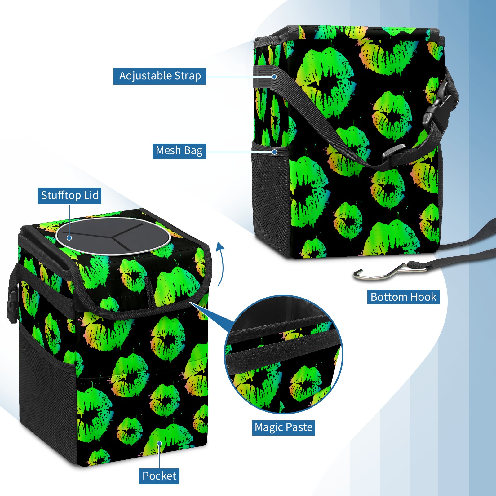 Car Garbage Can — Multi-functional, Lightweight Portable, Reusable Vehicle Trash Can, Waterproof with Sufficient Storage Capacity 嘴唇2