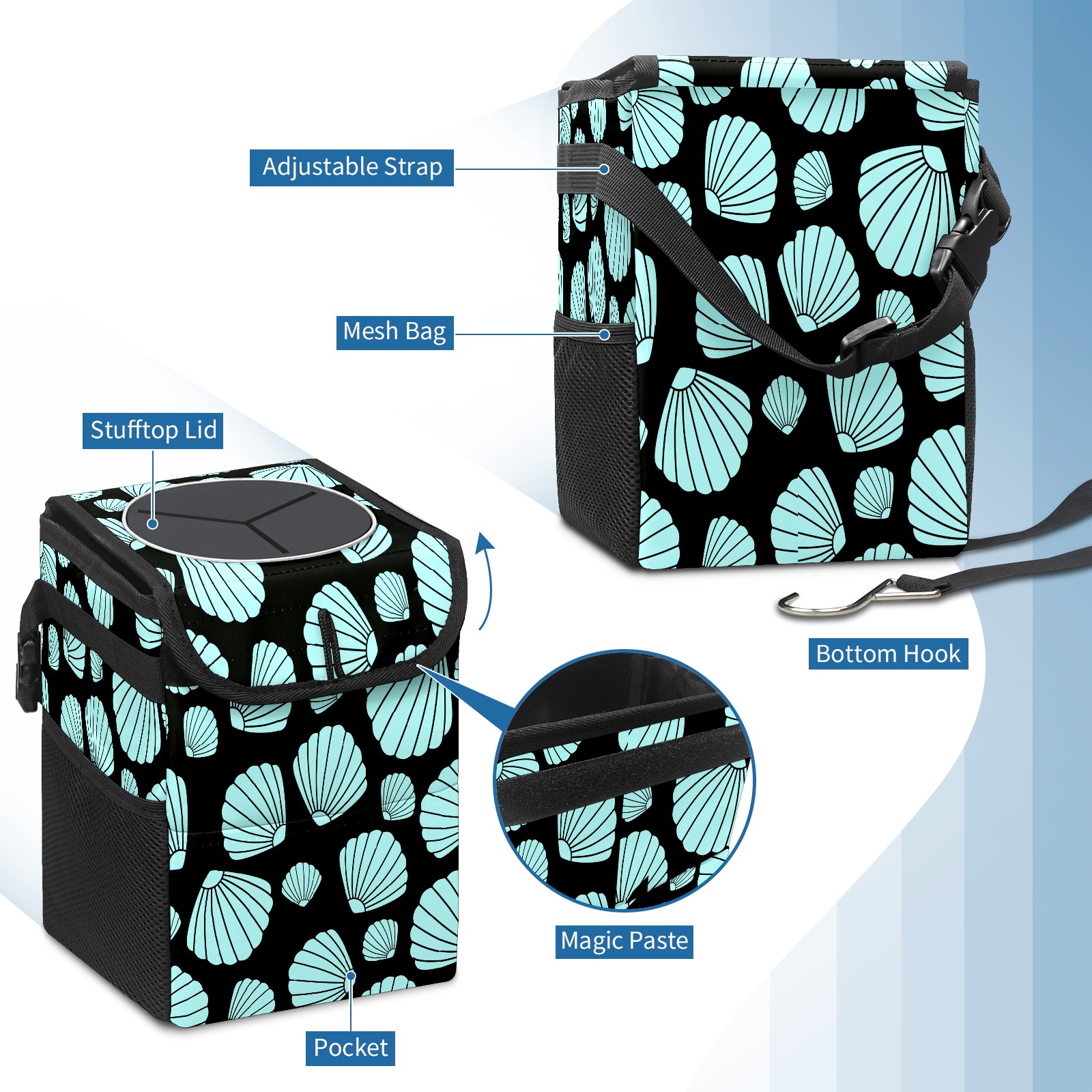 Car Garbage Can — Multi-functional, Lightweight Portable, Reusable Vehicle Trash Can, Waterproof with Sufficient Storage Capacity 贝壳000001
