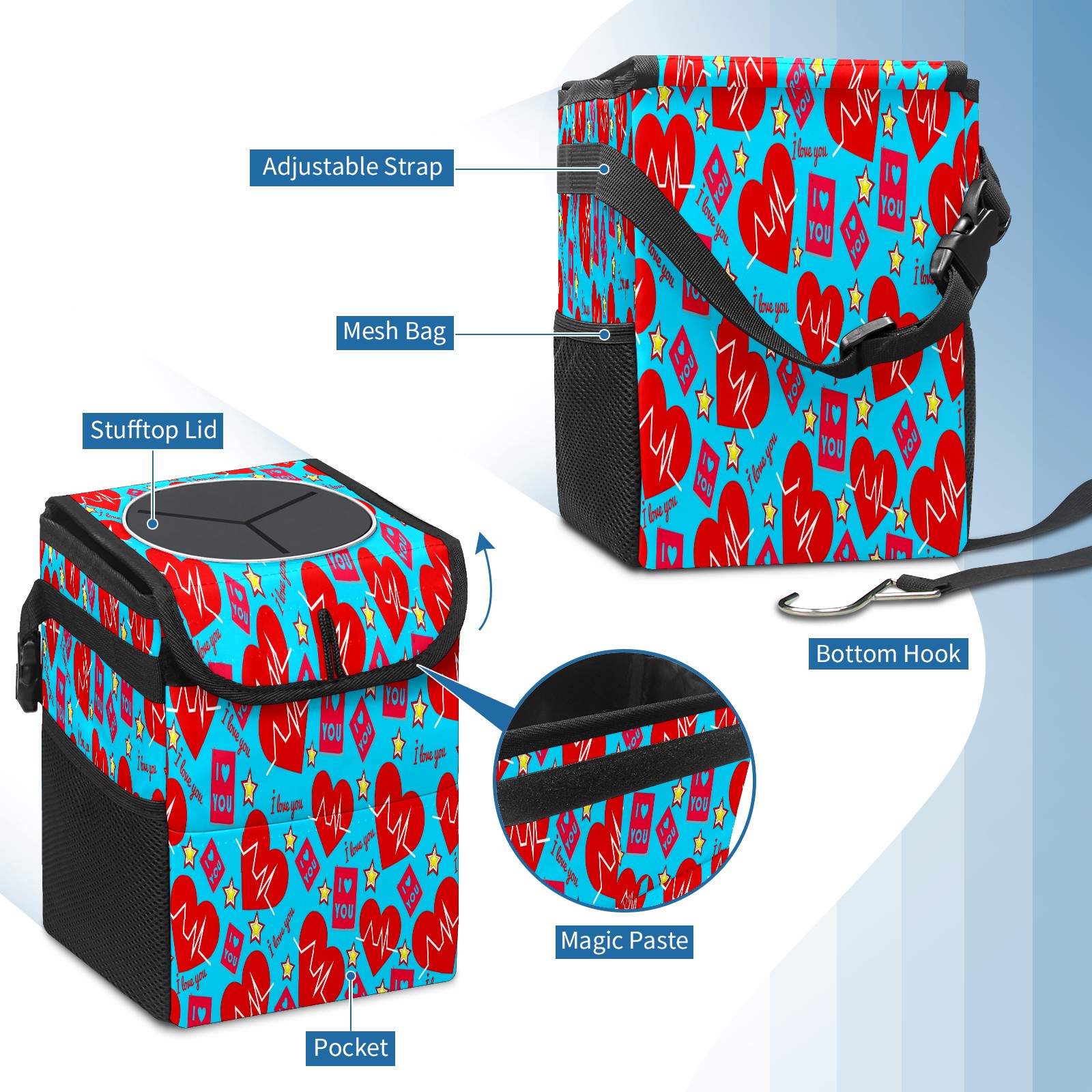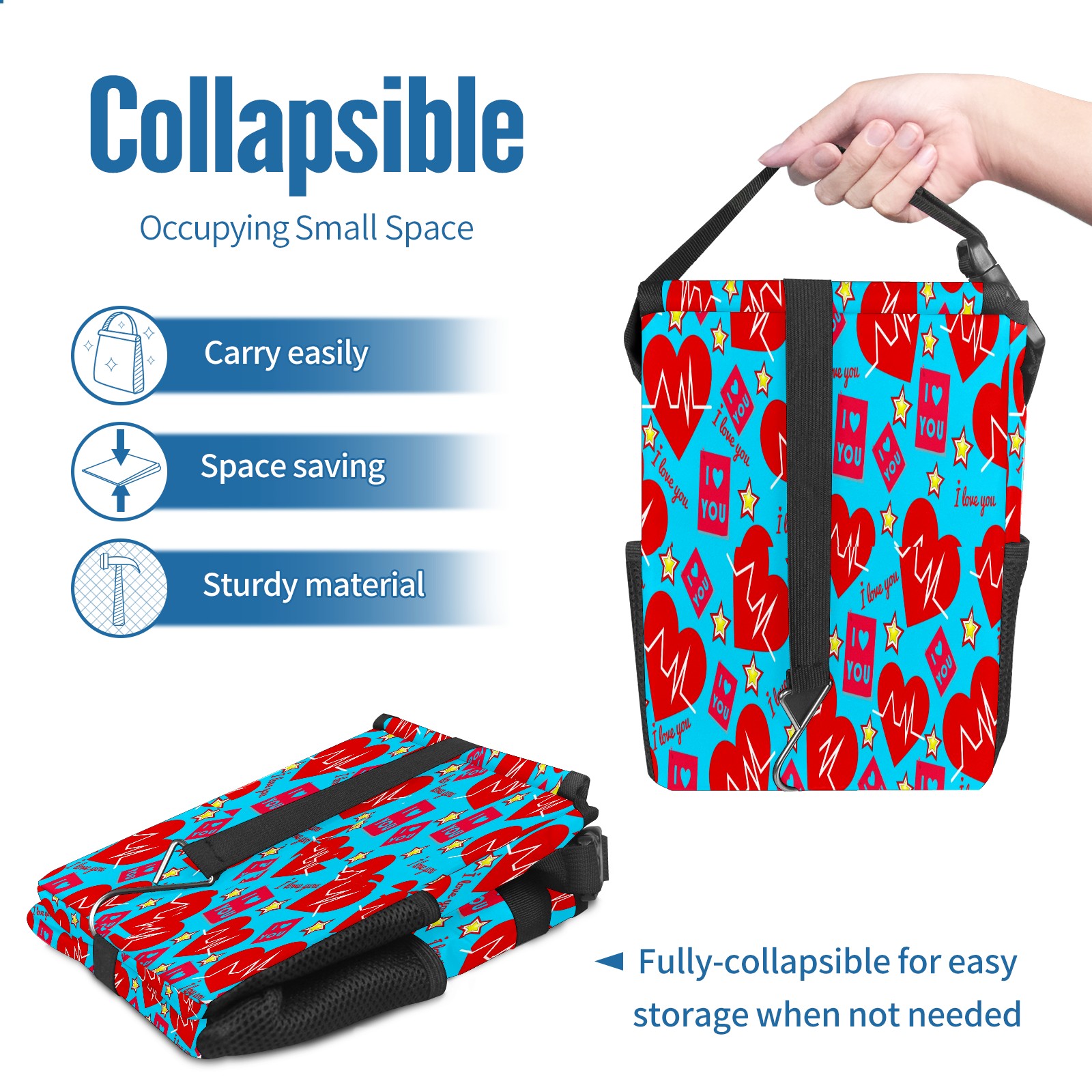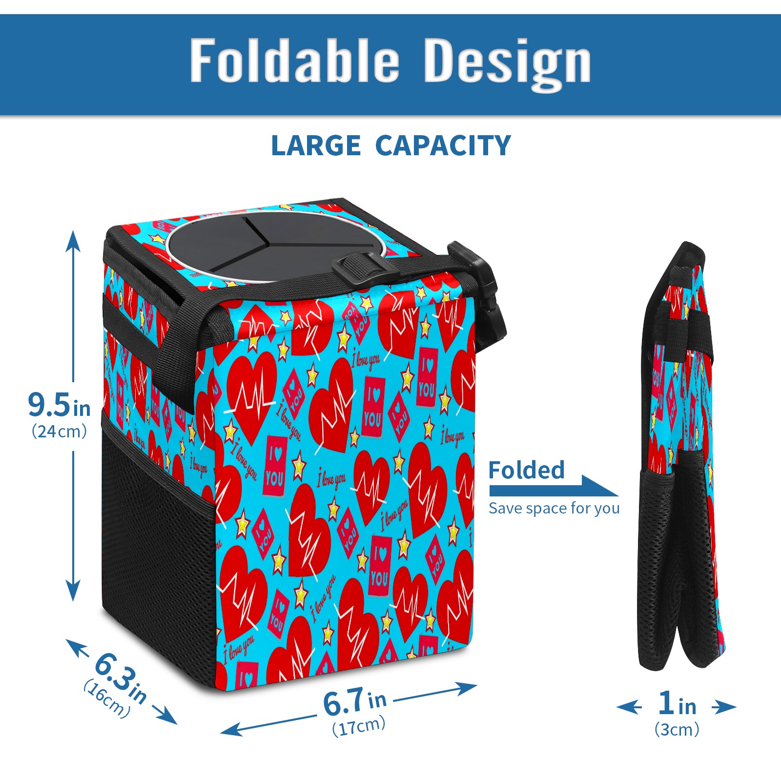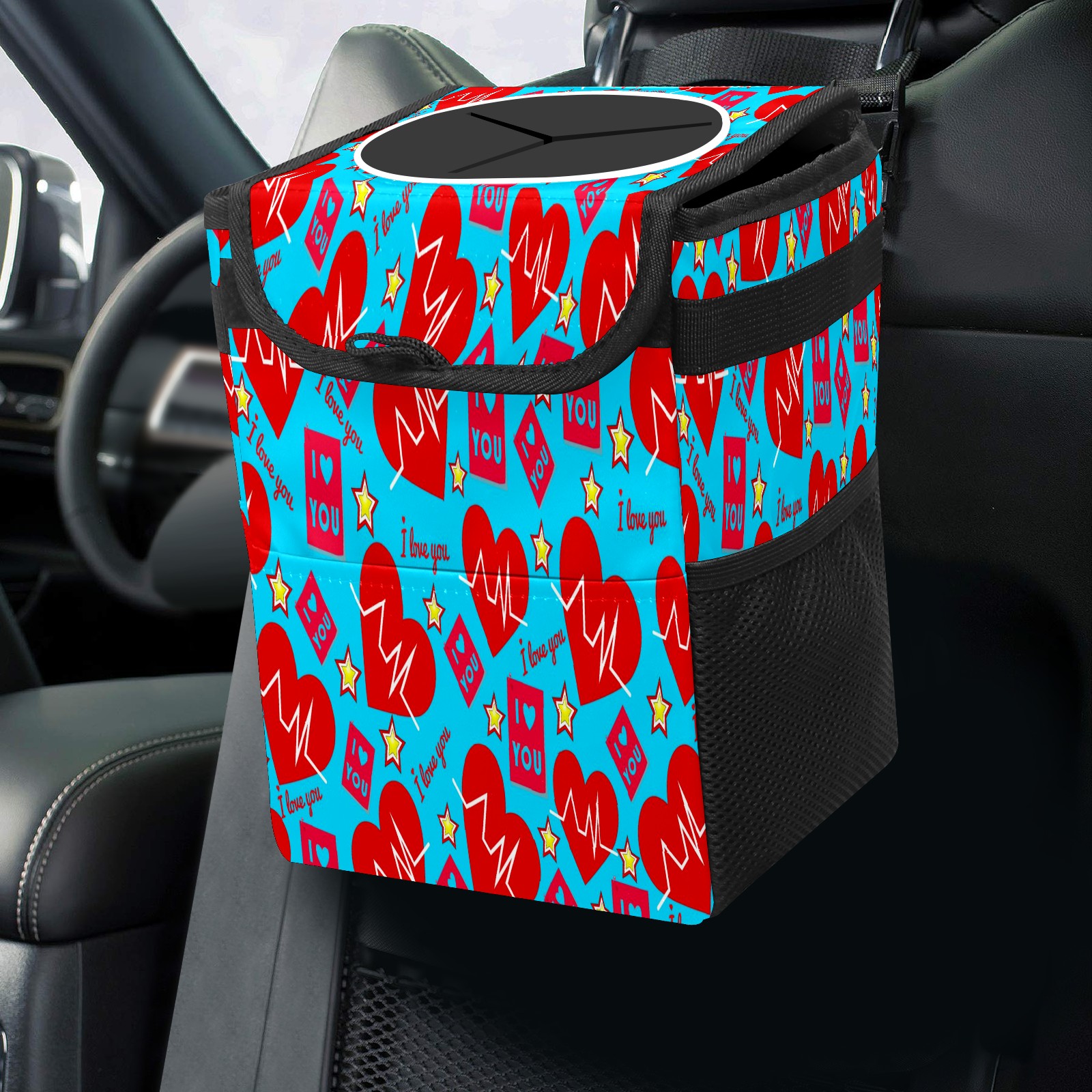 Car Garbage Can — Multi-functional, Lightweight Portable, Reusable Vehicle Trash Can, Waterproof with Sufficient Storage Capacity 爱心款式0000002