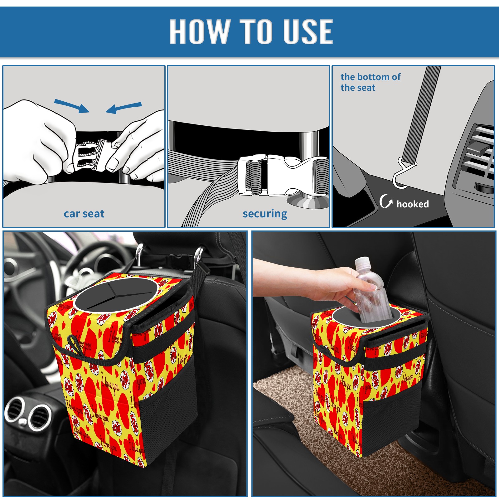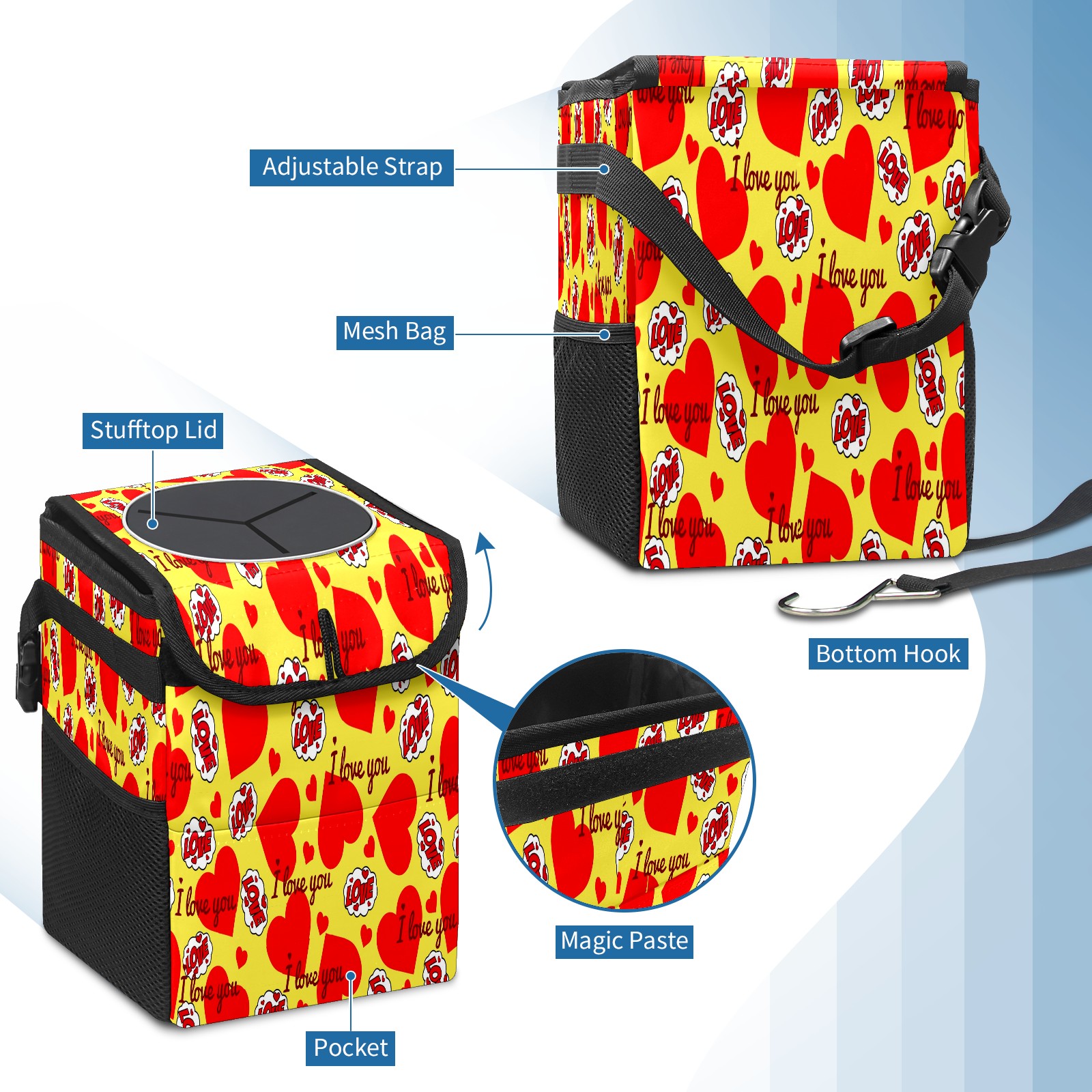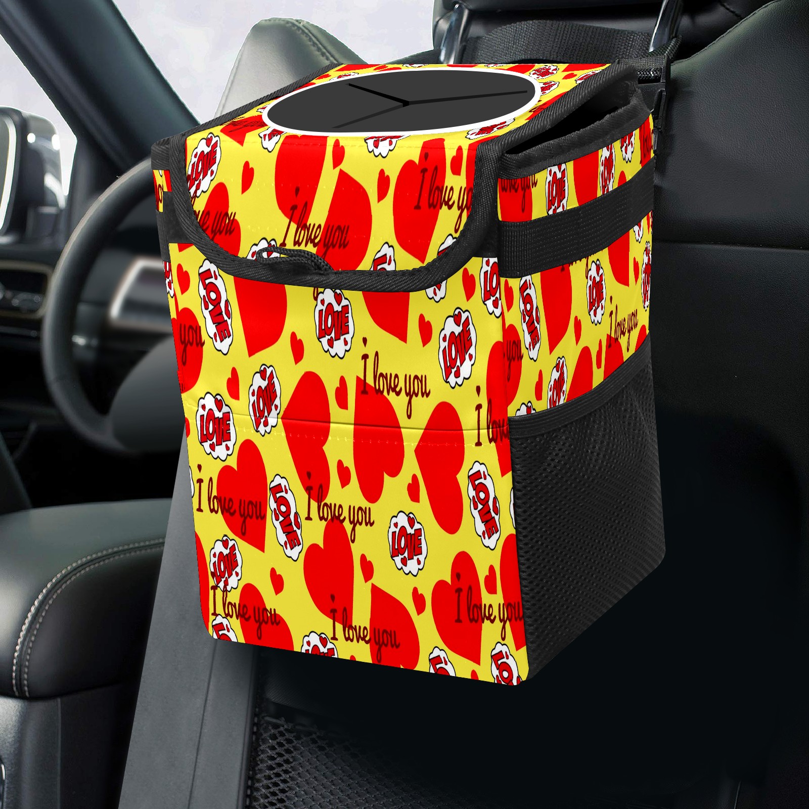 Car Garbage Can — Multi-functional, Lightweight Portable, Reusable Vehicle Trash Can, Waterproof with Sufficient Storage Capacity 爱心款式