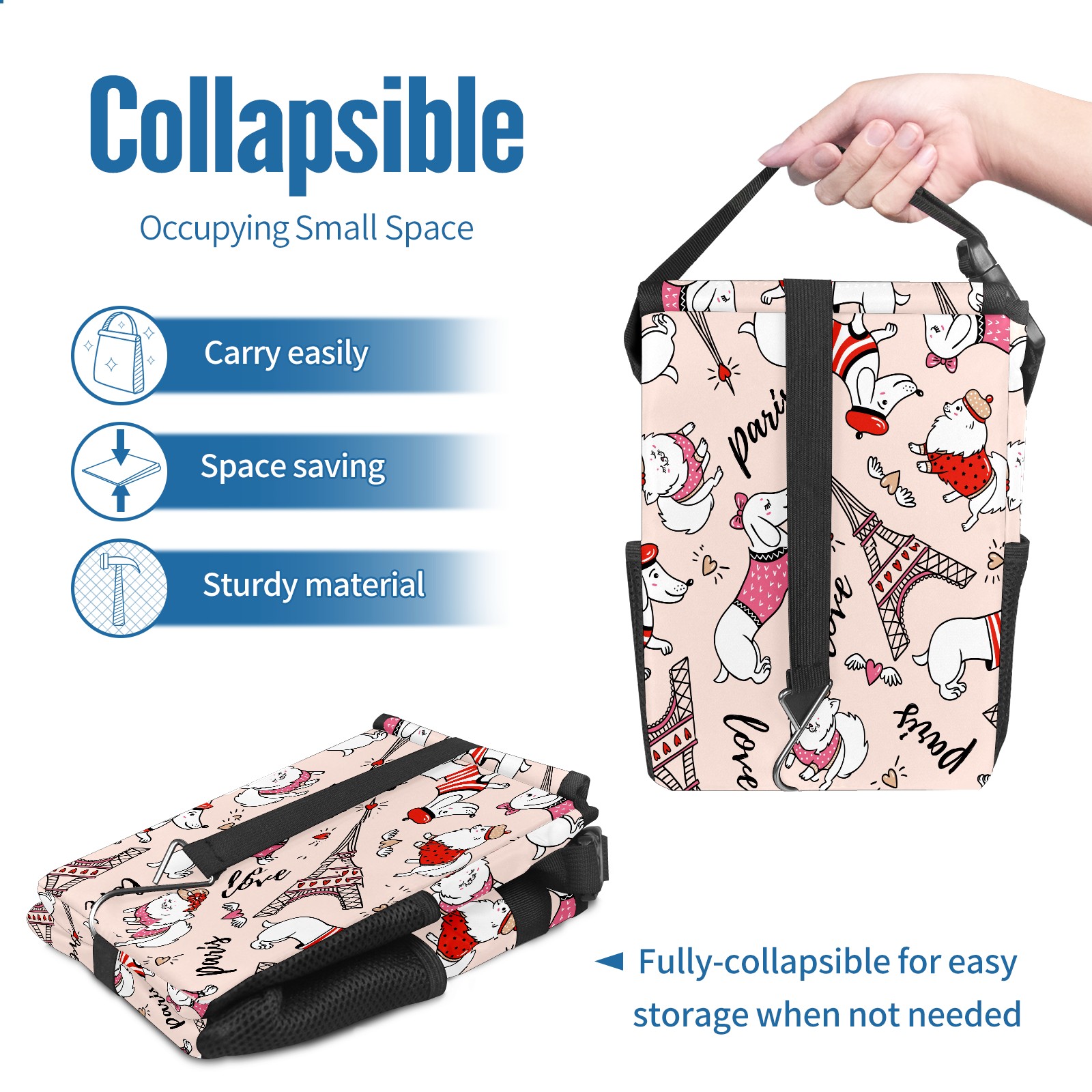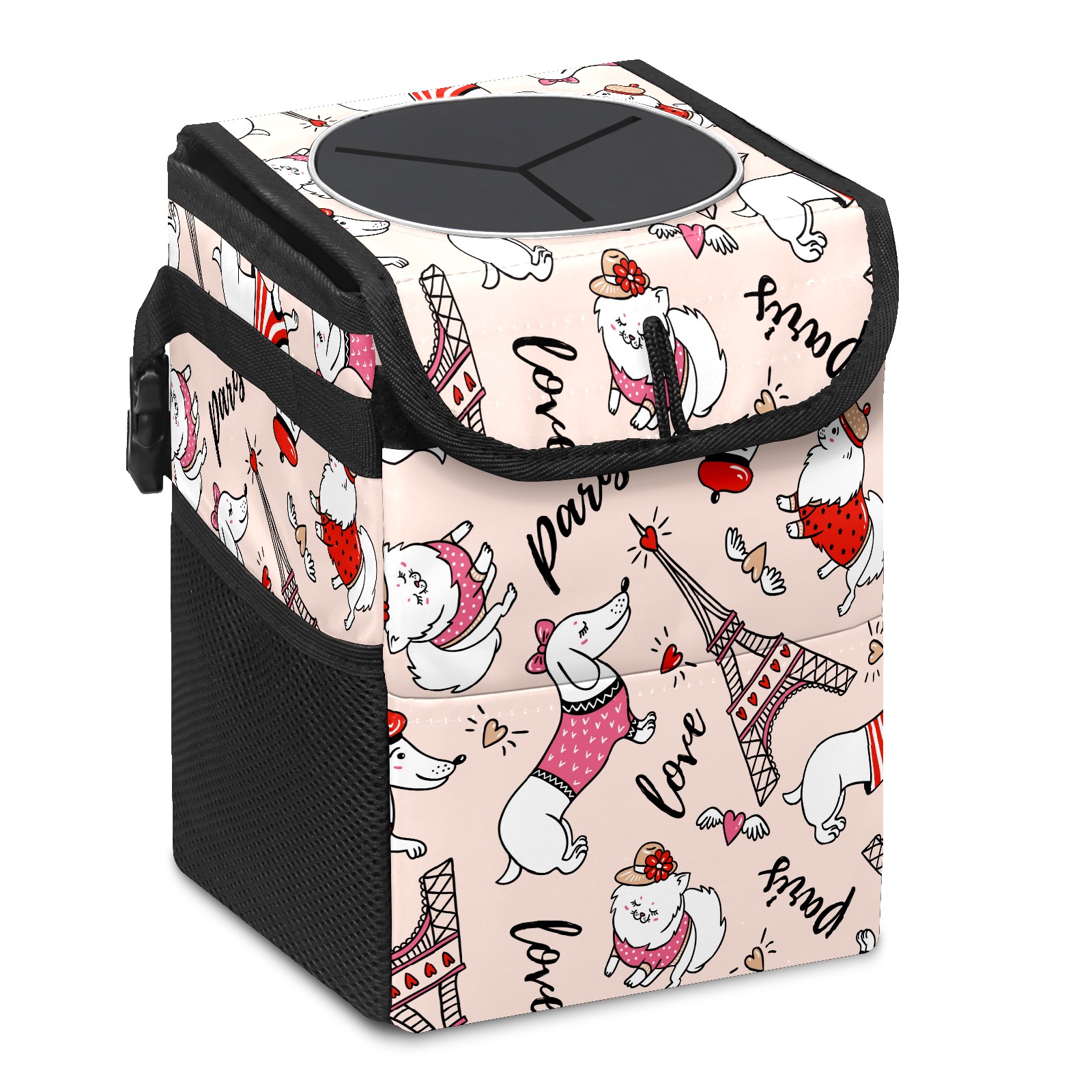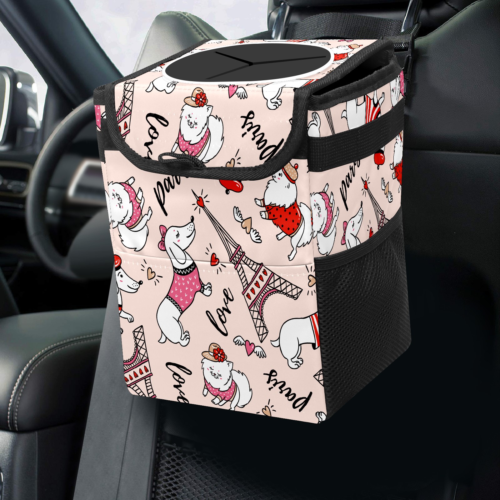 Car Garbage Can — Multi-functional, Lightweight Portable, Reusable Vehicle Trash Can, Waterproof with Sufficient Storage Capacity Cute Dachshund And Eiffel Tower