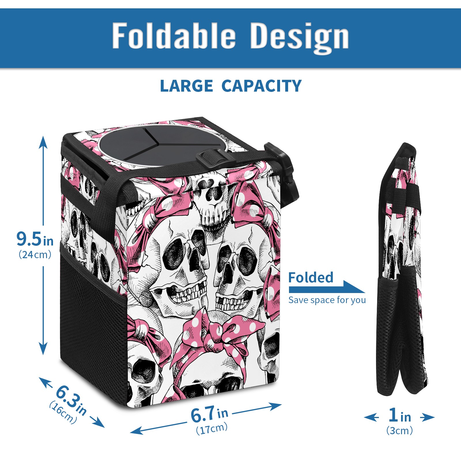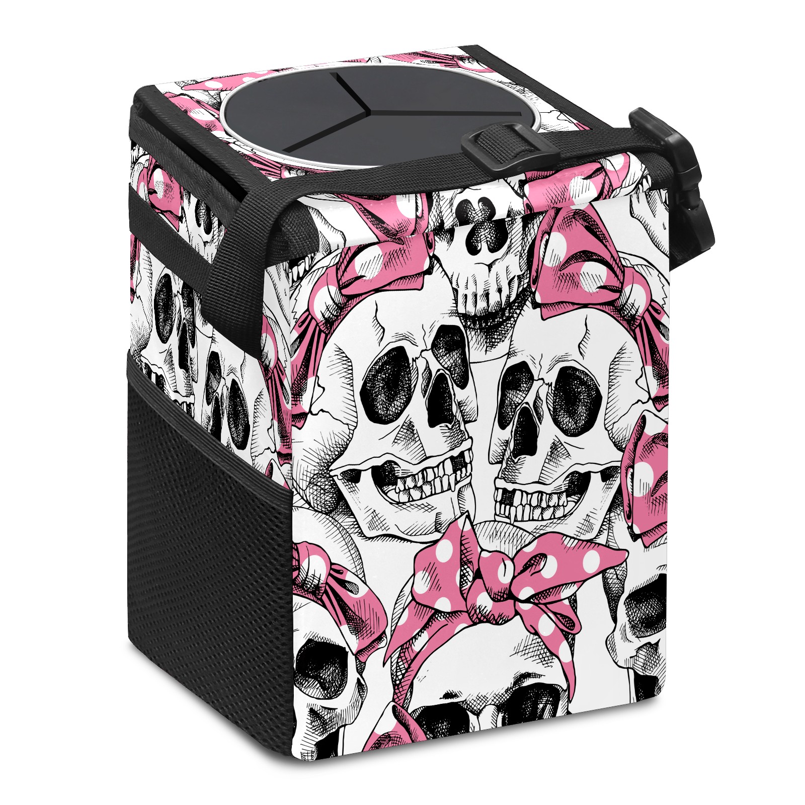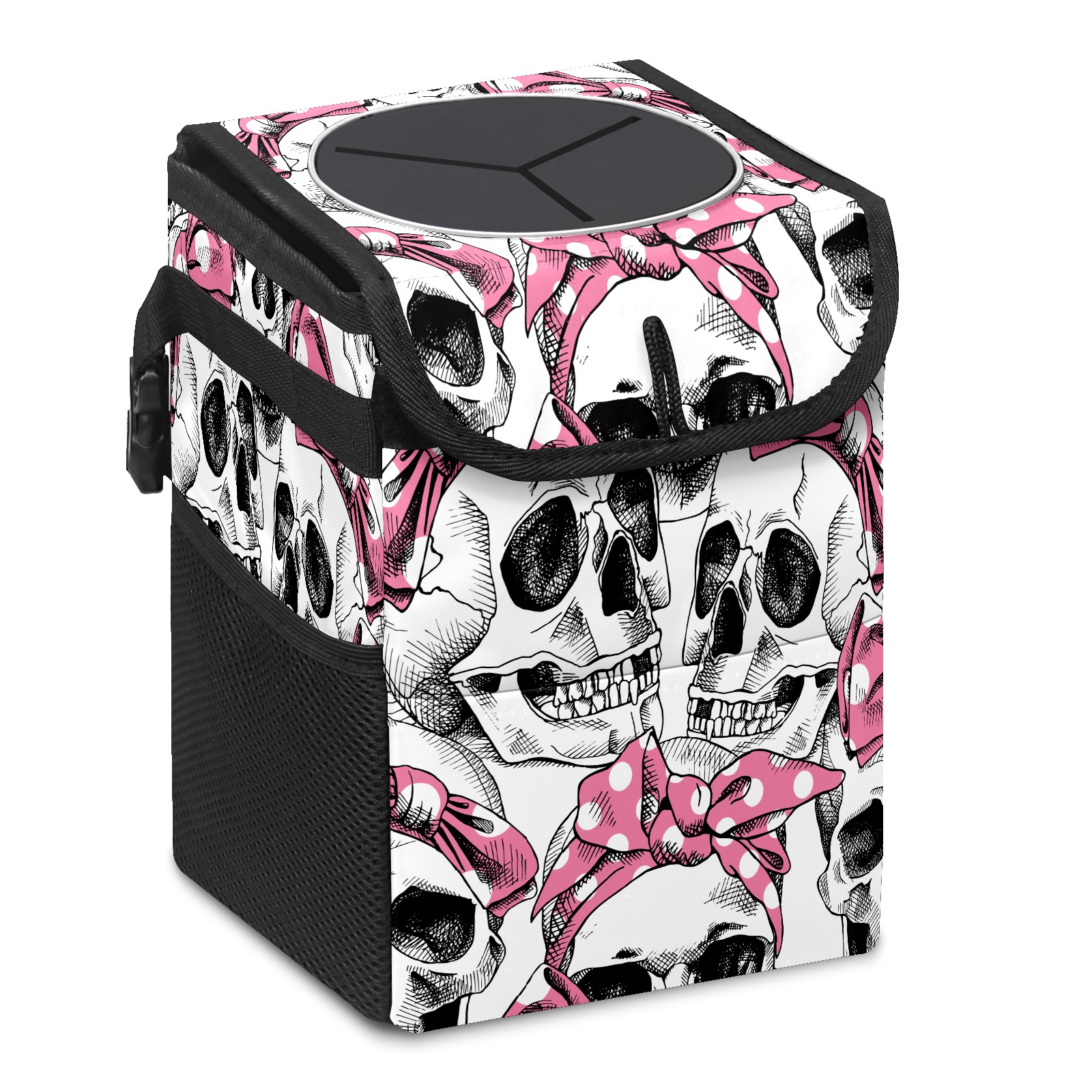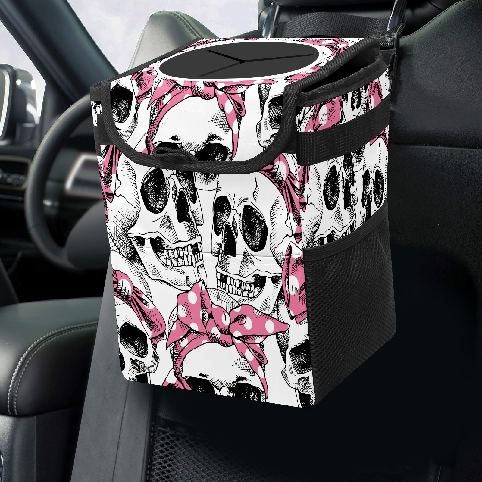 Car Garbage Can — Multi-functional, Lightweight Portable, Reusable Vehicle Trash Can, Waterproof with Sufficient Storage Capacity skull pink