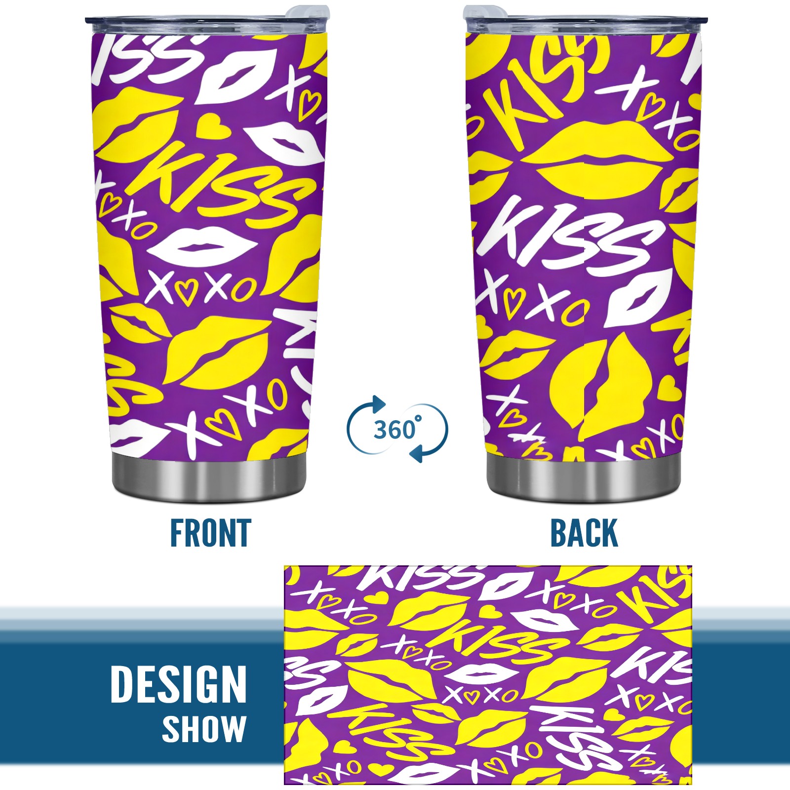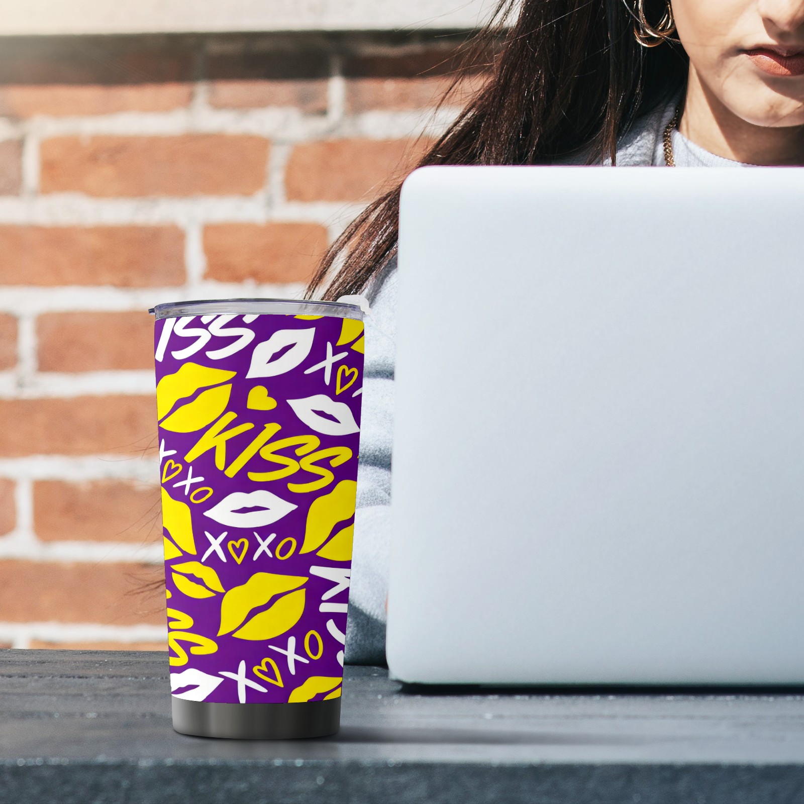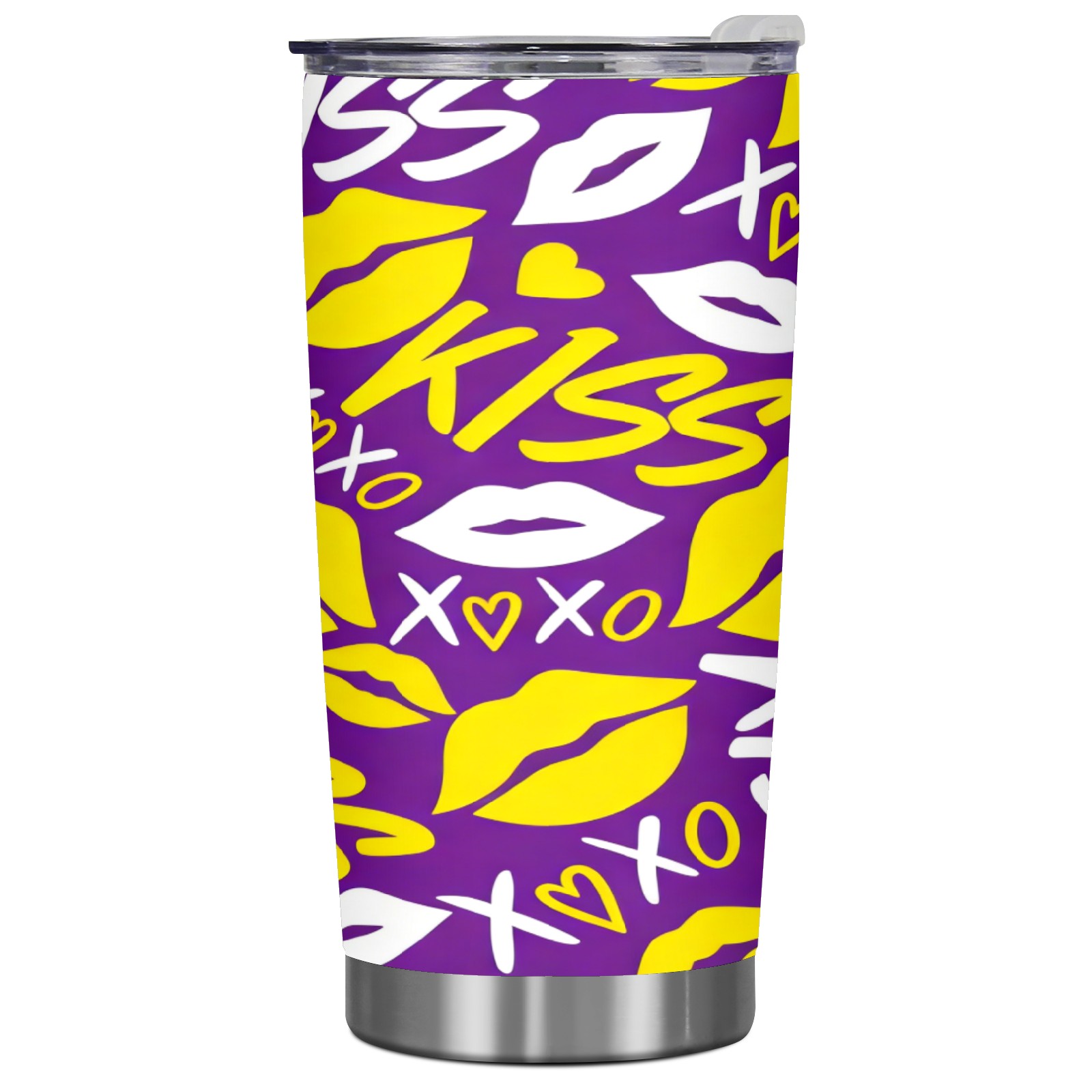 20 oz Tumbler KISS Purple Stainless Steel Insulated Tumbler with Lid Double Wall Vacuum Insulated Travel Mug Cup for Coffee Ice Hot Drinks