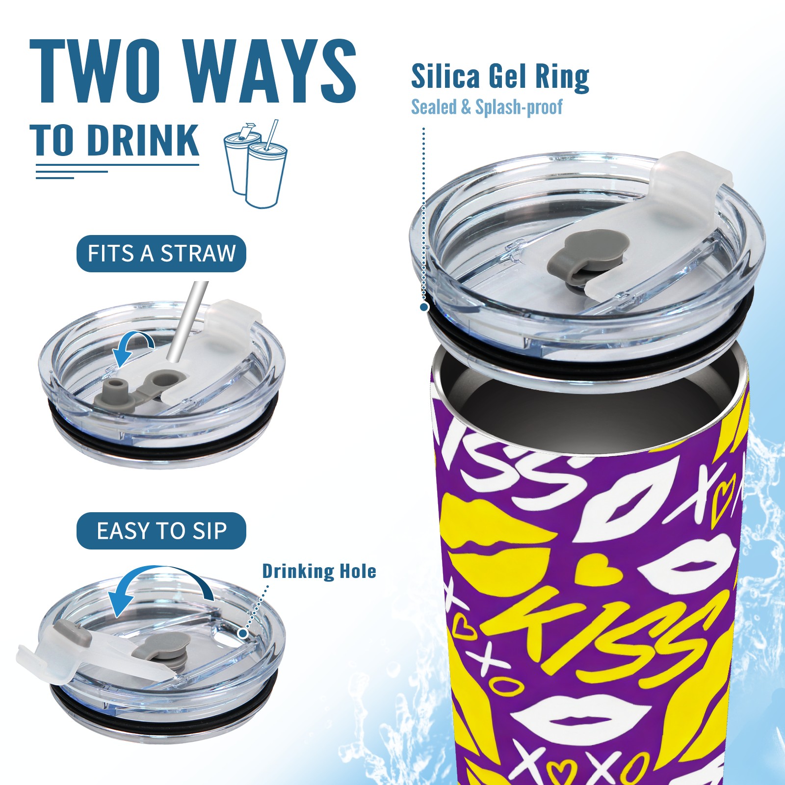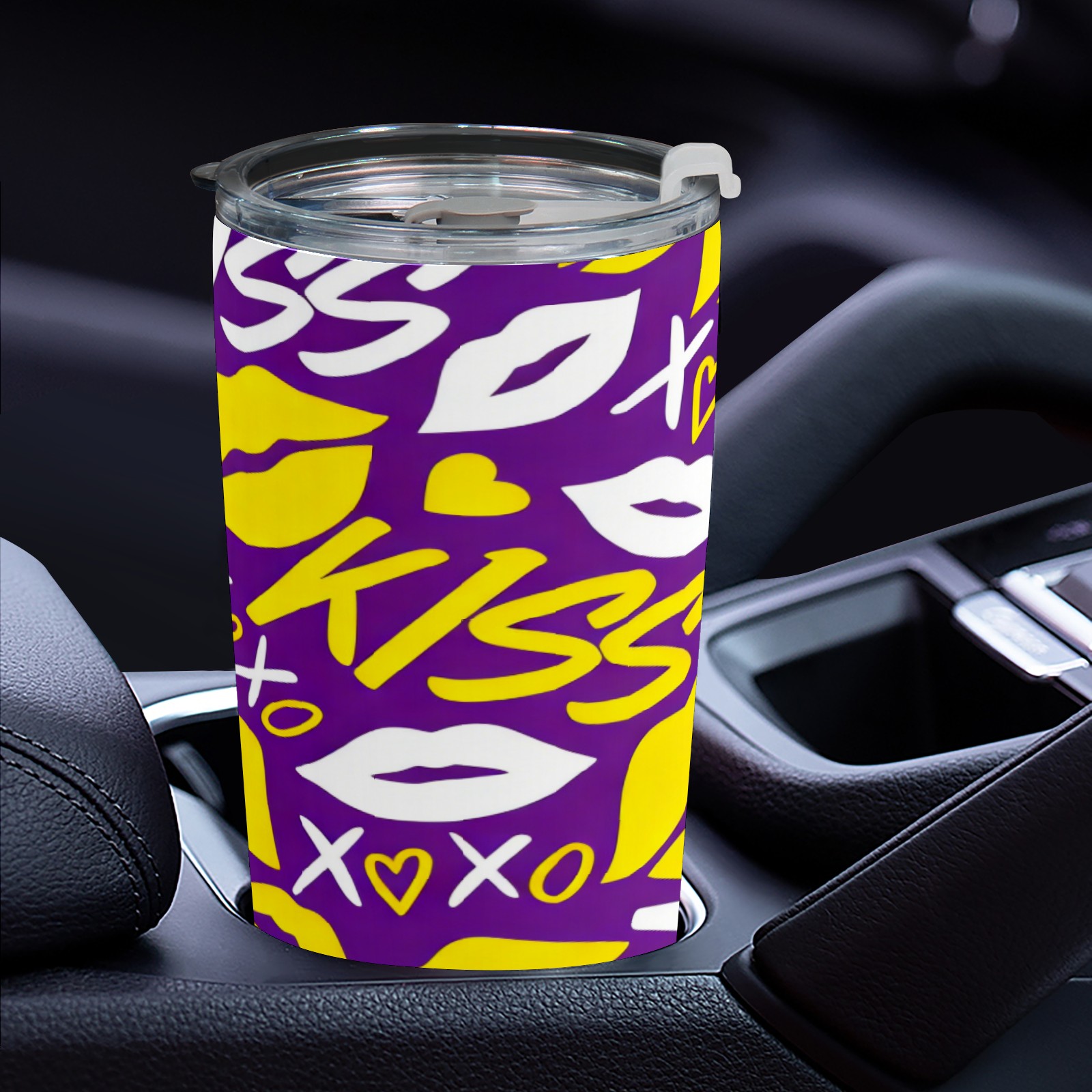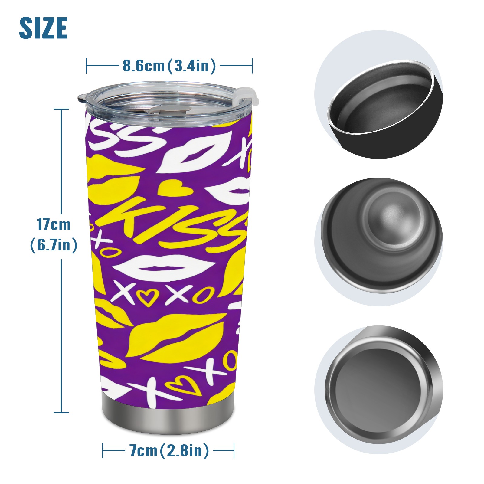 20 oz Tumbler KISS Purple Stainless Steel Insulated Tumbler with Lid Double Wall Vacuum Insulated Travel Mug Cup for Coffee Ice Hot Drinks