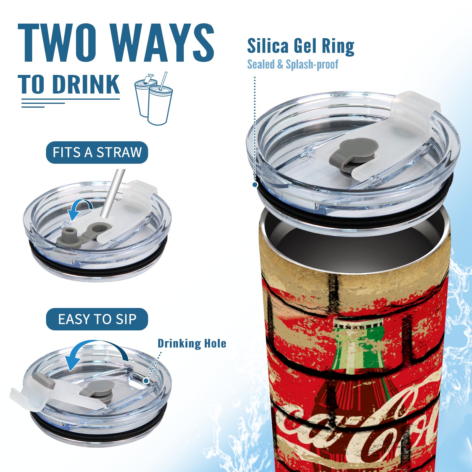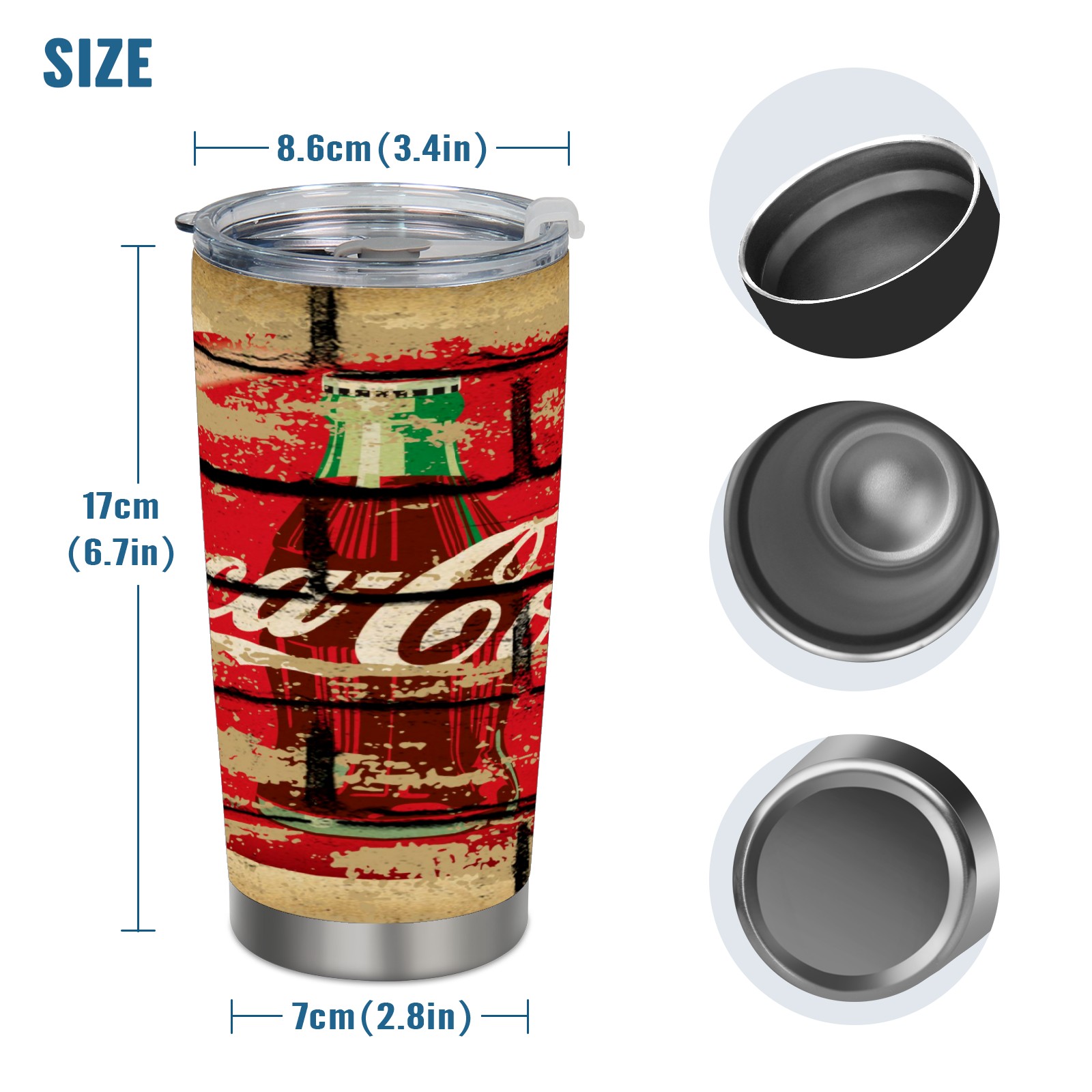 20 oz Tumbler 可口可乐14 Stainless Steel Insulated Tumbler with Lid Double Wall Vacuum Insulated Travel Mug Cup for Coffee Ice Hot Drinks