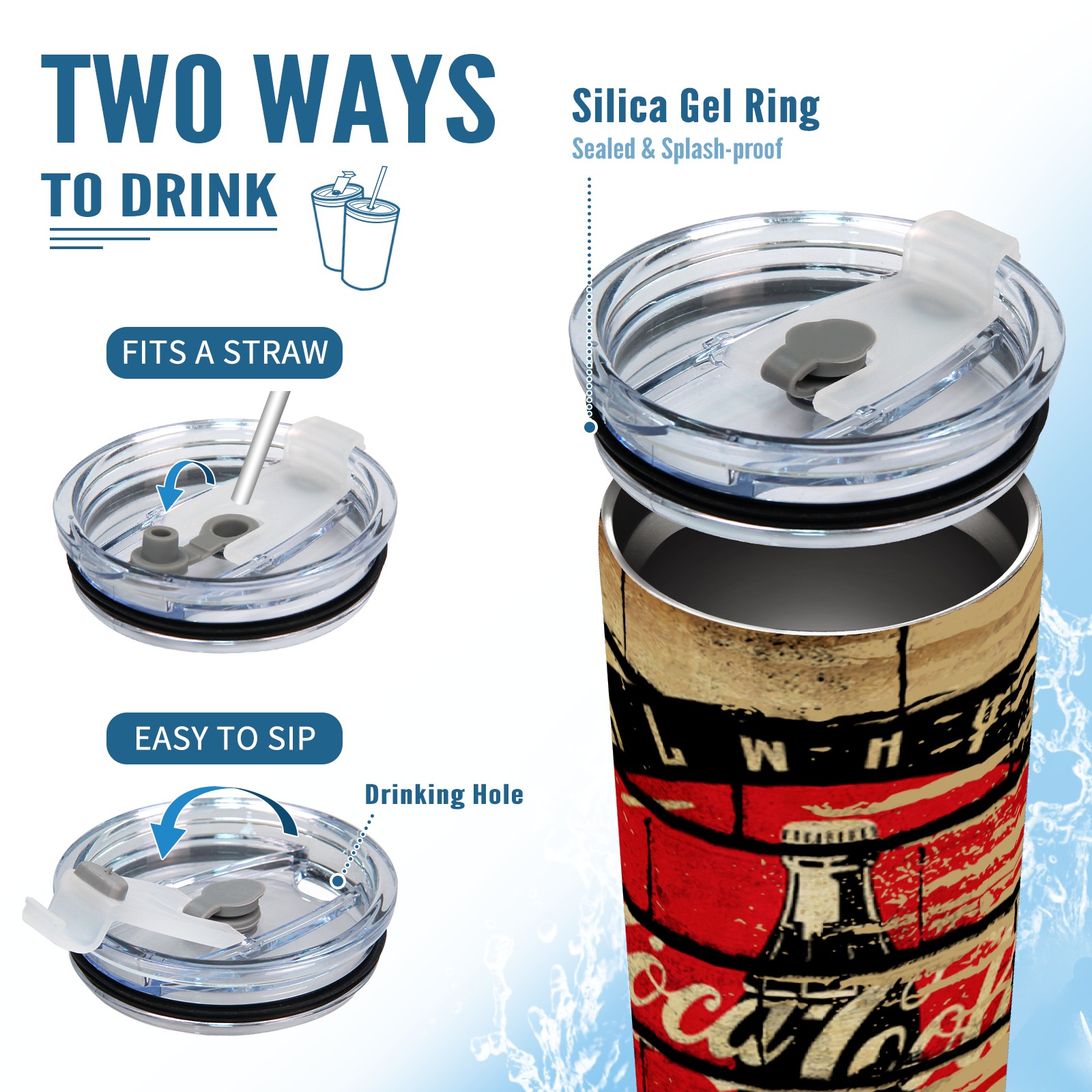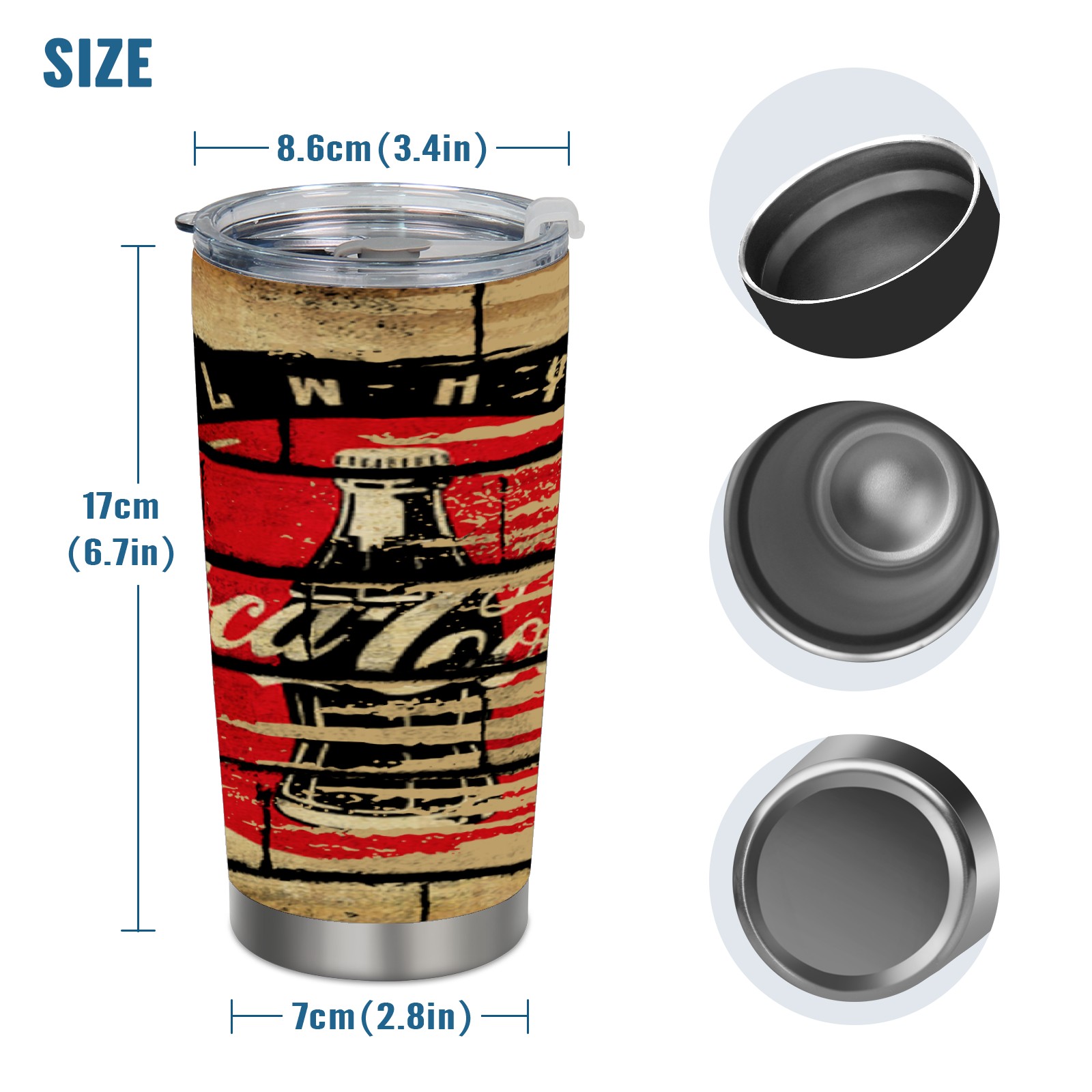 20 oz Tumbler 可口可乐12 Stainless Steel Insulated Tumbler with Lid Double Wall Vacuum Insulated Travel Mug Cup for Coffee Ice Hot Drinks