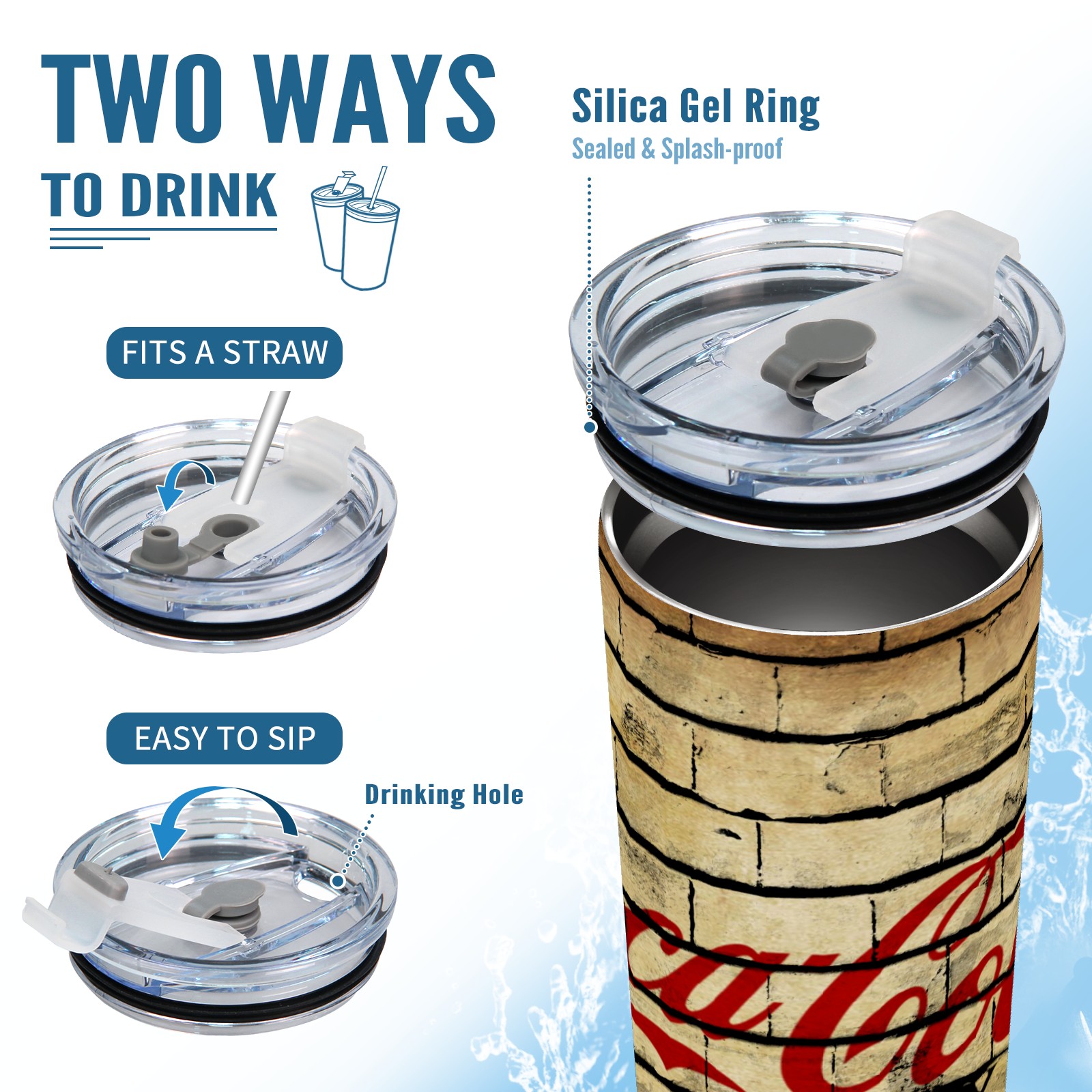 20 oz Tumbler 可口可乐6 Stainless Steel Insulated Tumbler with Lid Double Wall Vacuum Insulated Travel Mug Cup for Coffee Ice Hot Drinks