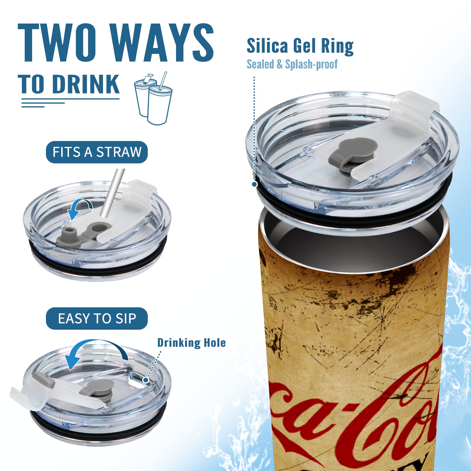 20 oz Tumbler 可口可乐5 Stainless Steel Insulated Tumbler with Lid Double Wall Vacuum Insulated Travel Mug Cup for Coffee Ice Hot Drinks