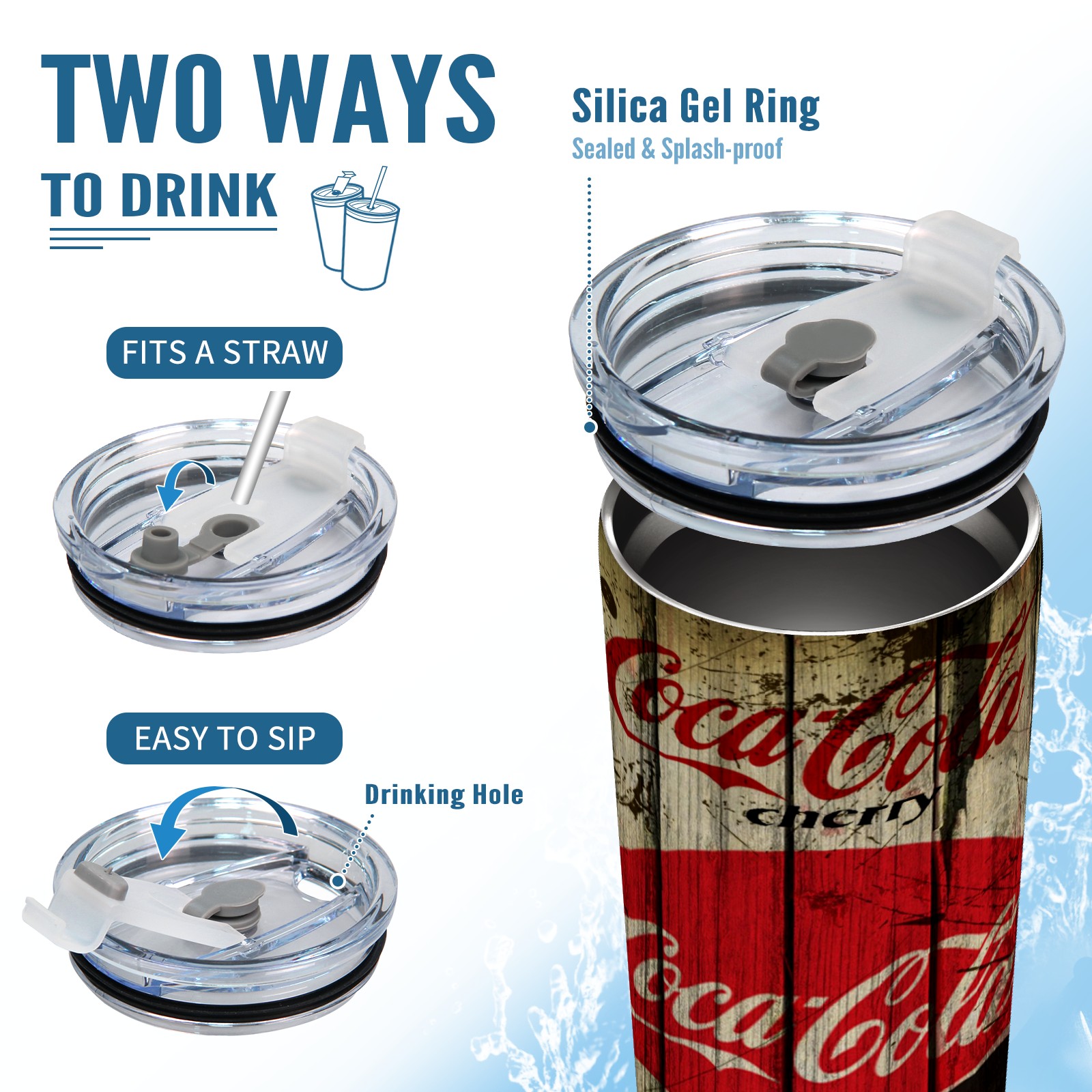 20 oz Tumbler 可口可乐4 Stainless Steel Insulated Tumbler with Lid Double Wall Vacuum Insulated Travel Mug Cup for Coffee Ice Hot Drinks
