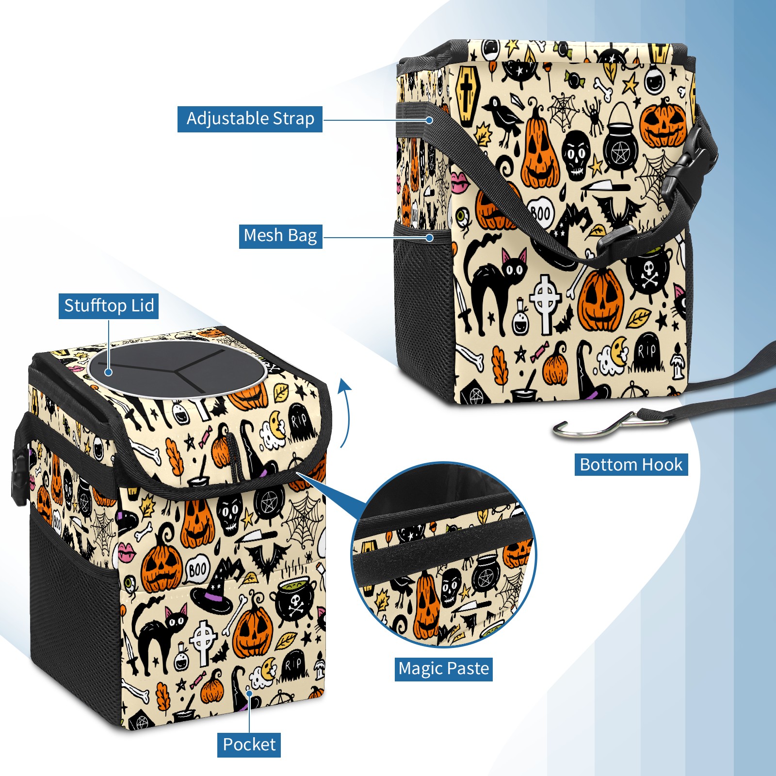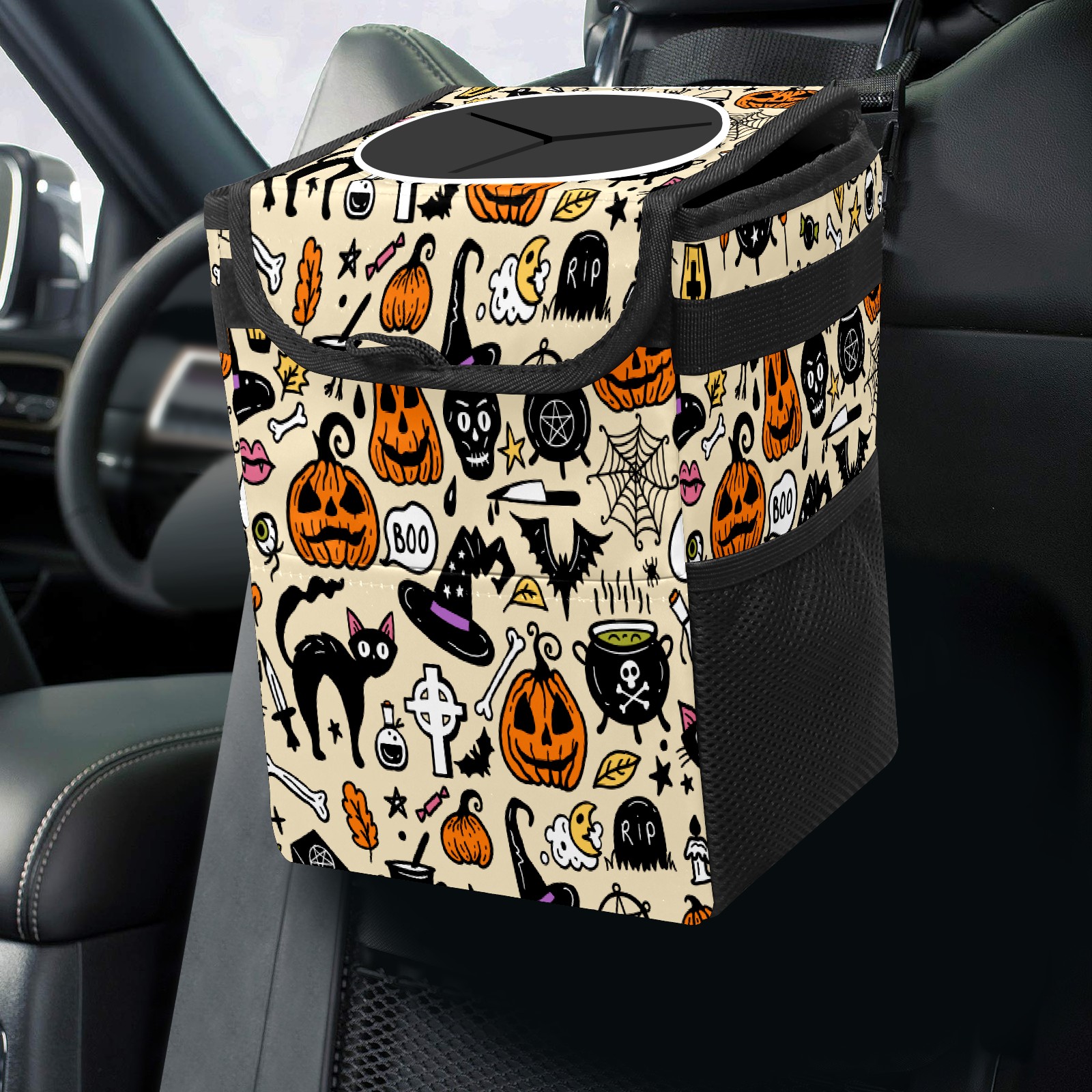 Car Garbage Can — Multi-functional, Lightweight Portable, Reusable Vehicle Trash Can, Waterproof with Sufficient Storage Capacity Halloween_pattern_2_08