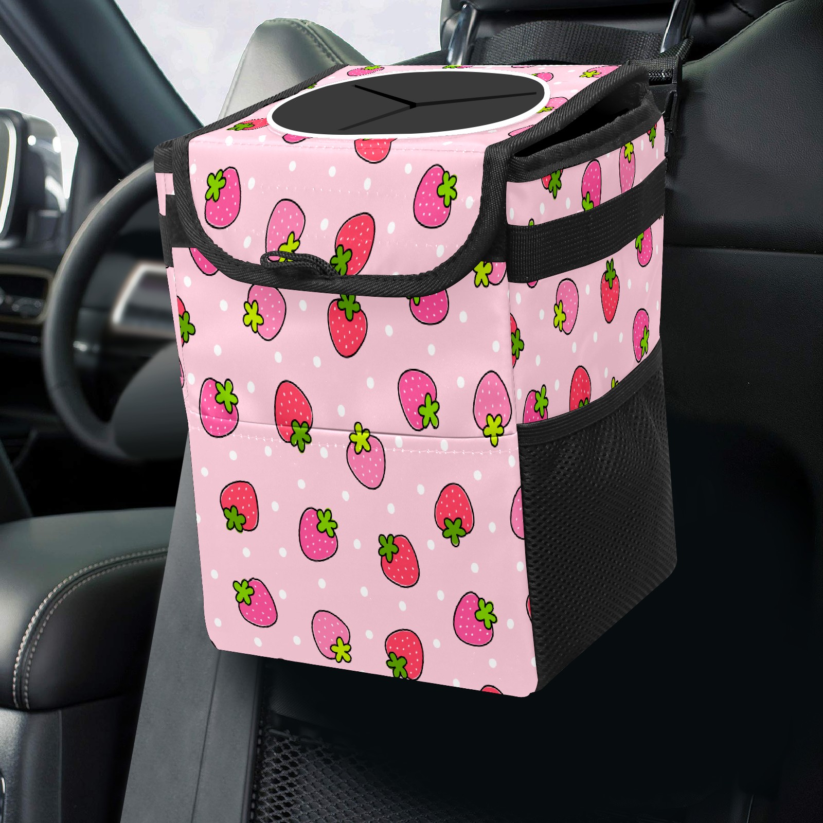 Car Garbage Can — Multi-functional, Lightweight Portable, Reusable Vehicle Trash Can, Waterproof with Sufficient Storage Capacity Pink Strawberry