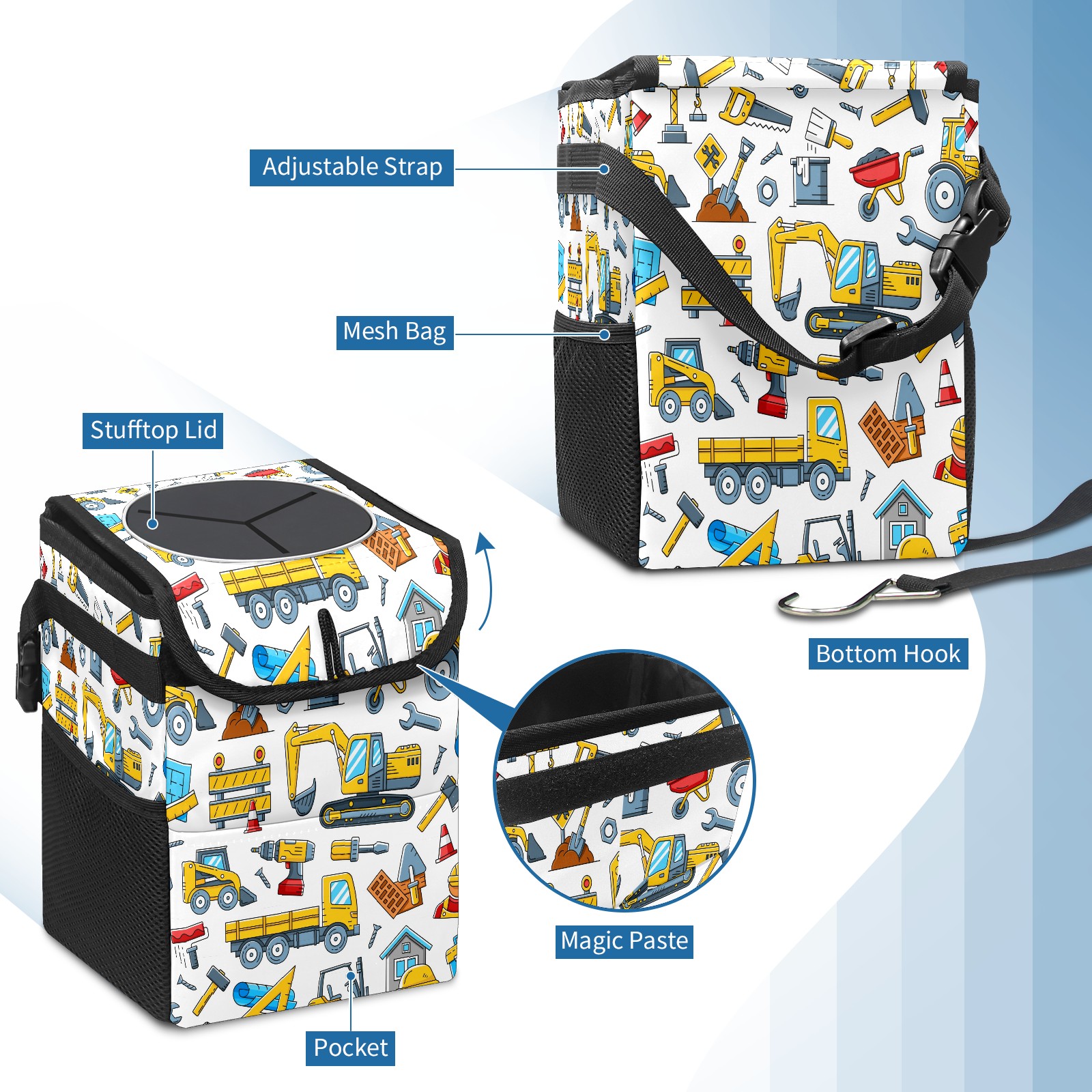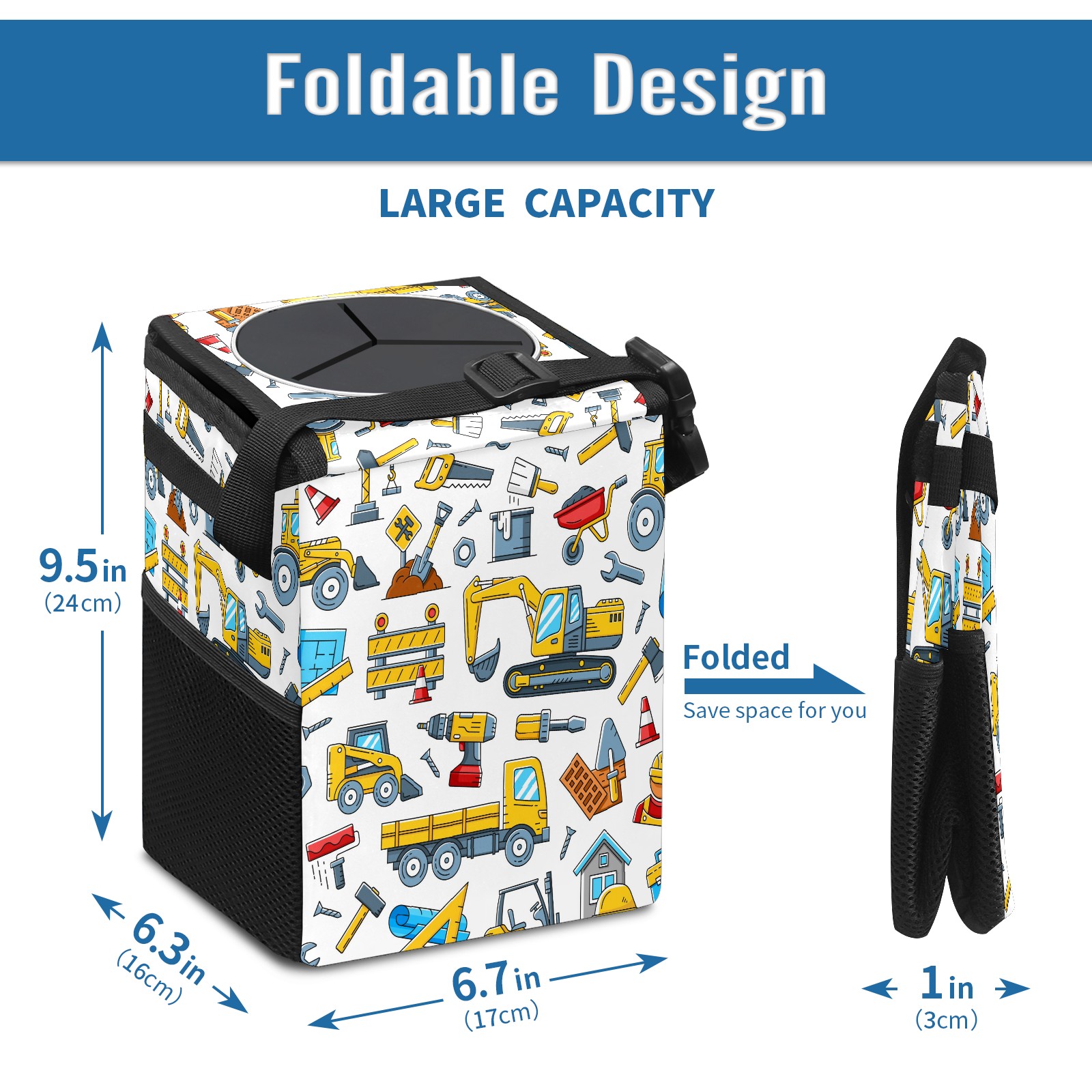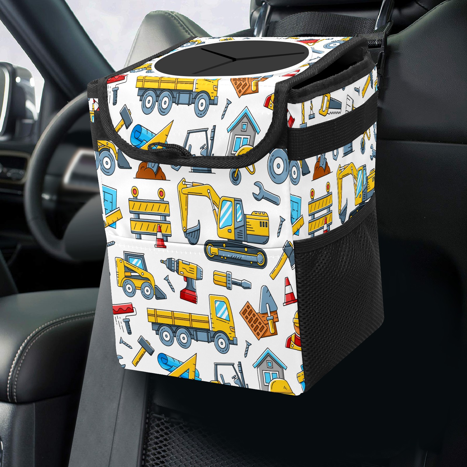 Car Garbage Can — Multi-functional, Lightweight Portable, Reusable Vehicle Trash Can, Waterproof with Sufficient Storage Capacity Cute Tractor Construction Tools