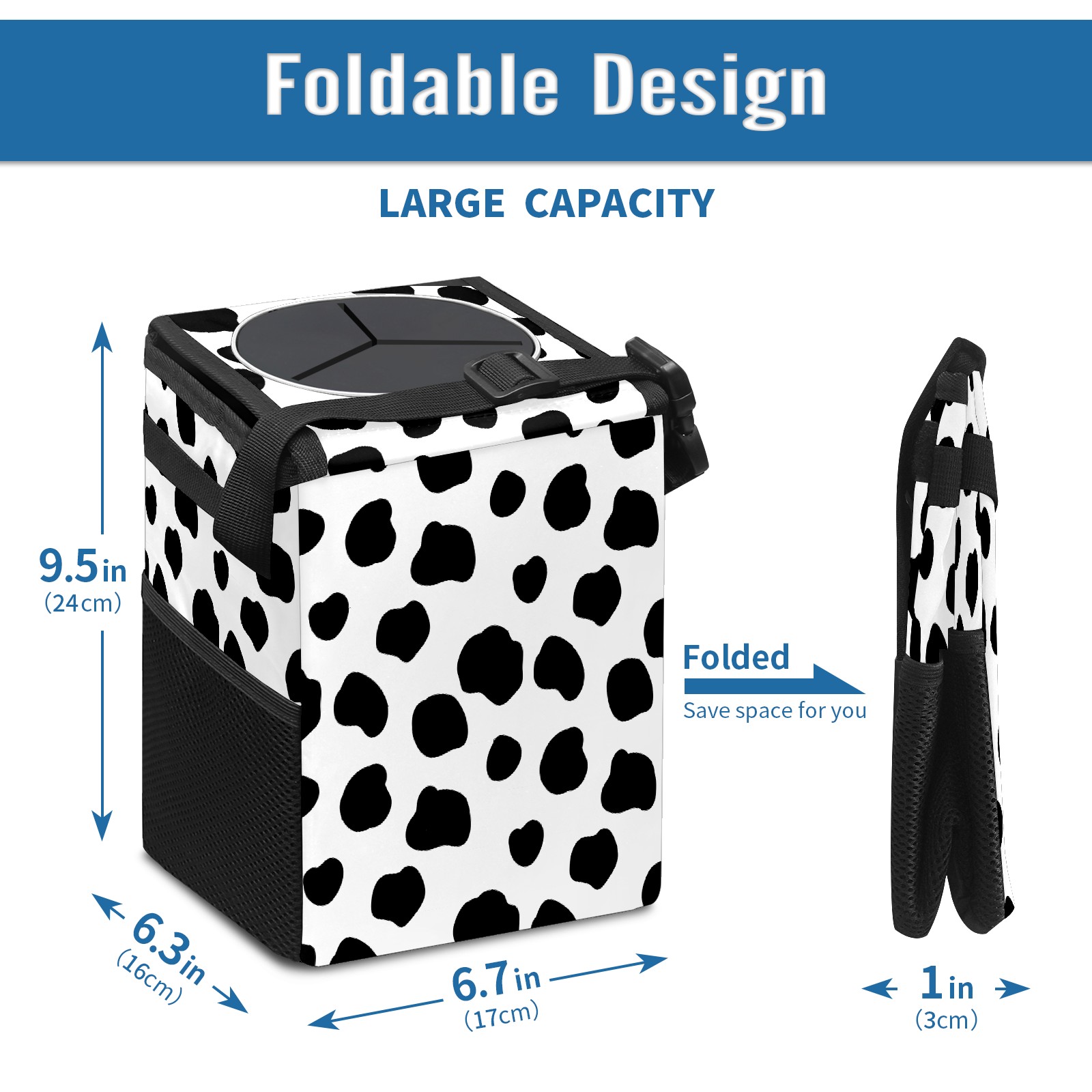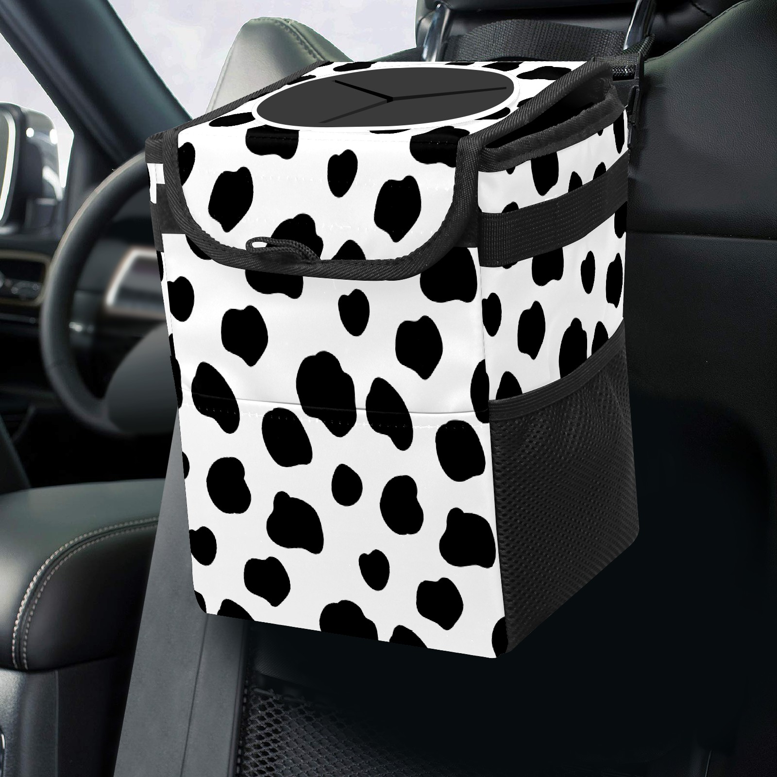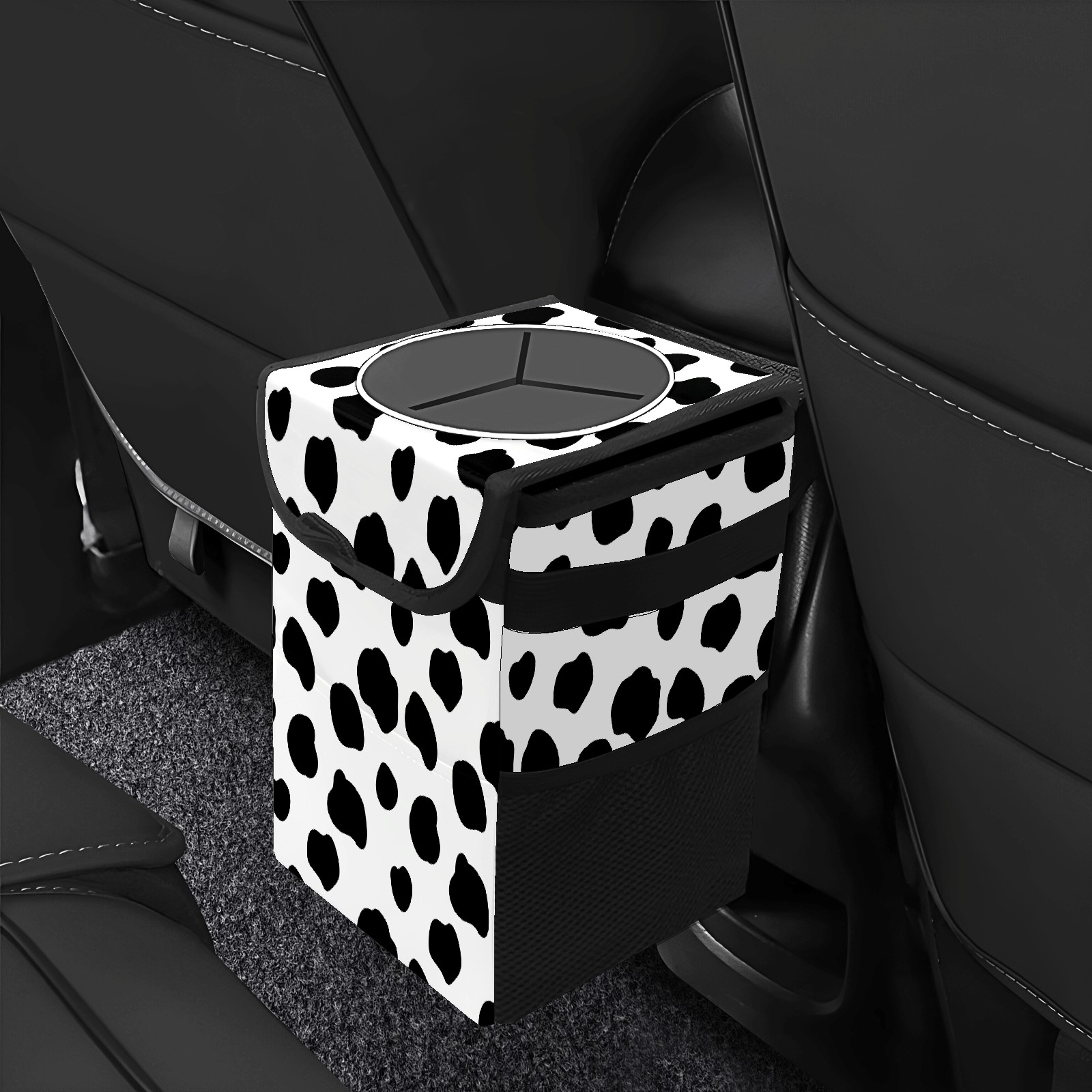 Car Garbage Can — Multi-functional, Lightweight Portable, Reusable Vehicle Trash Can, Waterproof with Sufficient Storage Capacity Black And White Cow Print