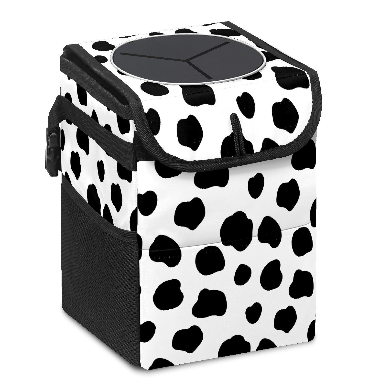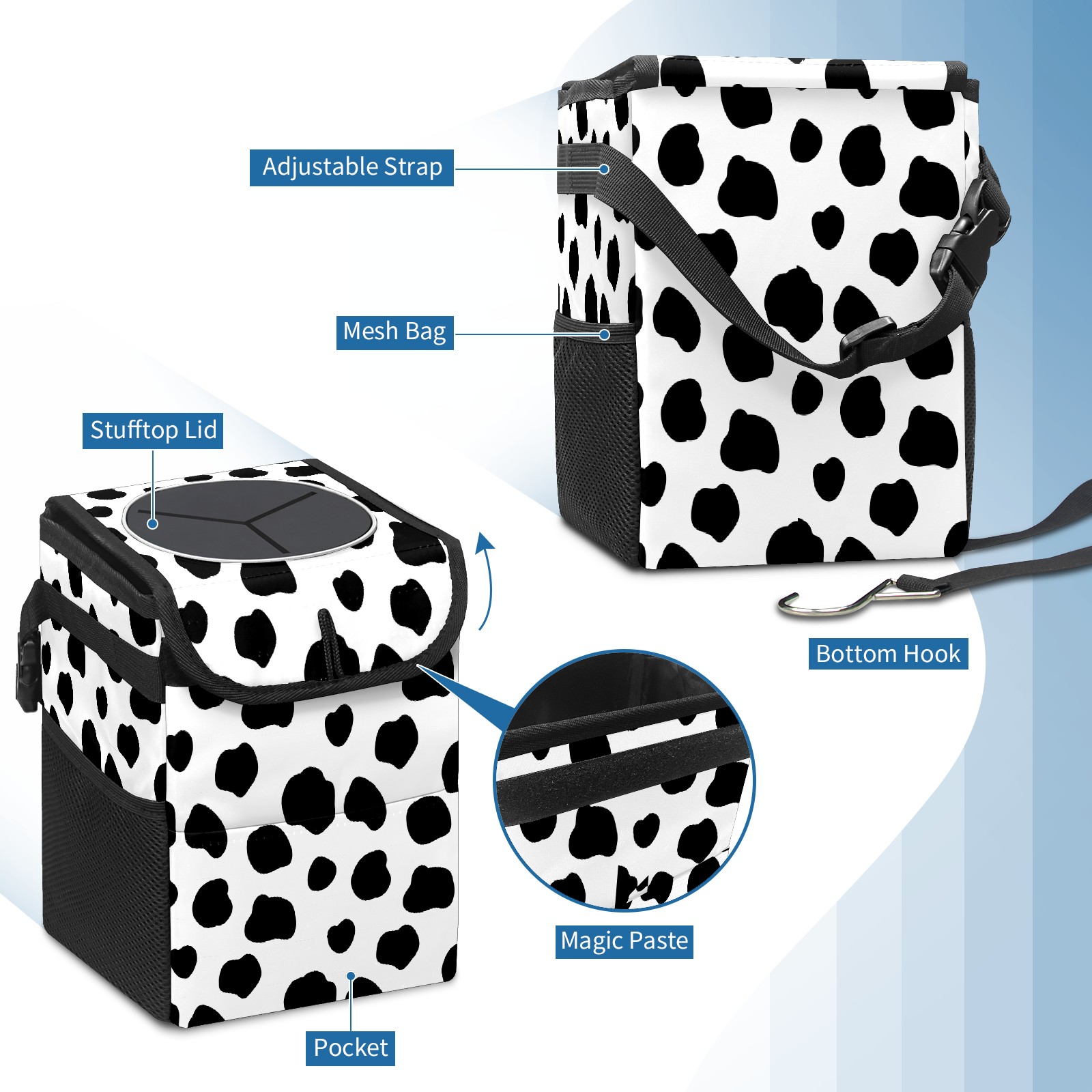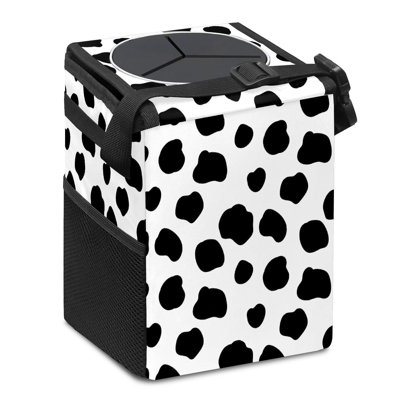 Car Garbage Can — Multi-functional, Lightweight Portable, Reusable Vehicle Trash Can, Waterproof with Sufficient Storage Capacity Black And White Cow Print