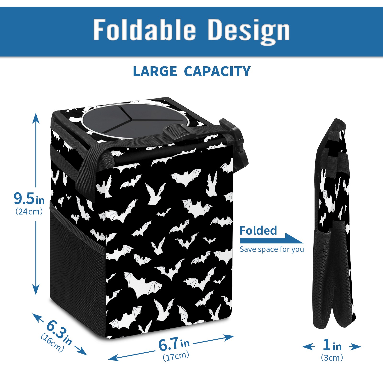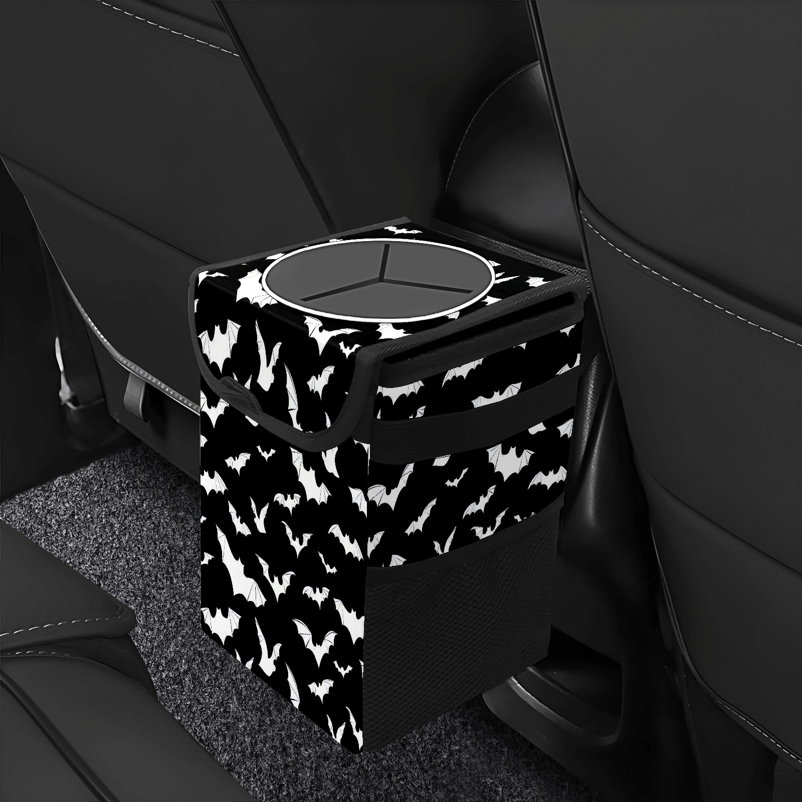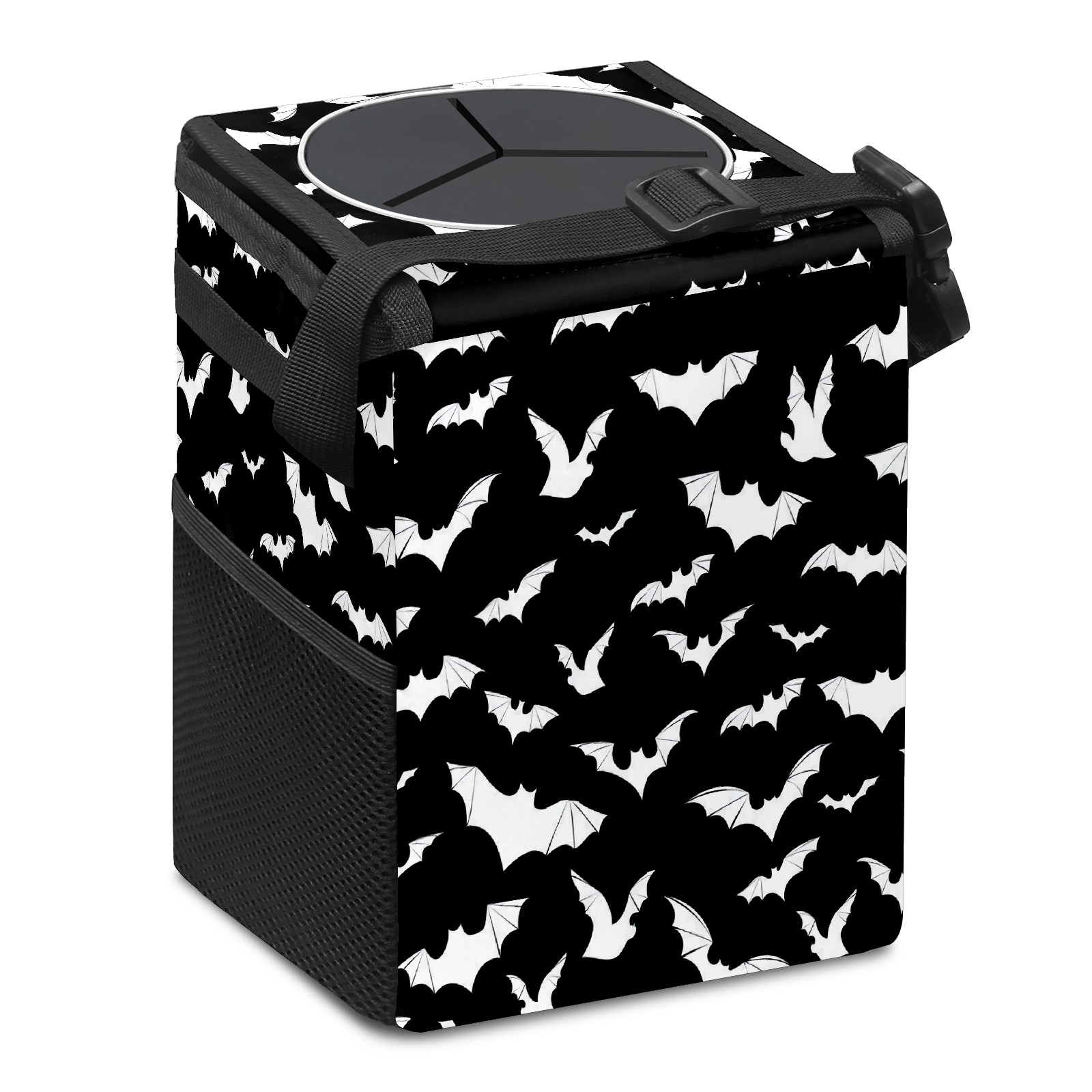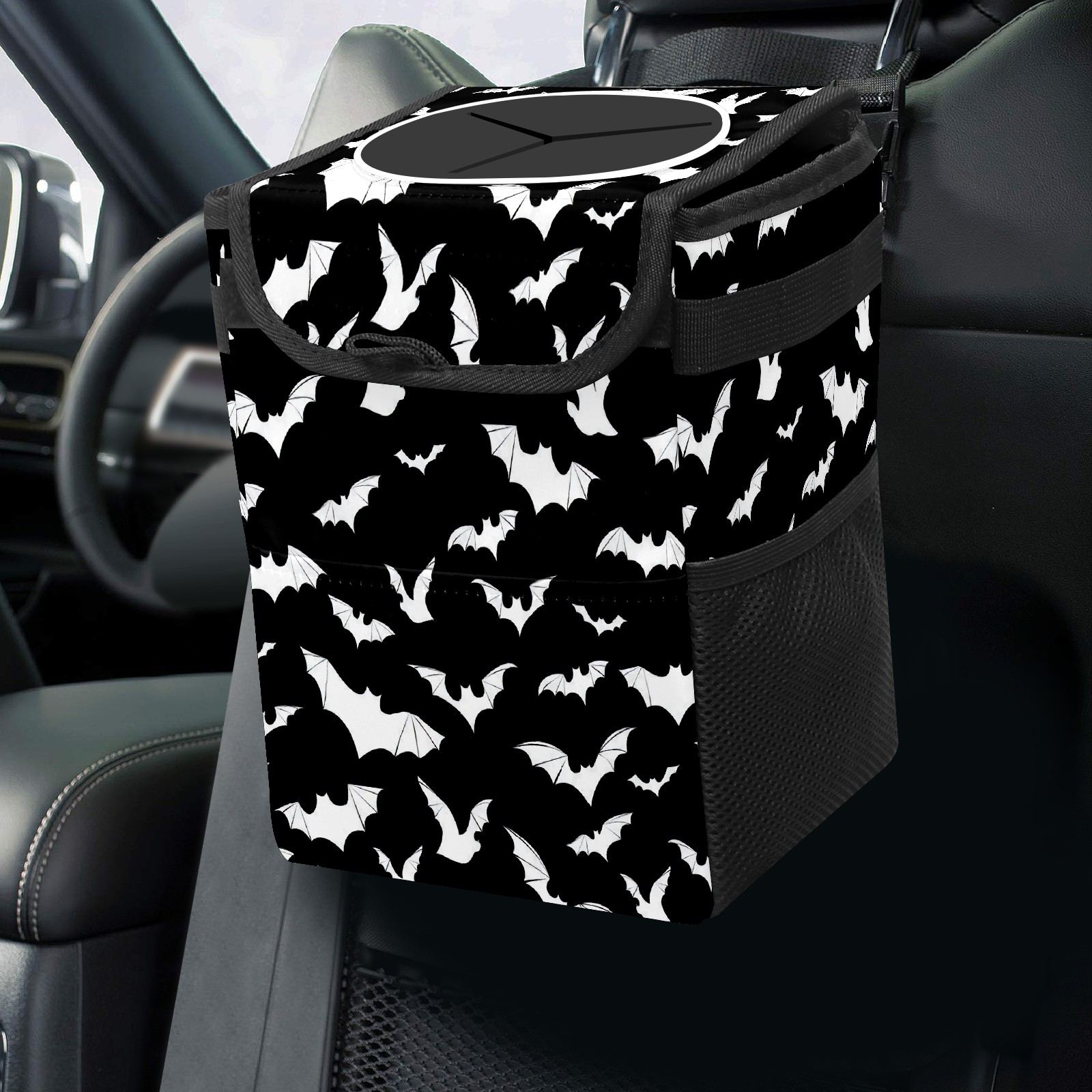 Car Garbage Can — Multi-functional, Lightweight Portable, Reusable Vehicle Trash Can, Waterproof with Sufficient Storage Capacity Black And White Goth Bats