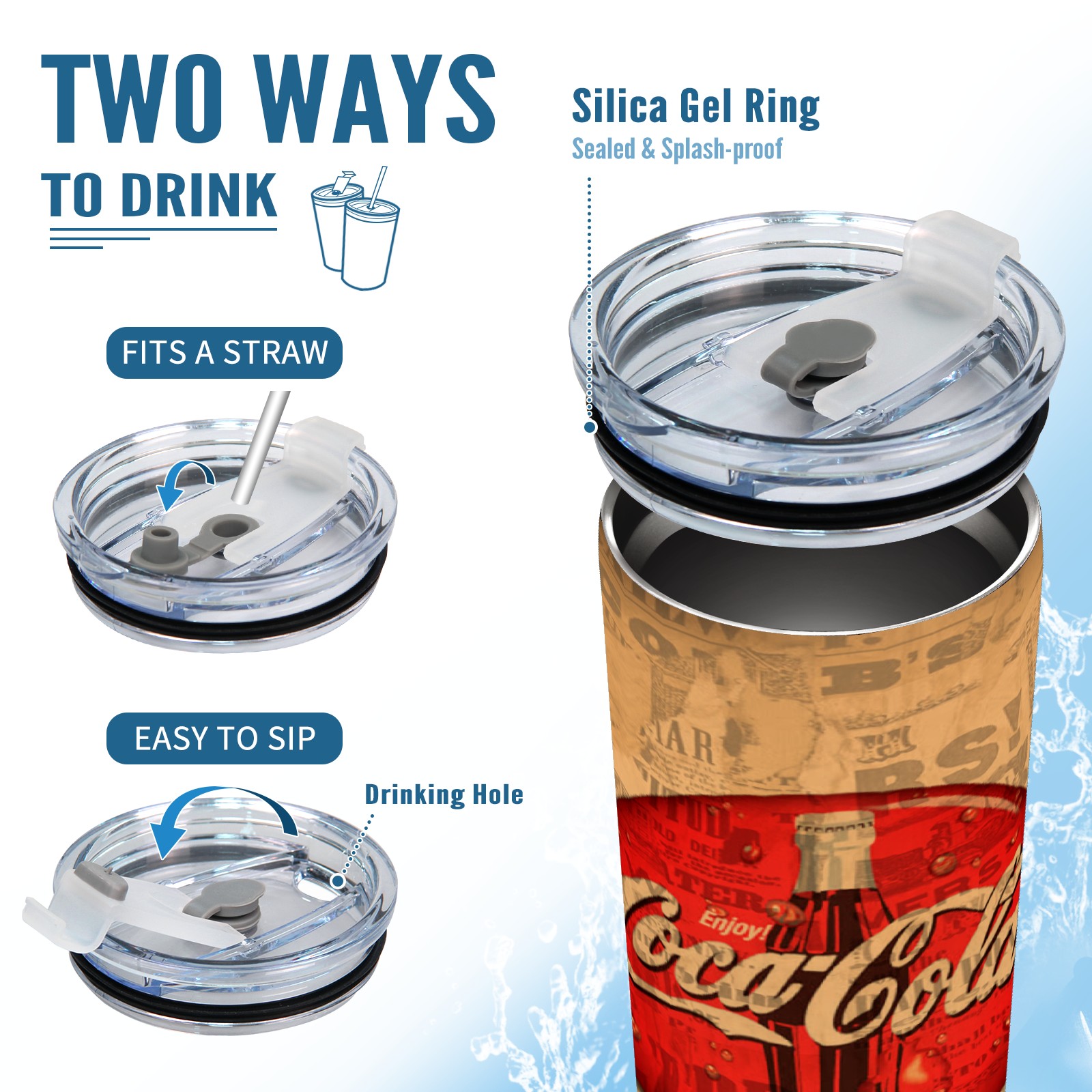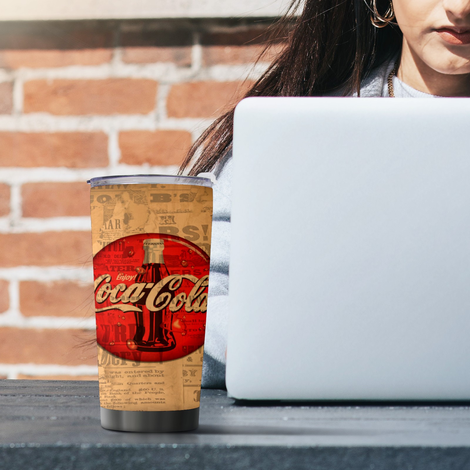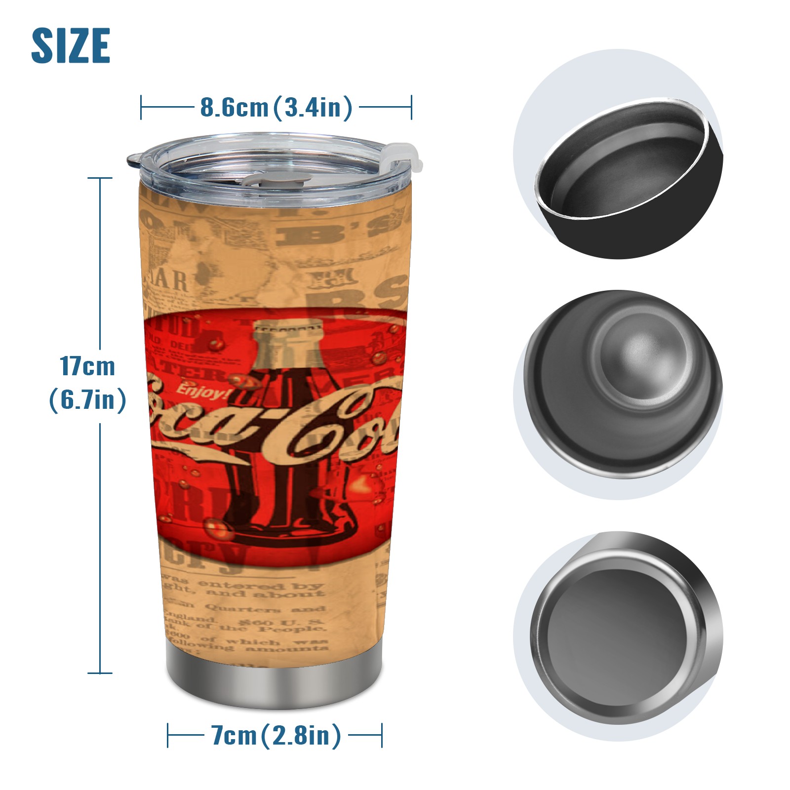 20 oz Tumbler 可口可乐图标拼接 Stainless Steel Insulated Tumbler with Lid Double Wall Vacuum Insulated Travel Mug Cup for Coffee Ice Hot Drinks