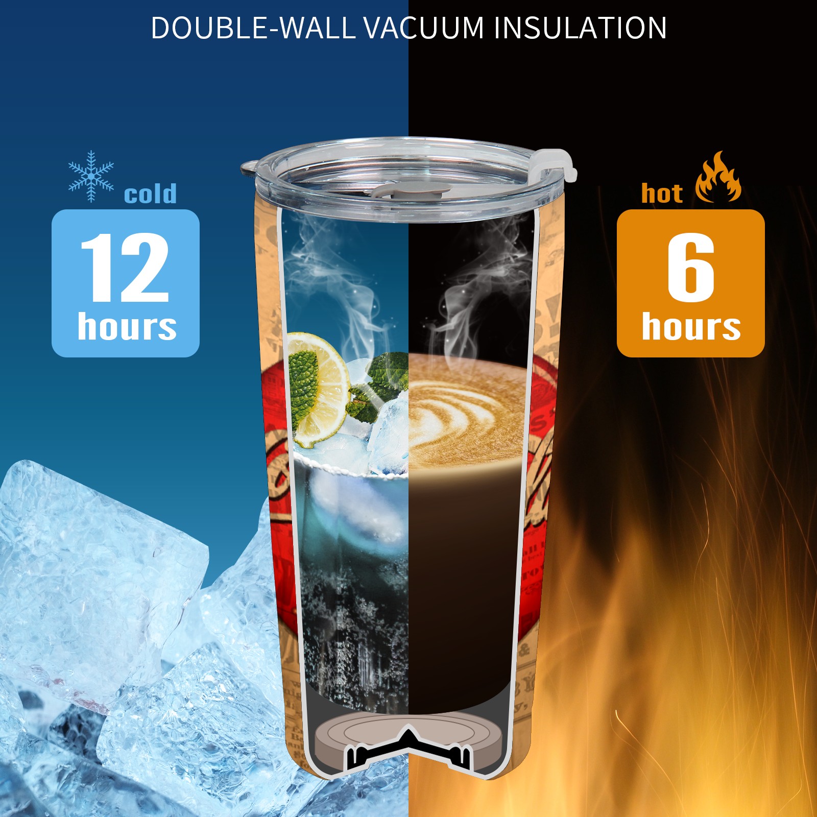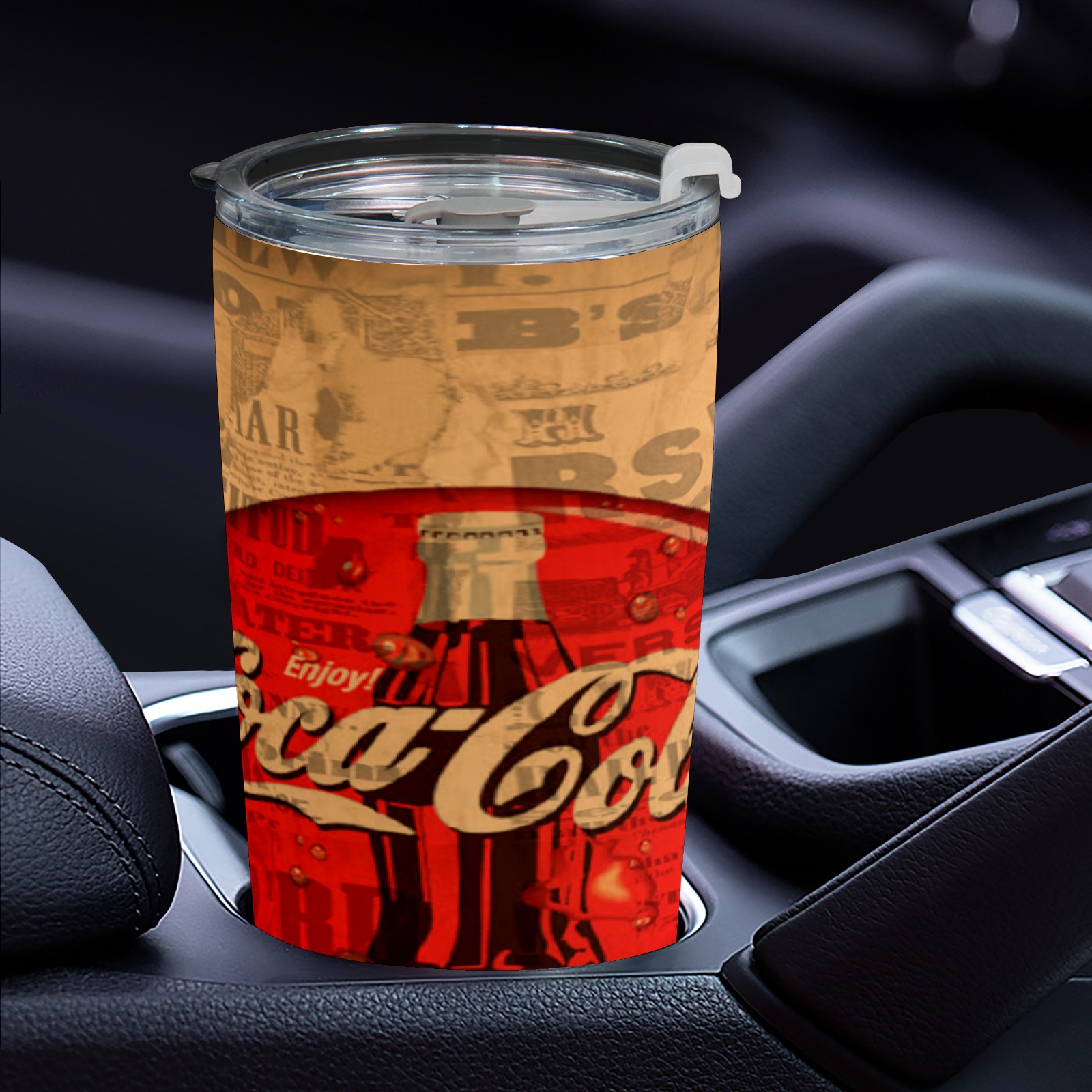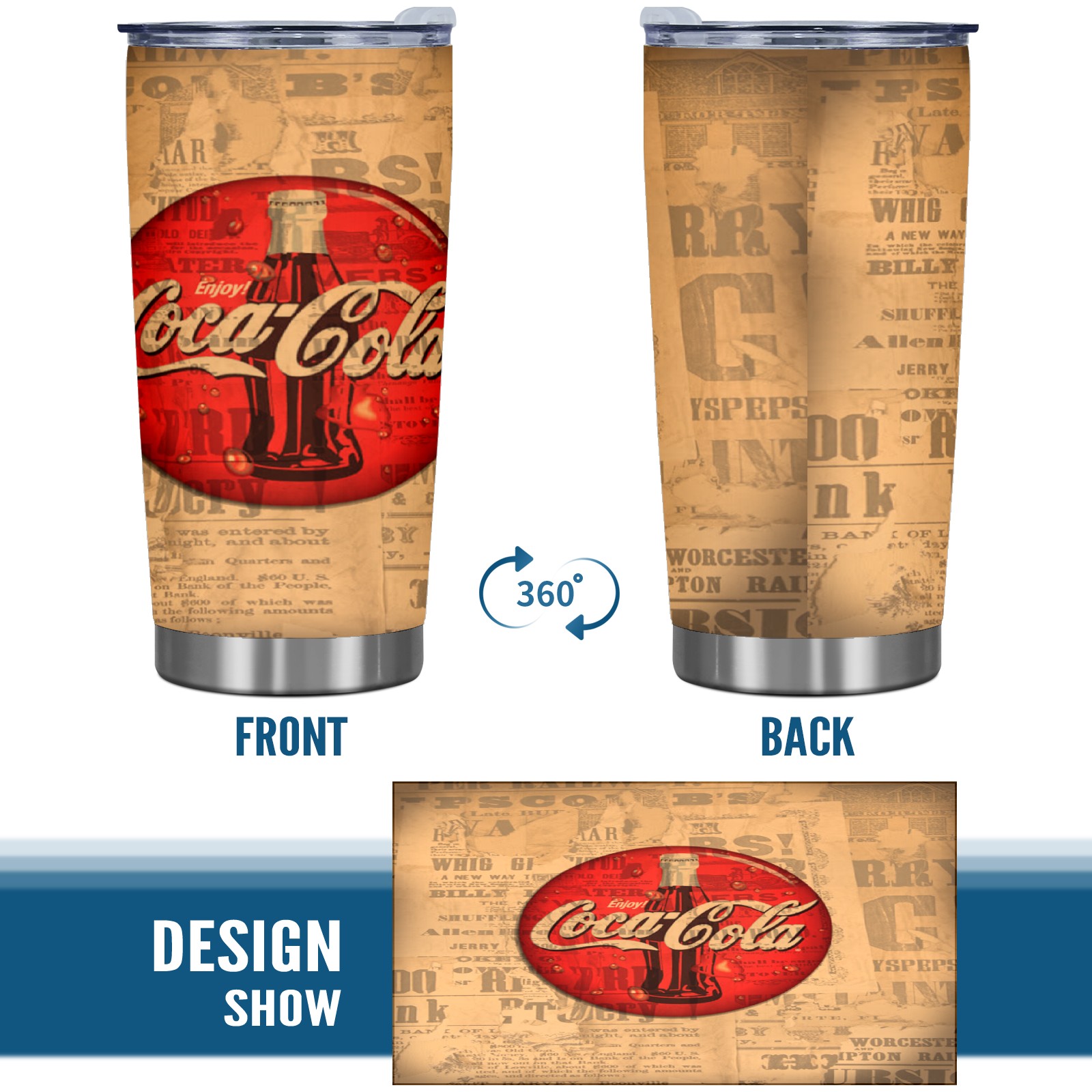 20 oz Tumbler 可口可乐图标拼接 Stainless Steel Insulated Tumbler with Lid Double Wall Vacuum Insulated Travel Mug Cup for Coffee Ice Hot Drinks