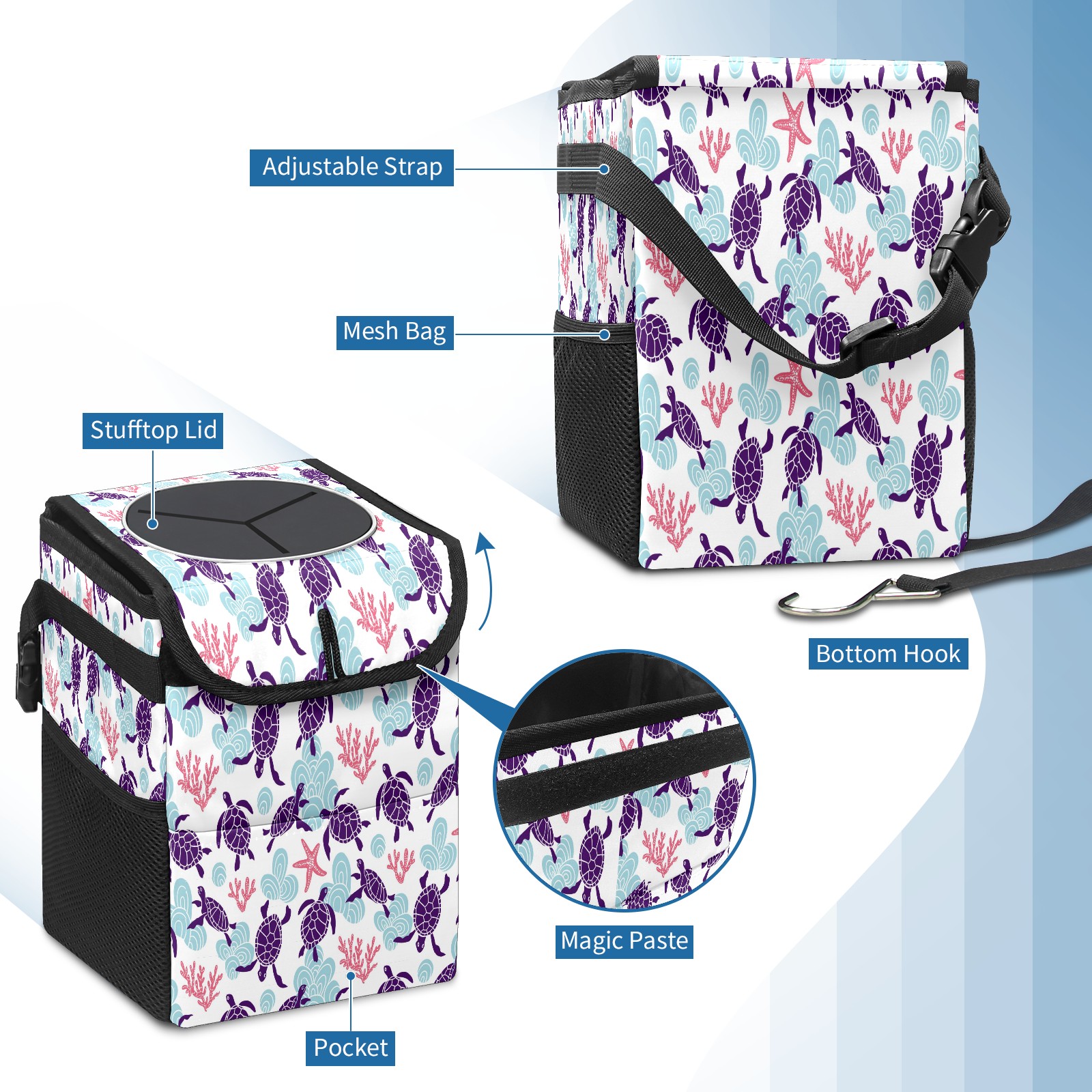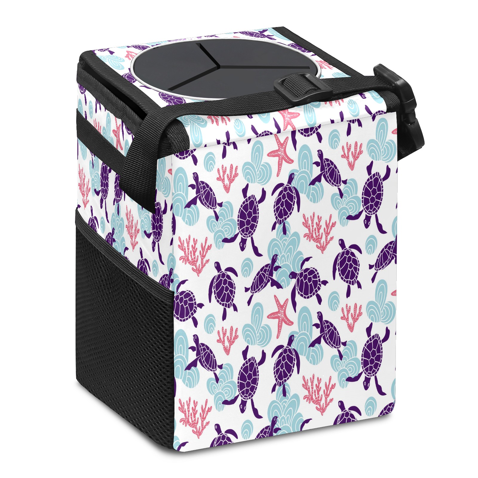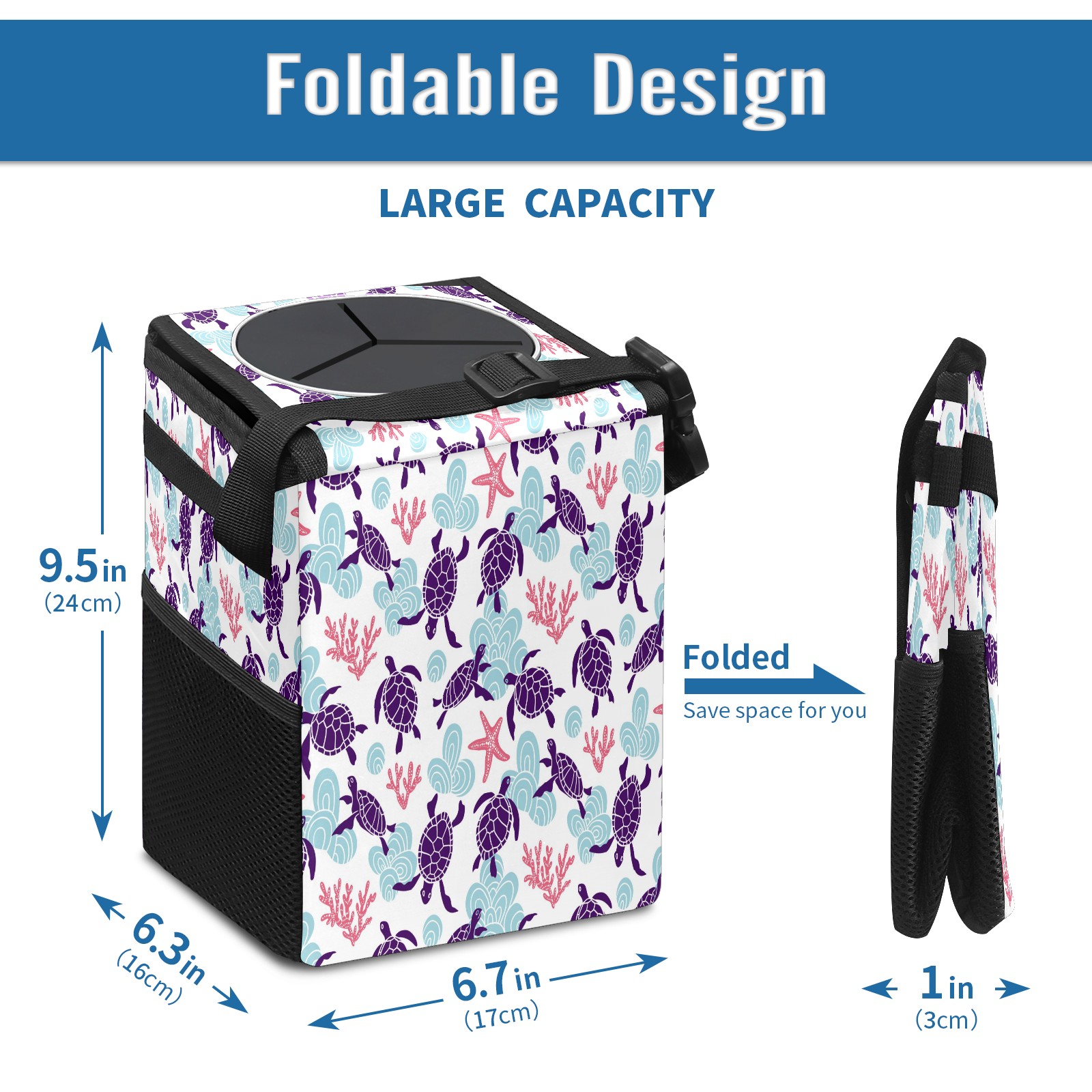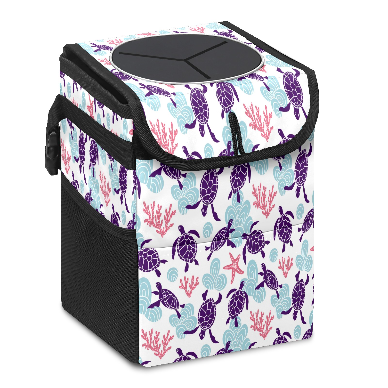 Car Garbage Can — Multi-functional, Lightweight Portable, Reusable Vehicle Trash Can, Waterproof with Sufficient Storage Capacity Purple Turtle Starfish