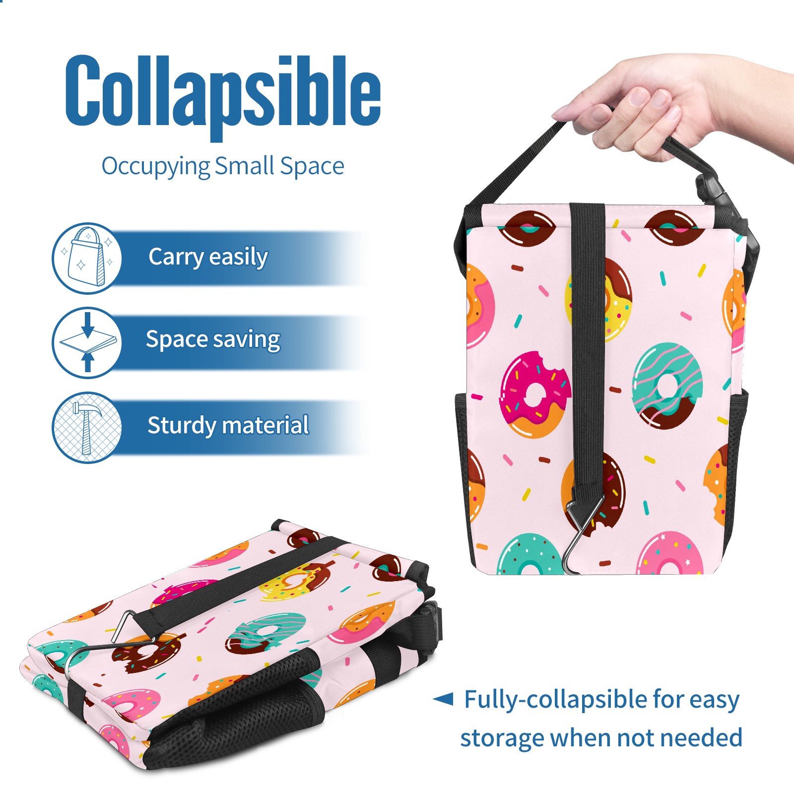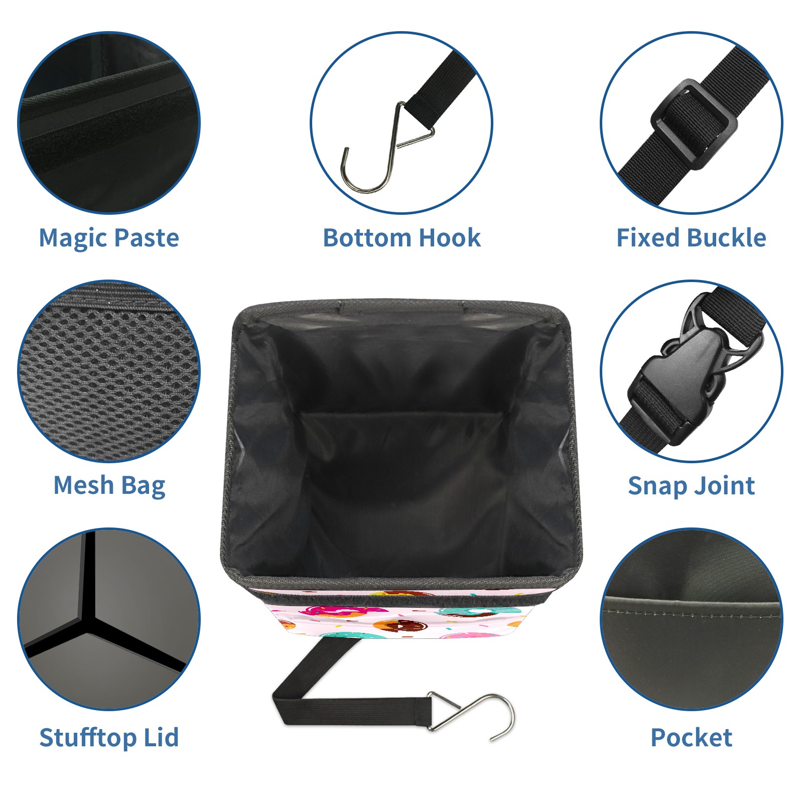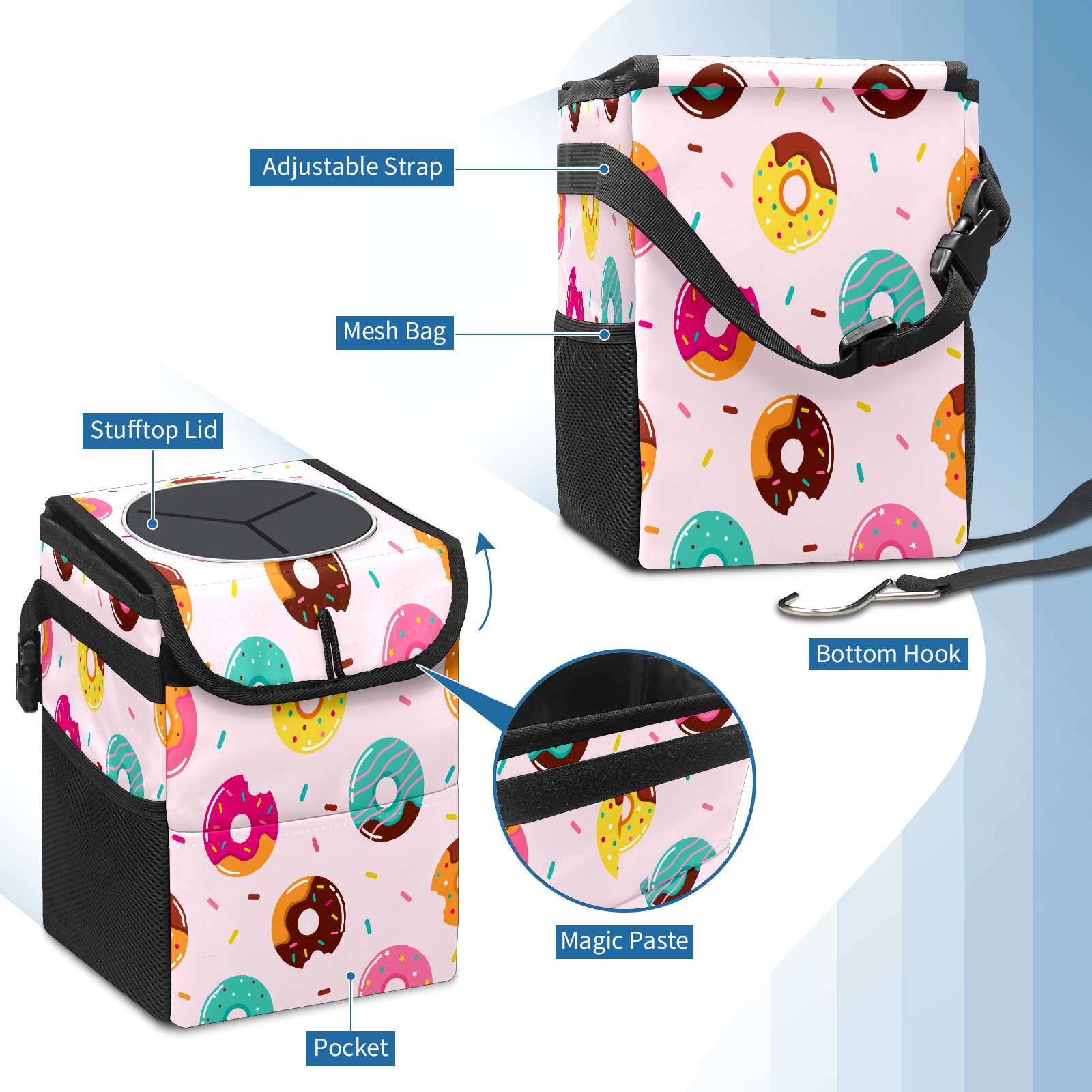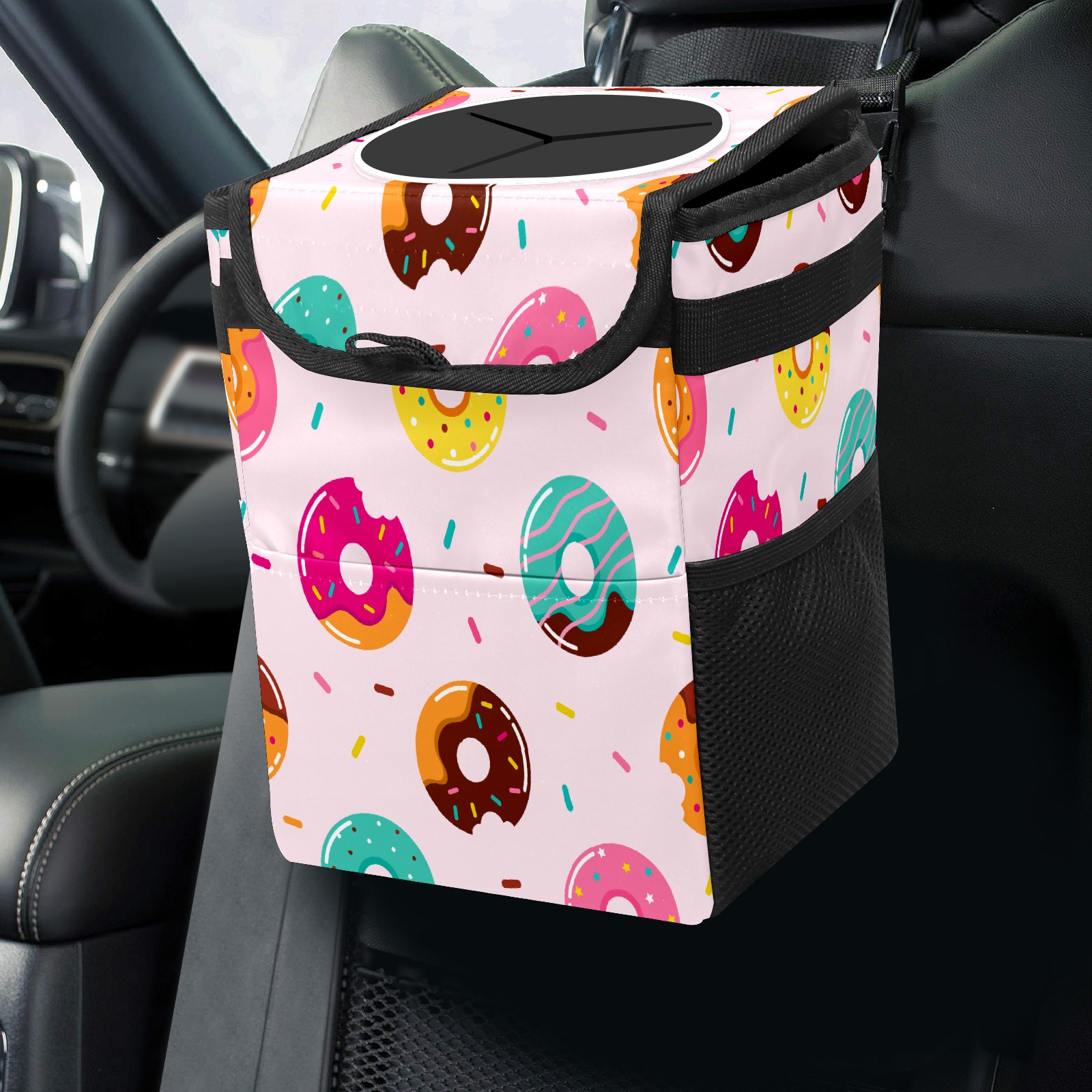 Car Garbage Can — Multi-functional, Lightweight Portable, Reusable Vehicle Trash Can, Waterproof with Sufficient Storage Capacity Cartoon Donuts Pattern