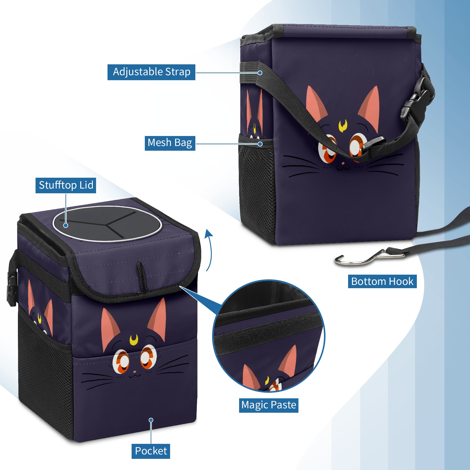 Car Garbage Can — Multi-functional, Lightweight Portable, Reusable Vehicle Trash Can, Waterproof with Sufficient Storage Capacity Cute Sailor Moon Cat