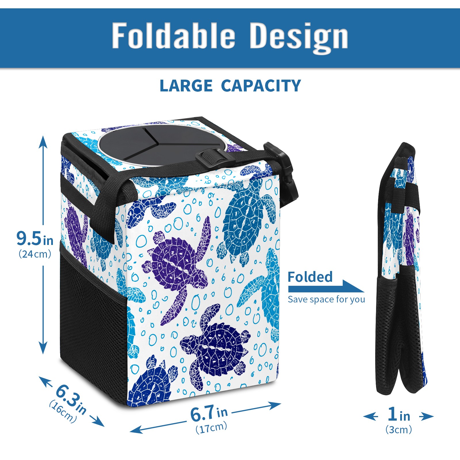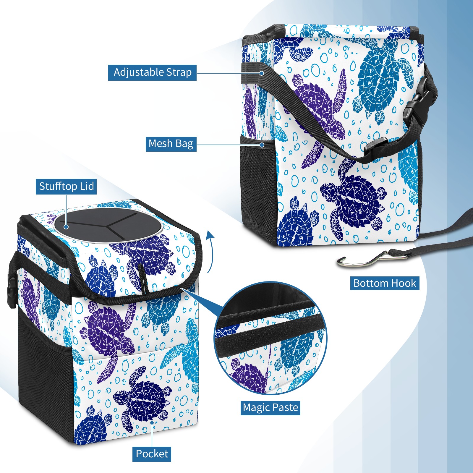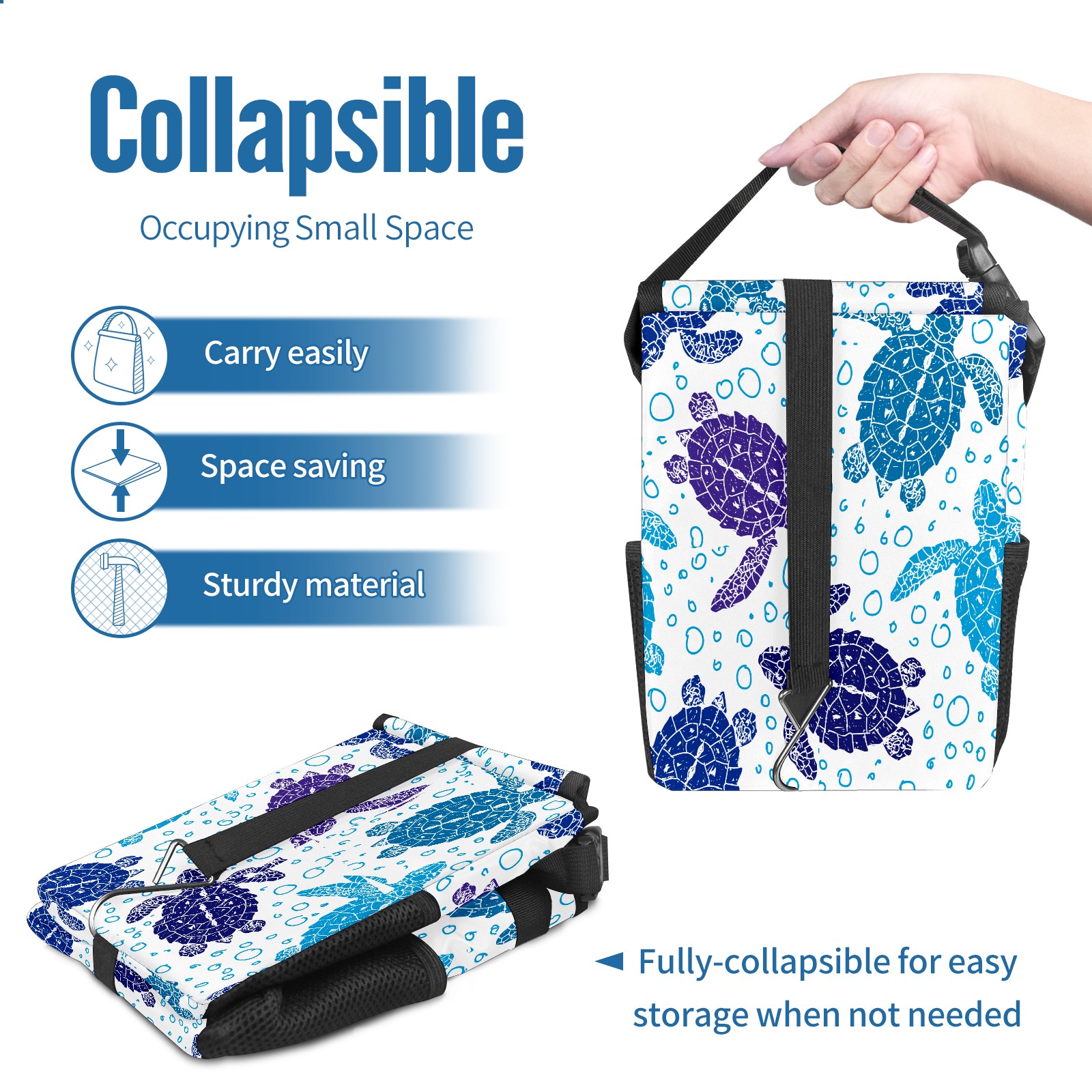 Car Garbage Can — Multi-functional, Lightweight Portable, Reusable Vehicle Trash Can, Waterproof with Sufficient Storage Capacity Cute Hand Drawn Turtles