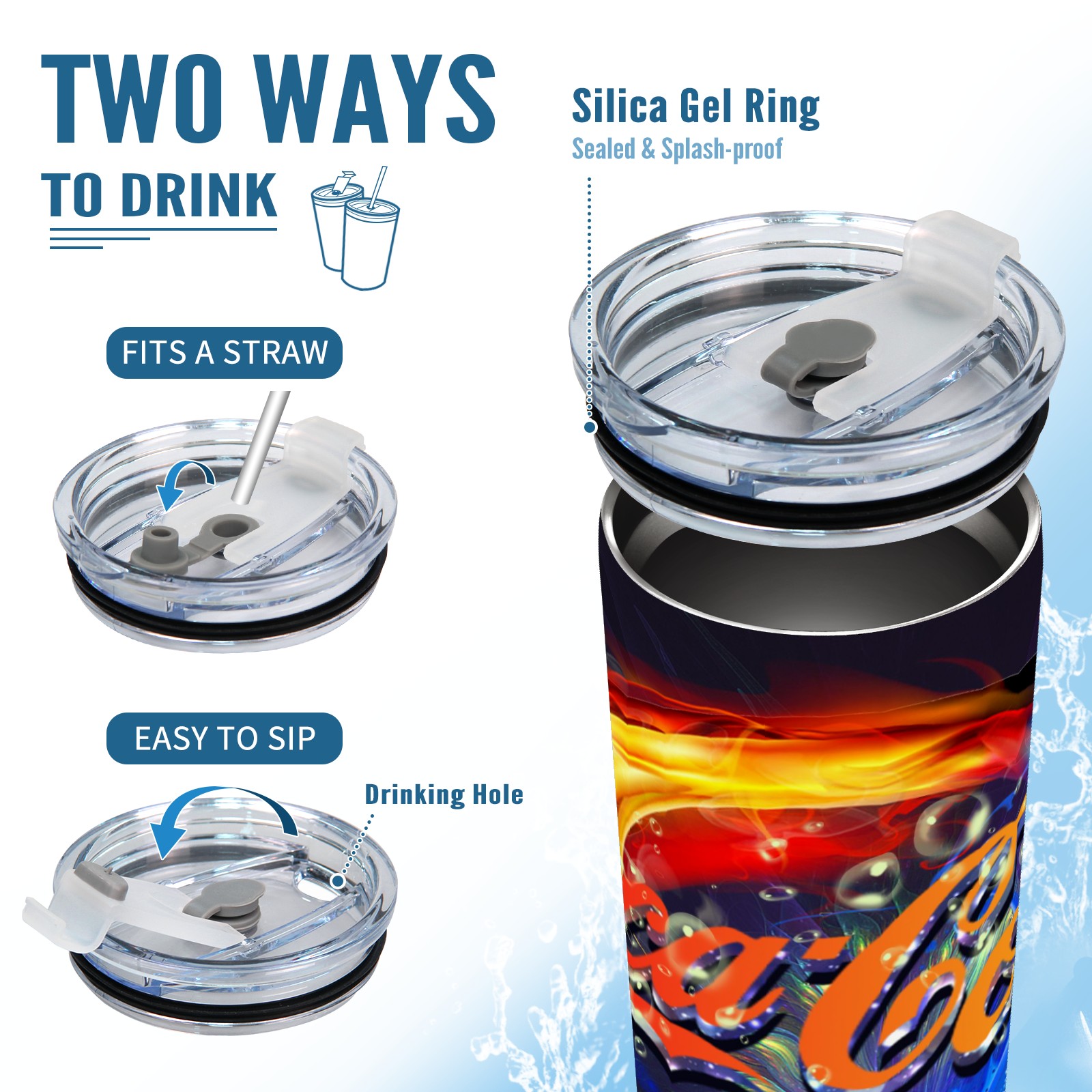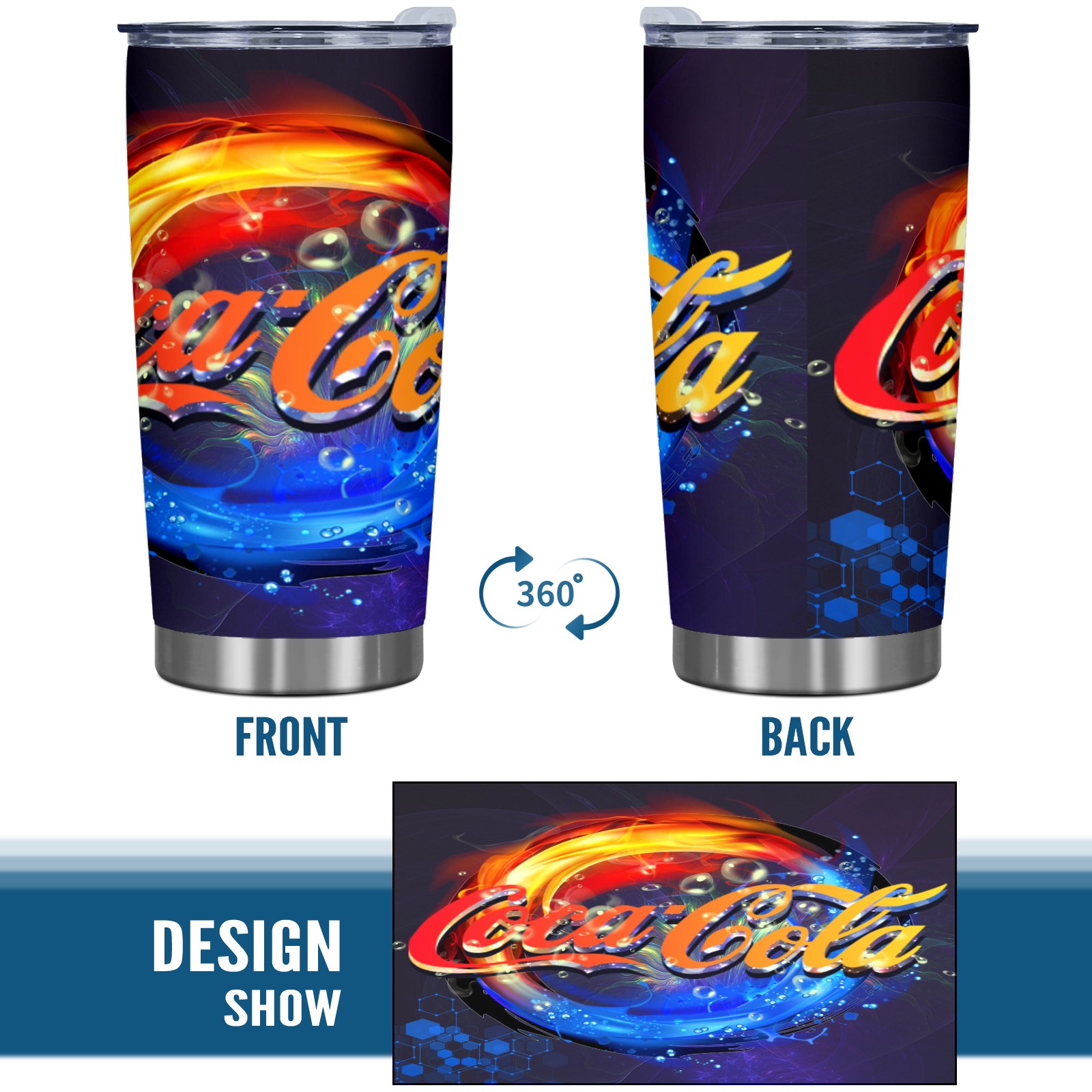 20 oz Tumbler 可口可乐特效海报4 Stainless Steel Insulated Tumbler with Lid Double Wall Vacuum Insulated Travel Mug Cup for Coffee Ice Hot Drinks