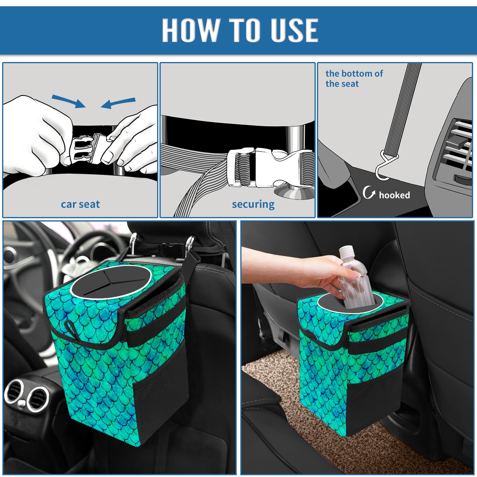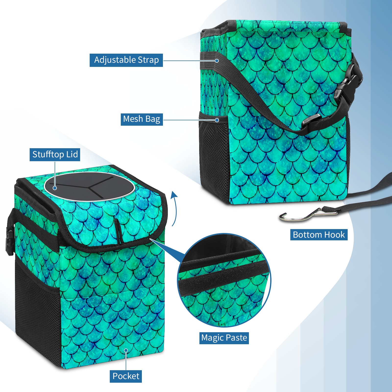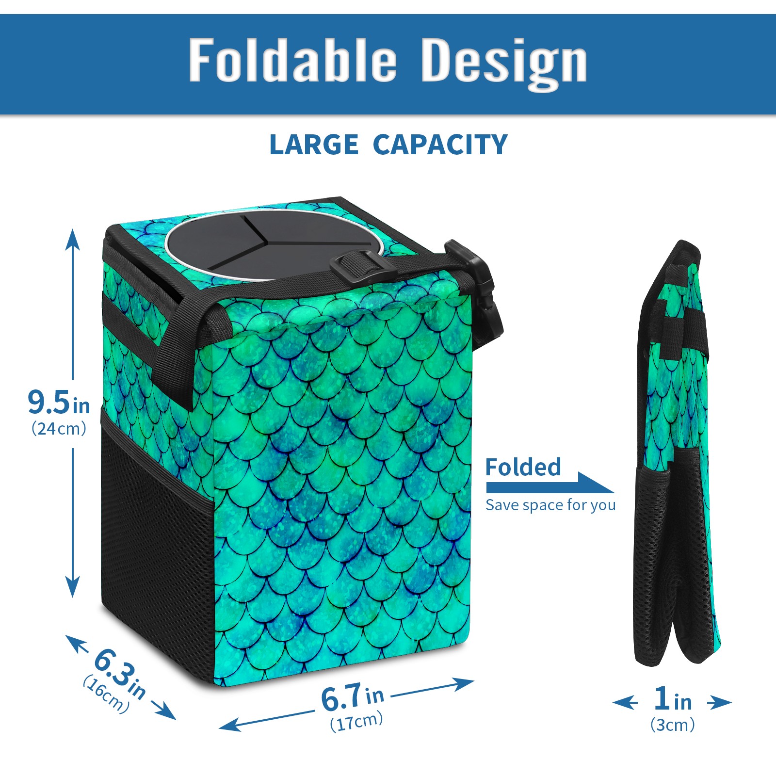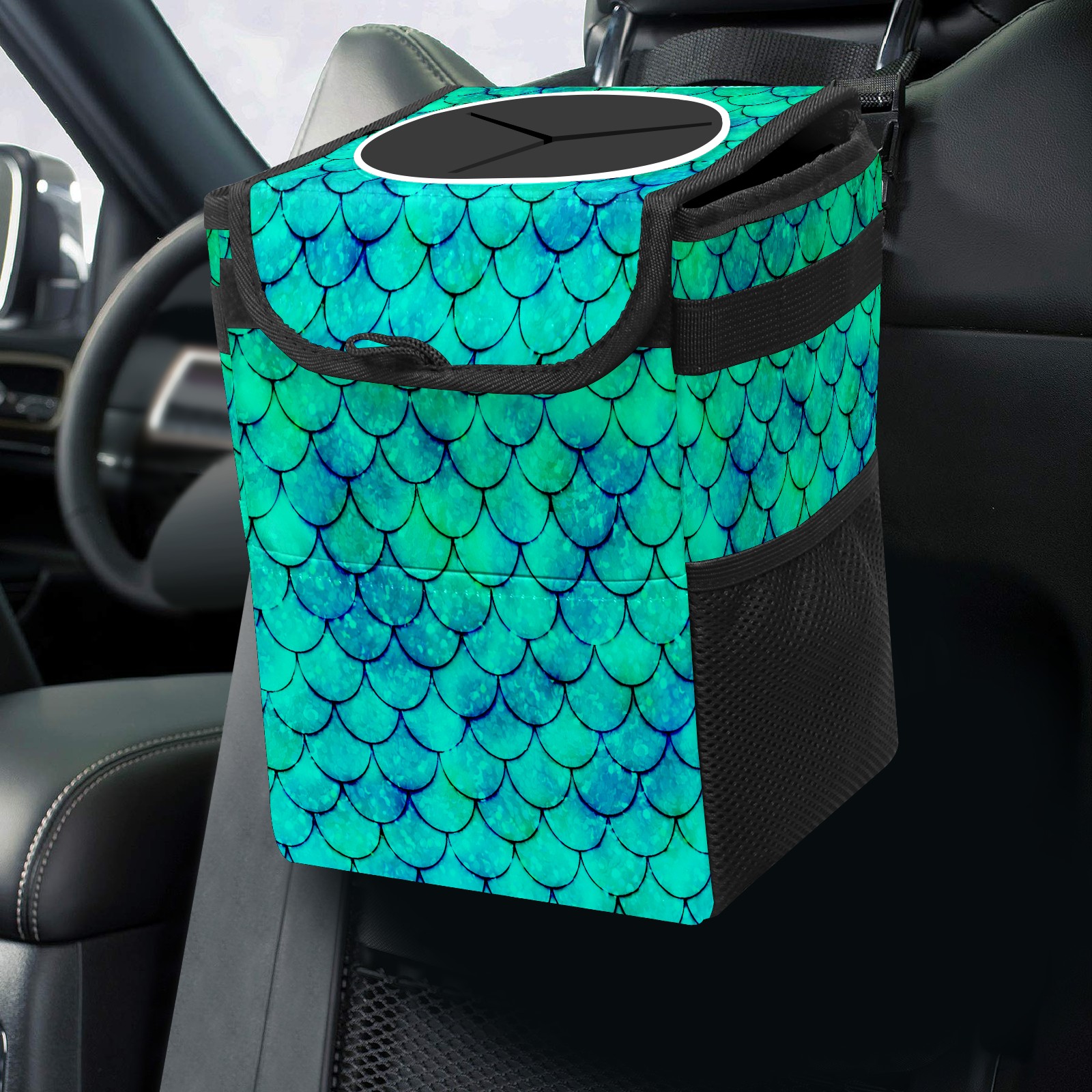 Car Garbage Can — Multi-functional, Lightweight Portable, Reusable Vehicle Trash Can, Waterproof with Sufficient Storage Capacity Mermaid Green Scales
