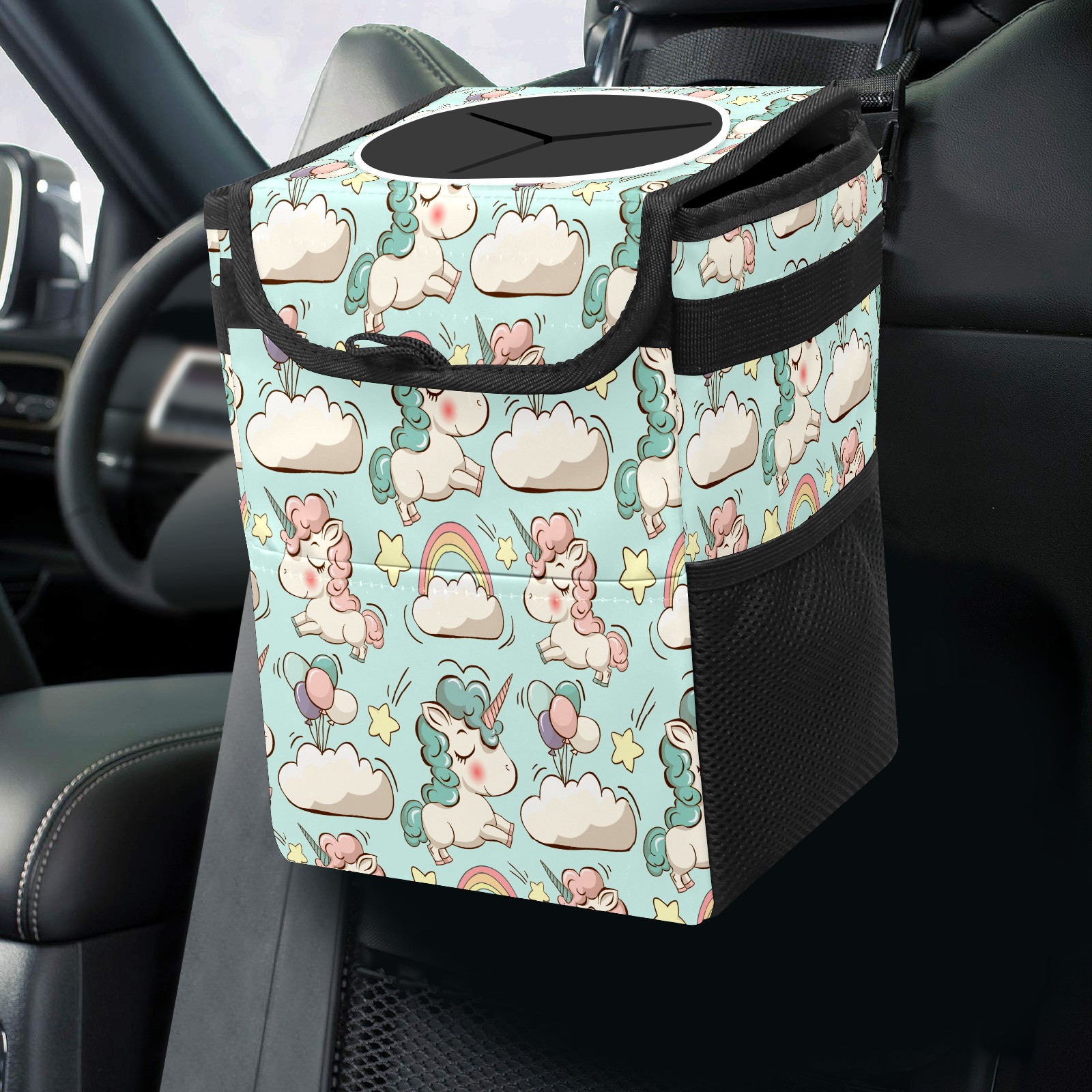 Car Garbage Can — Multi-functional, Lightweight Portable, Reusable Vehicle Trash Can, Waterproof with Sufficient Storage Capacity Cute Unicorns And Clouds