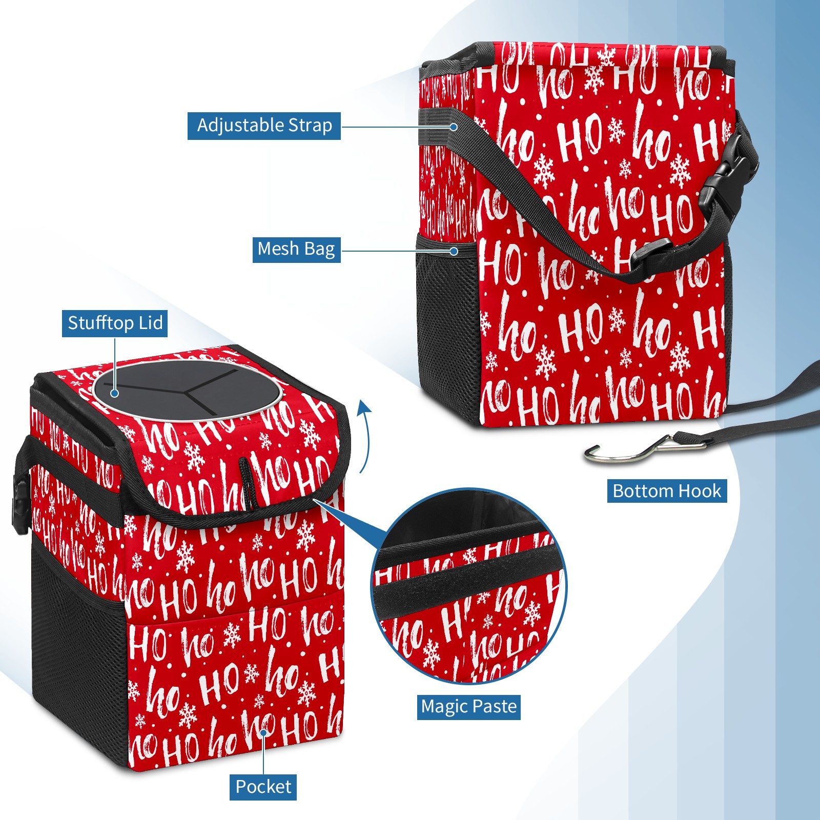 Car Garbage Can — Multi-functional, Lightweight Portable, Reusable Vehicle Trash Can, Waterproof with Sufficient Storage Capacity Christmas Snowflakes HO