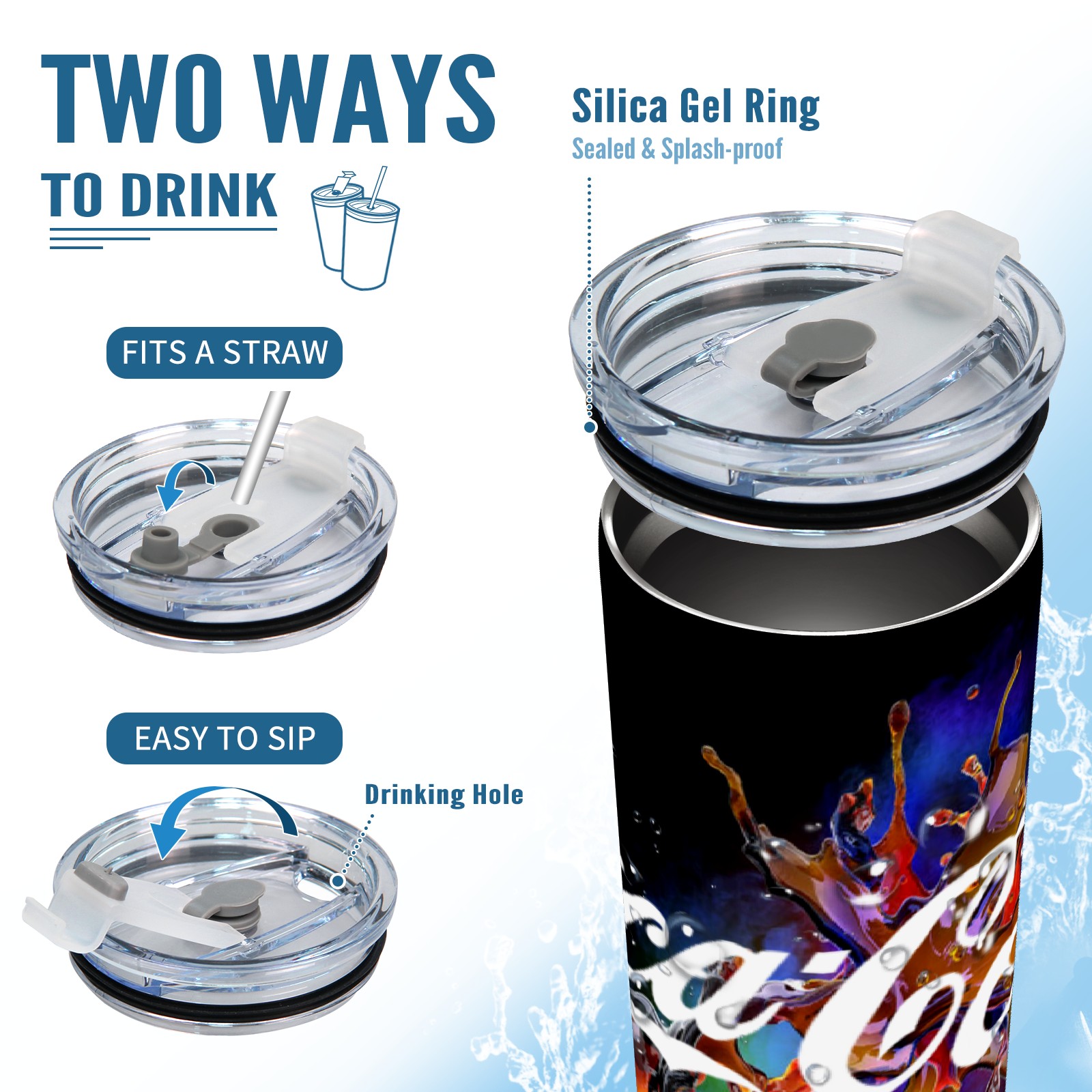 20 oz Tumbler 可口可乐特效海报2 Stainless Steel Insulated Tumbler with Lid Double Wall Vacuum Insulated Travel Mug Cup for Coffee Ice Hot Drinks