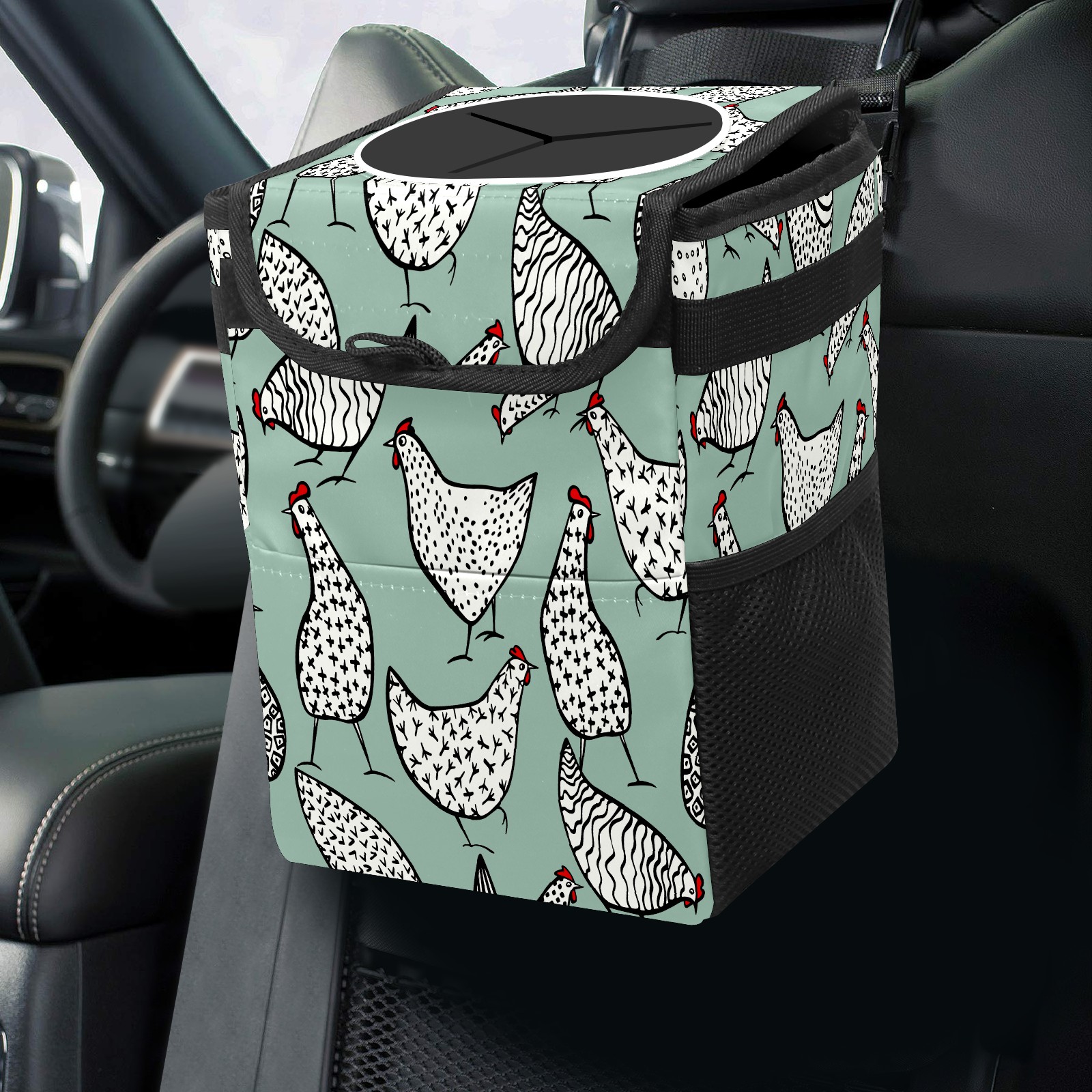 Car Garbage Can — Multi-functional, Lightweight Portable, Reusable Vehicle Trash Can, Waterproof with Sufficient Storage Capacity Funny Animal Chicken Rooster Pattern