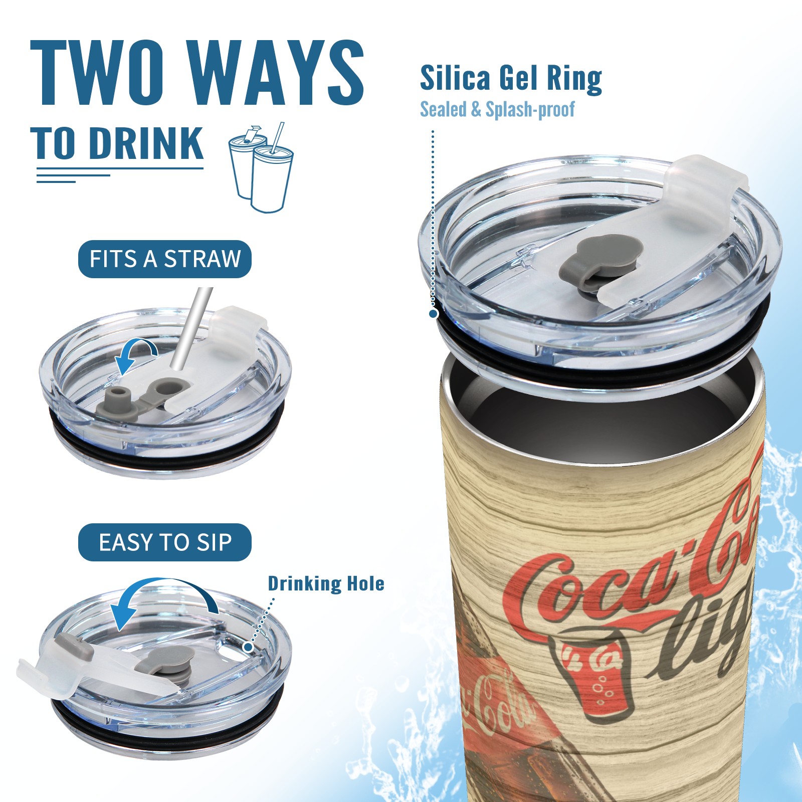 20 oz Tumbler 可口可乐排版拼接5 Stainless Steel Insulated Tumbler with Lid Double Wall Vacuum Insulated Travel Mug Cup for Coffee Ice Hot Drinks