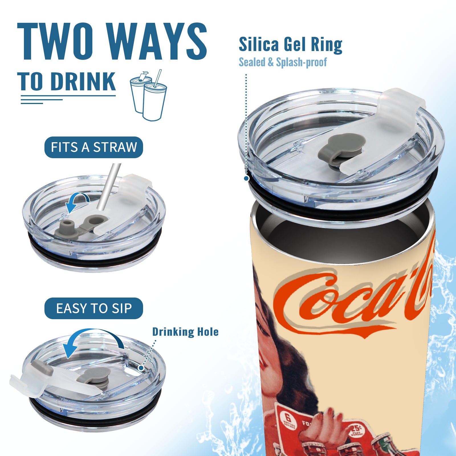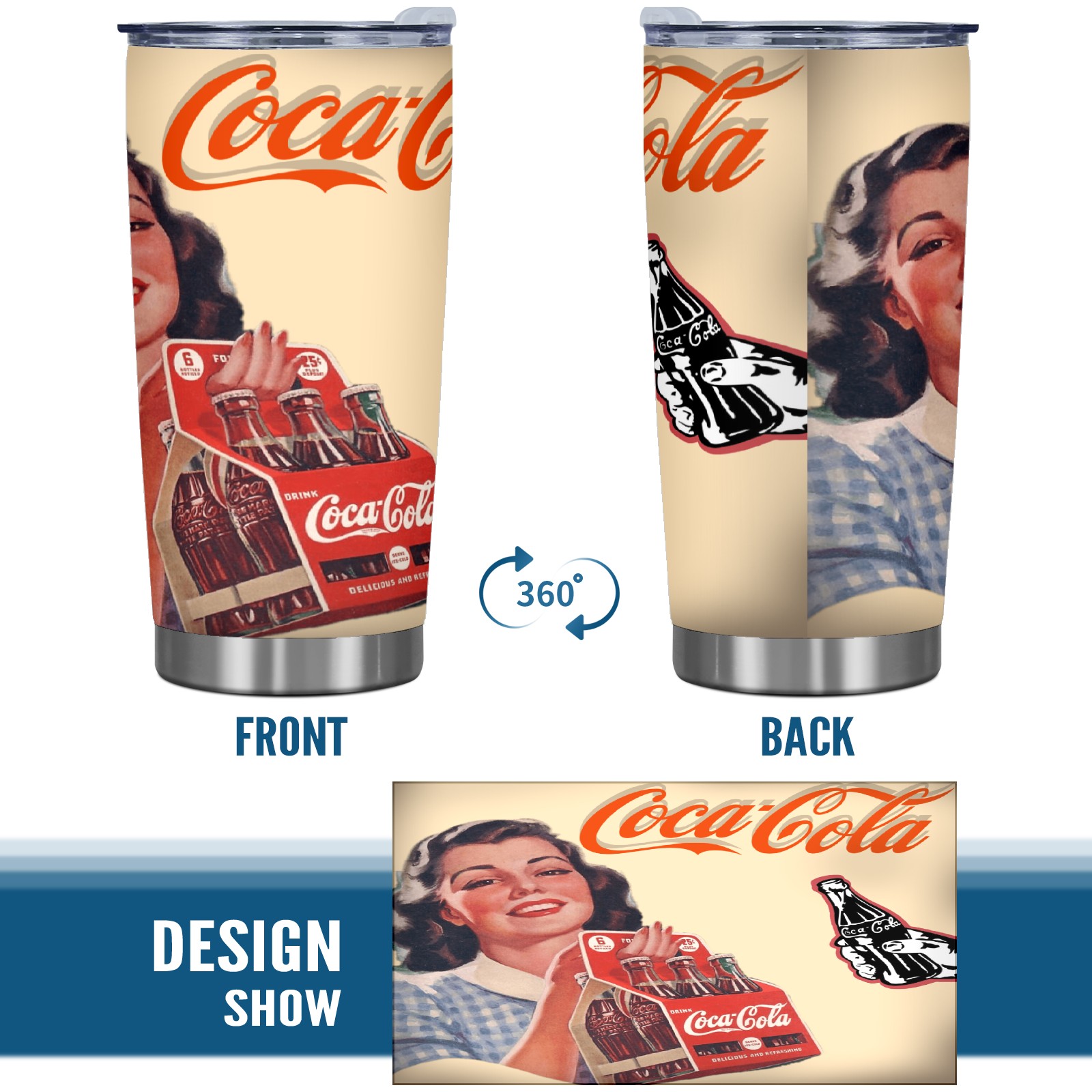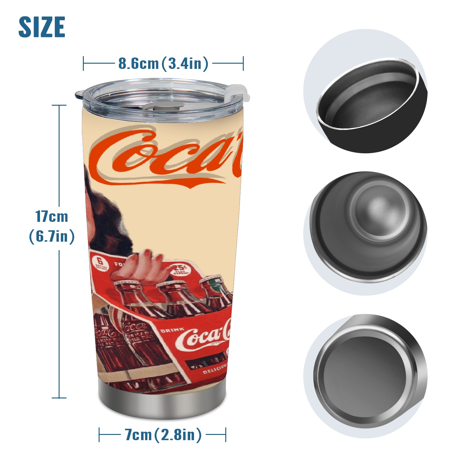 20 oz Tumbler 可口可乐排版拼接2 Stainless Steel Insulated Tumbler with Lid Double Wall Vacuum Insulated Travel Mug Cup for Coffee Ice Hot Drinks